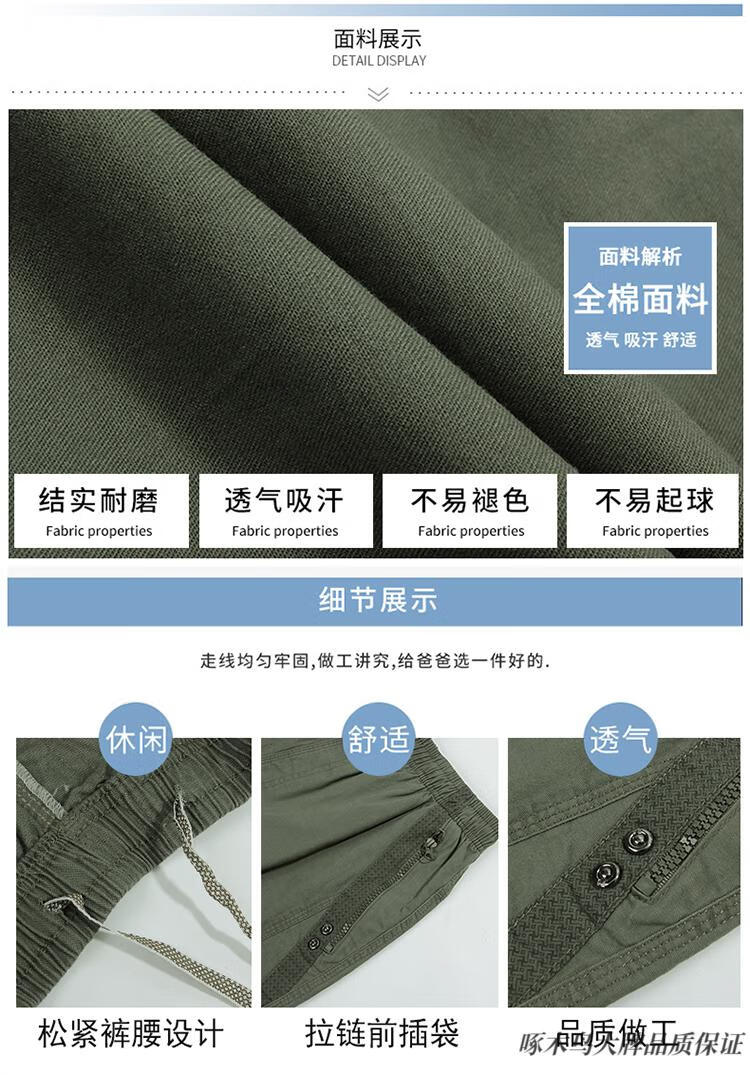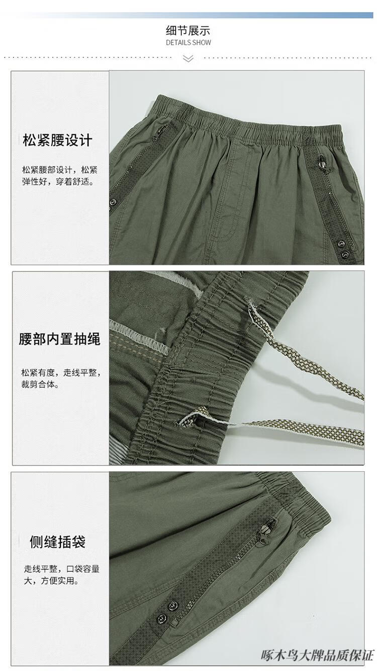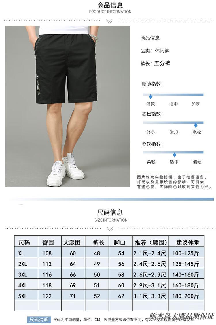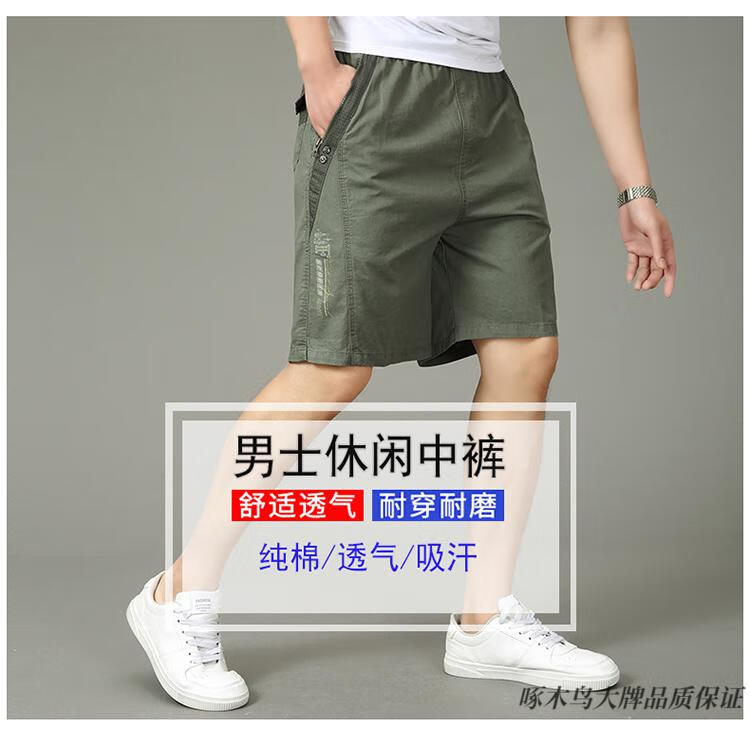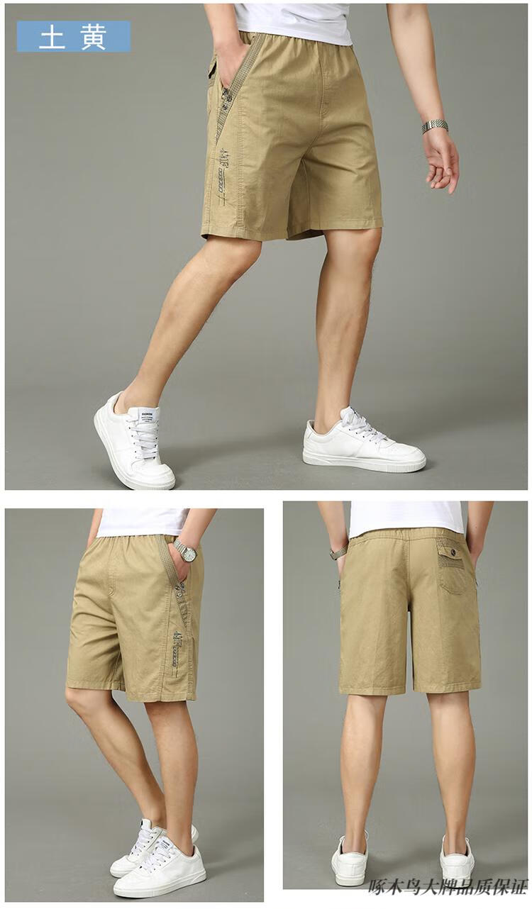 Woodpecker (TUCANO) pure cotton five-point pants men's summer loose casual work shorts men's large pants beach pants thin breeches WD806 black blue 2XL