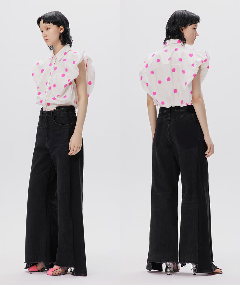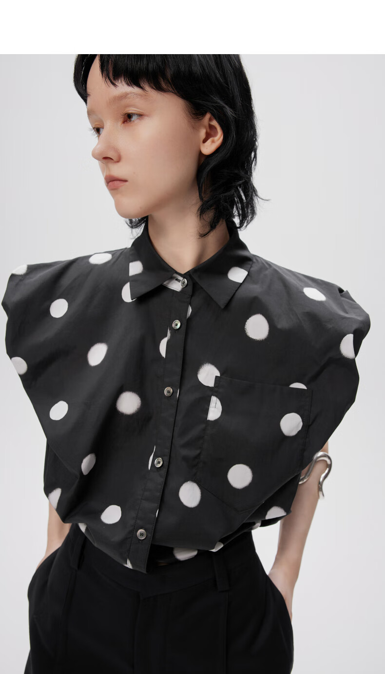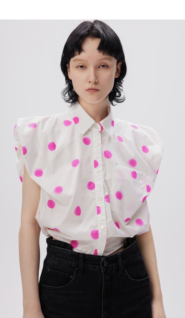 JNBY/Jiangnan Buyi Autumn and Winter Small Polka Dot Shirt Women's Shoulder Bubble Design Single-Breasted Lapel Sleeveless 5N7211060 690/Miscellaneous Pink S