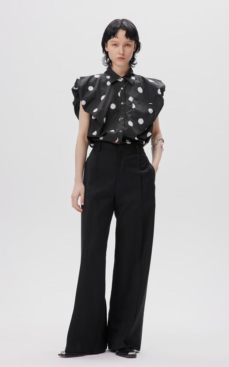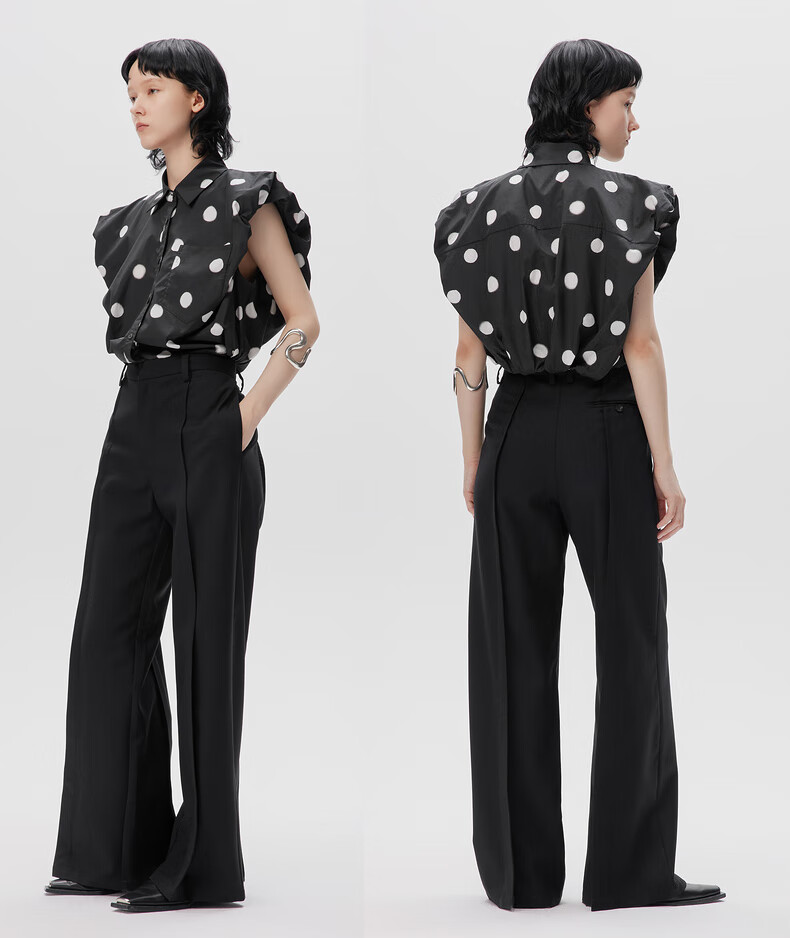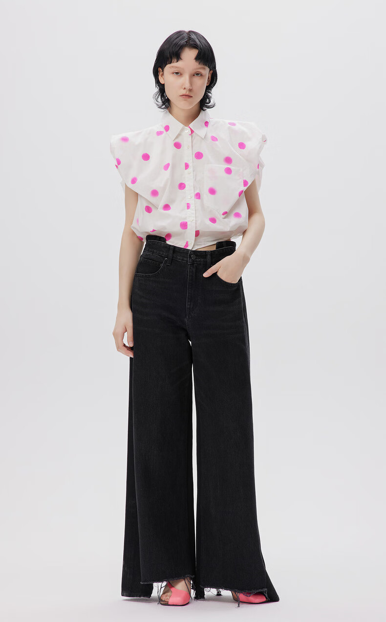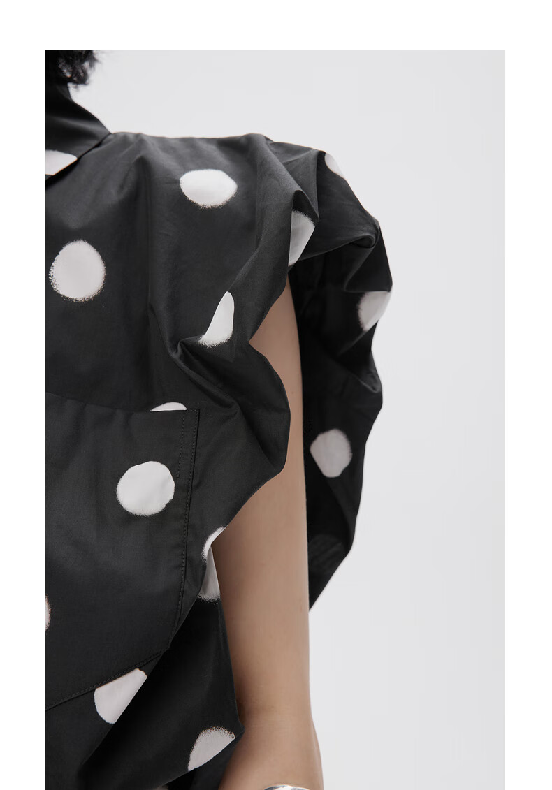 JNBY/Jiangnan Buyi Autumn and Winter Small Polka Dot Shirt Women's Shoulder Bubble Design Single-Breasted Lapel Sleeveless 5N7211060 690/Miscellaneous Pink S