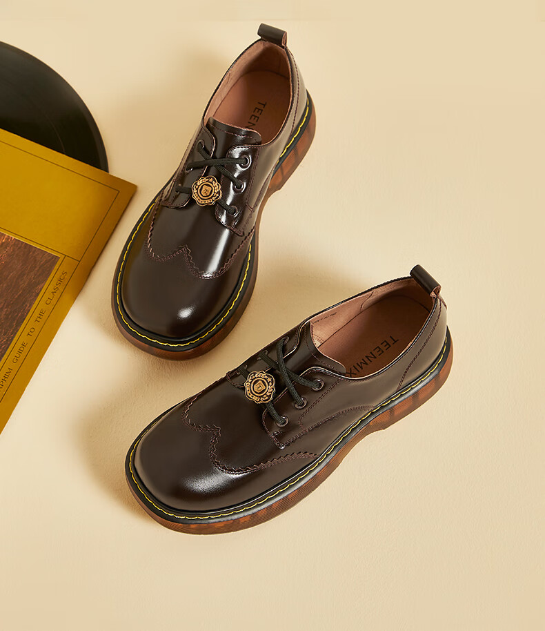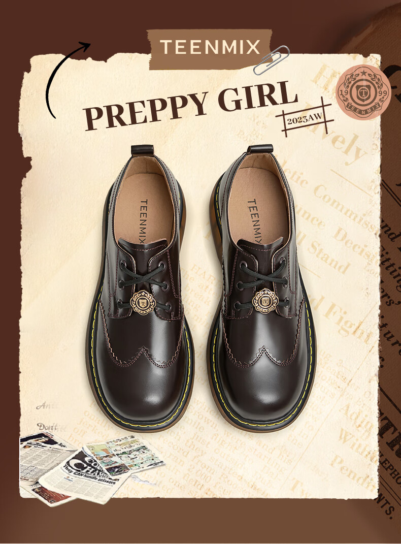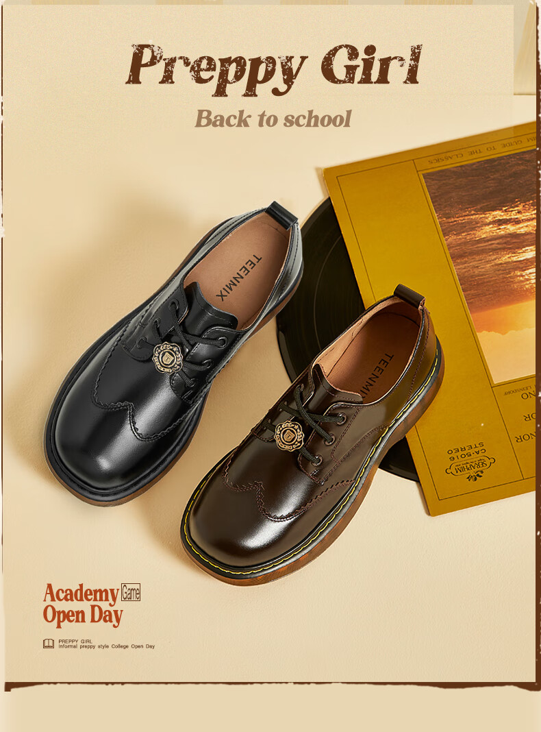 Tianmeiyi Shoes Women's Shoes Shopping Mall Same Style Lace-up Casual College British Retro Women's Shoes CRP22CM3 Black 39