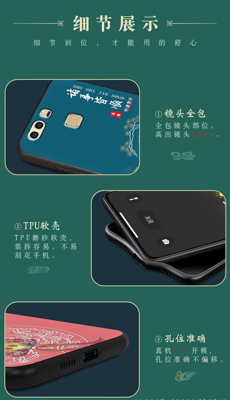 Shangji Suitable for Huawei P9PLUS frosted mobile phone case Chinese style New Year's Snake Year of the Snake for men and women silicone soft anti-fall protective cover light and thin national trend new product -ou659 Ping'an Fu p9plus with ring buckle