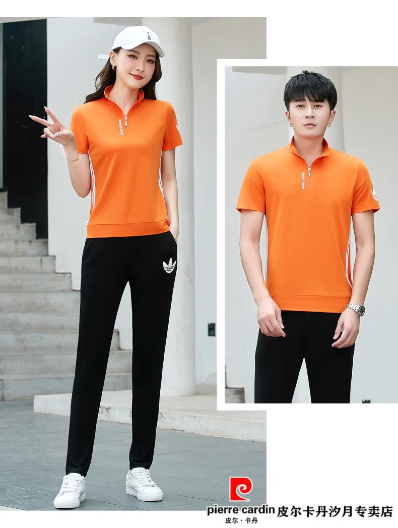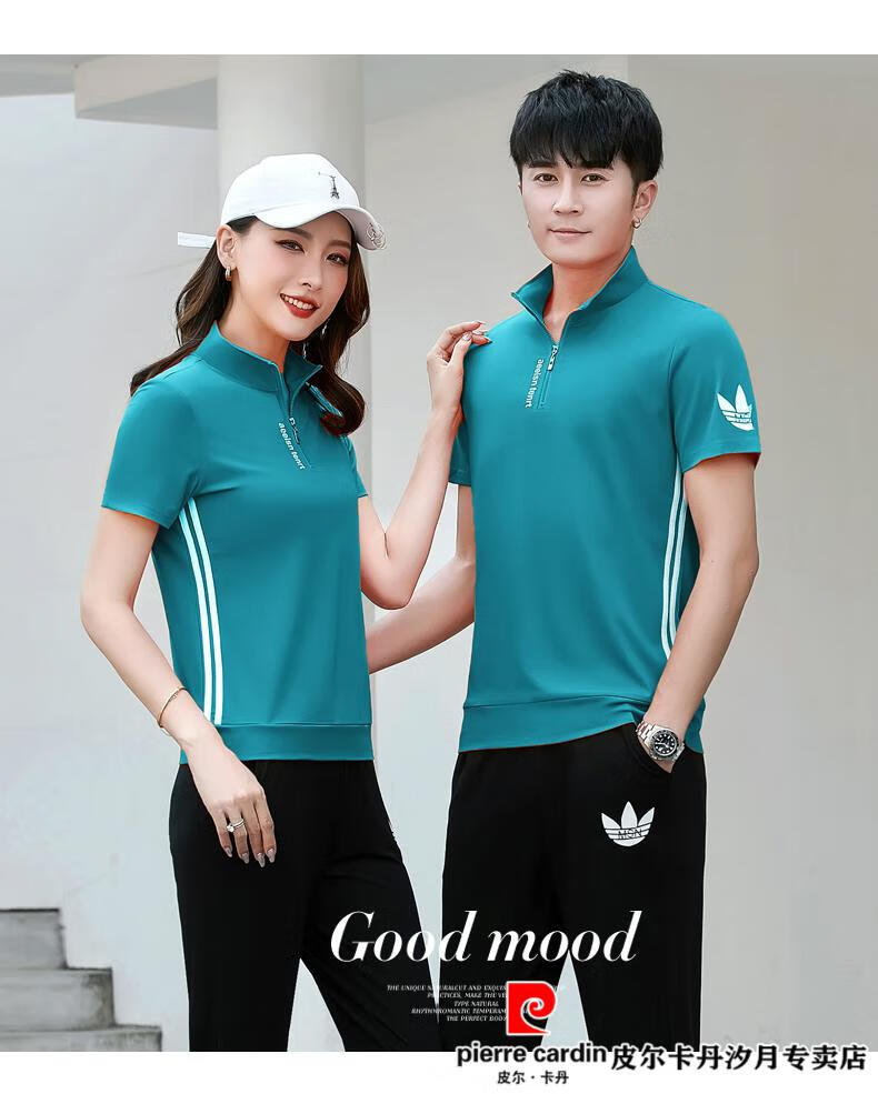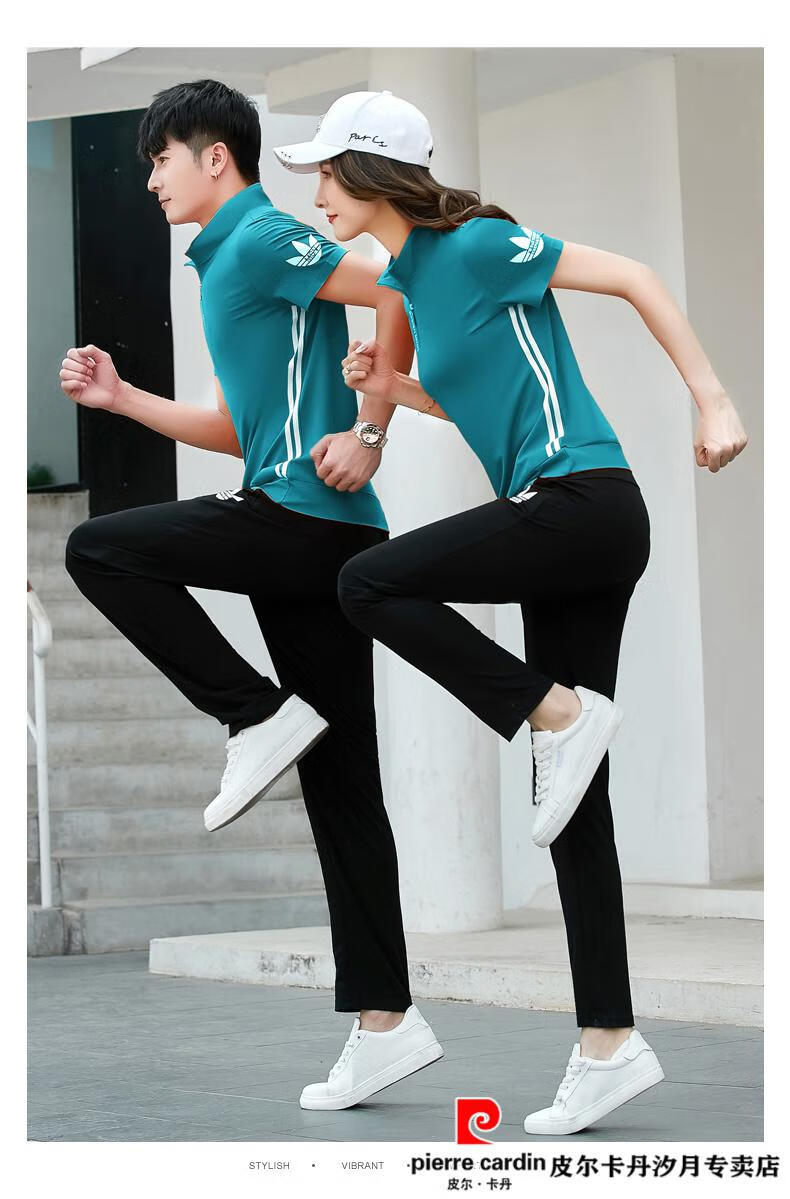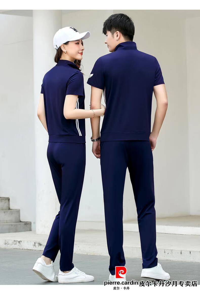 Pierre Cardin Paar trägt 2023 Sommer-Kurzarm-T-Shirt, Internet-Promi-Baumwolle, halbärmeliges Set, lässiger Sportanzug, Sommer-Sportbekleidung für Herren, 12109, hellblauer Herren-Stil, Eisseide, M