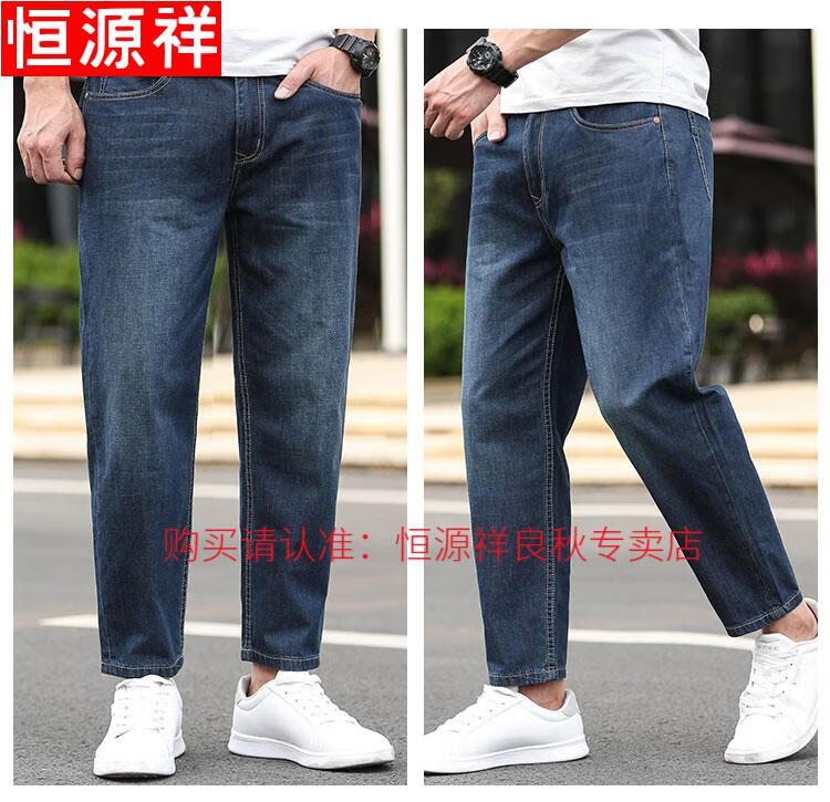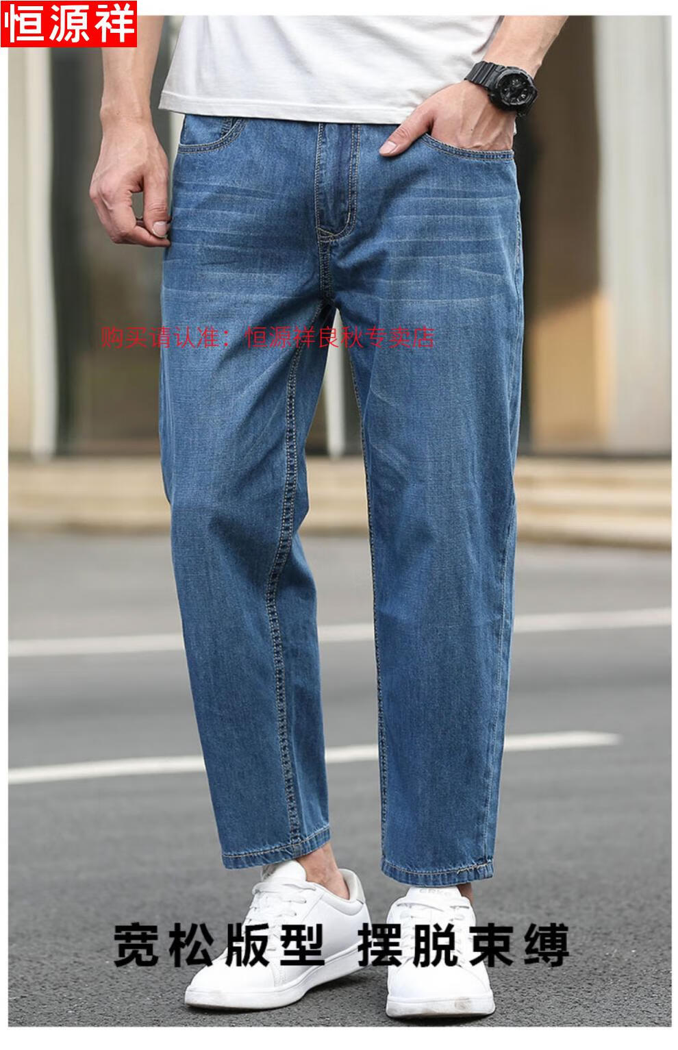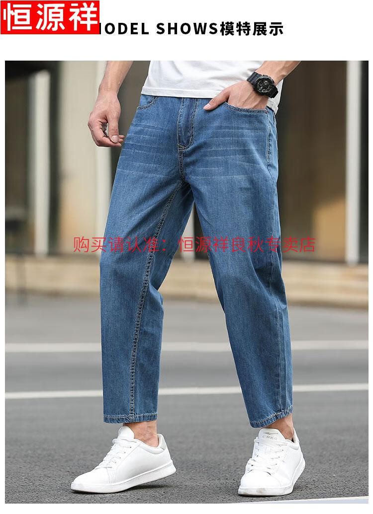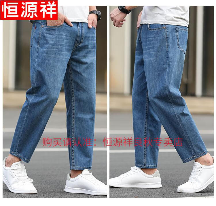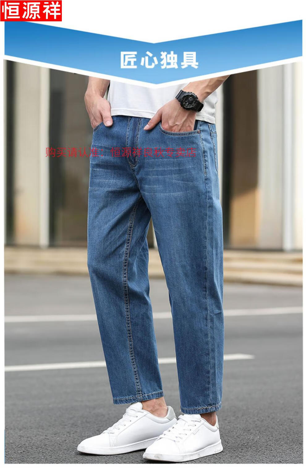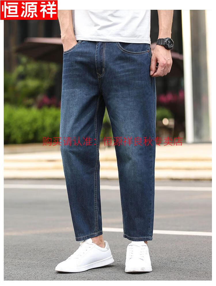 恒源祥夏季薄款九分男裤牛仔裤男直筒宽松休闲裤新款纯棉无弹9分裤子 中蓝九分裤1390# 纯棉无弹 32码(腰围2.5尺收藏优先发)