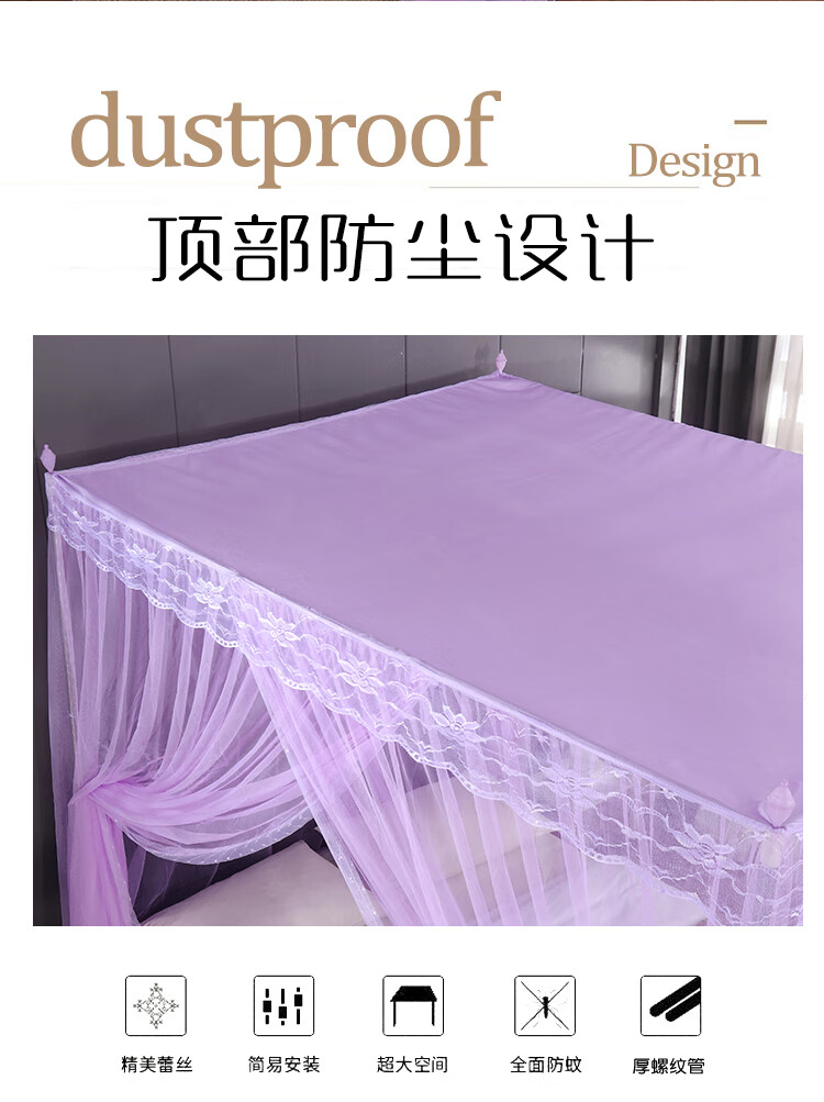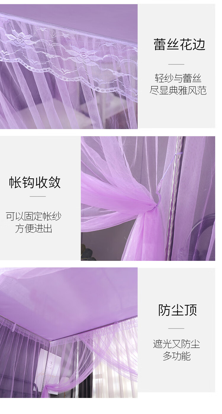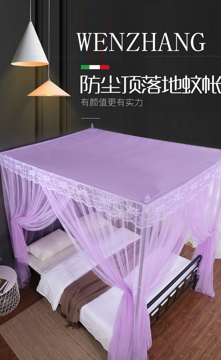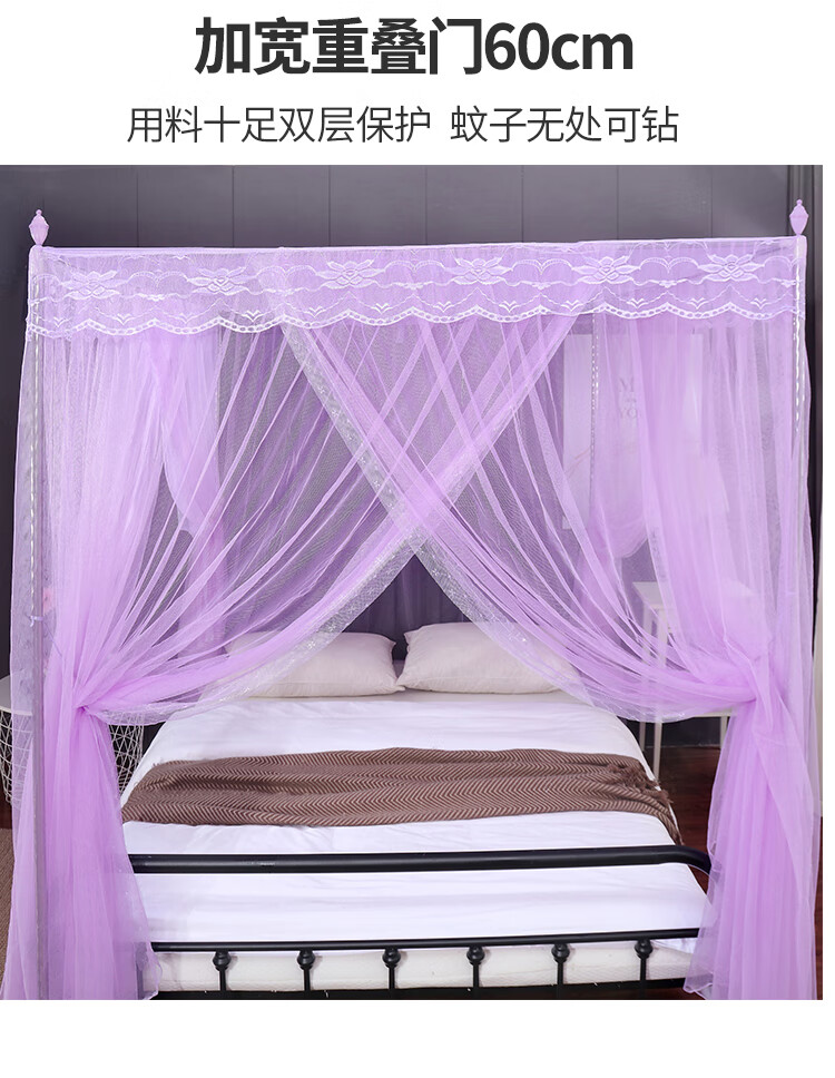 Magic City's new floor-standing palace mosquito net three-door dustproof top cloth household bedroom 1.5 meters large bed 1.8m bed 1.2 dustproof top three door white + column 19MM bracket 1.5*2 meters bed