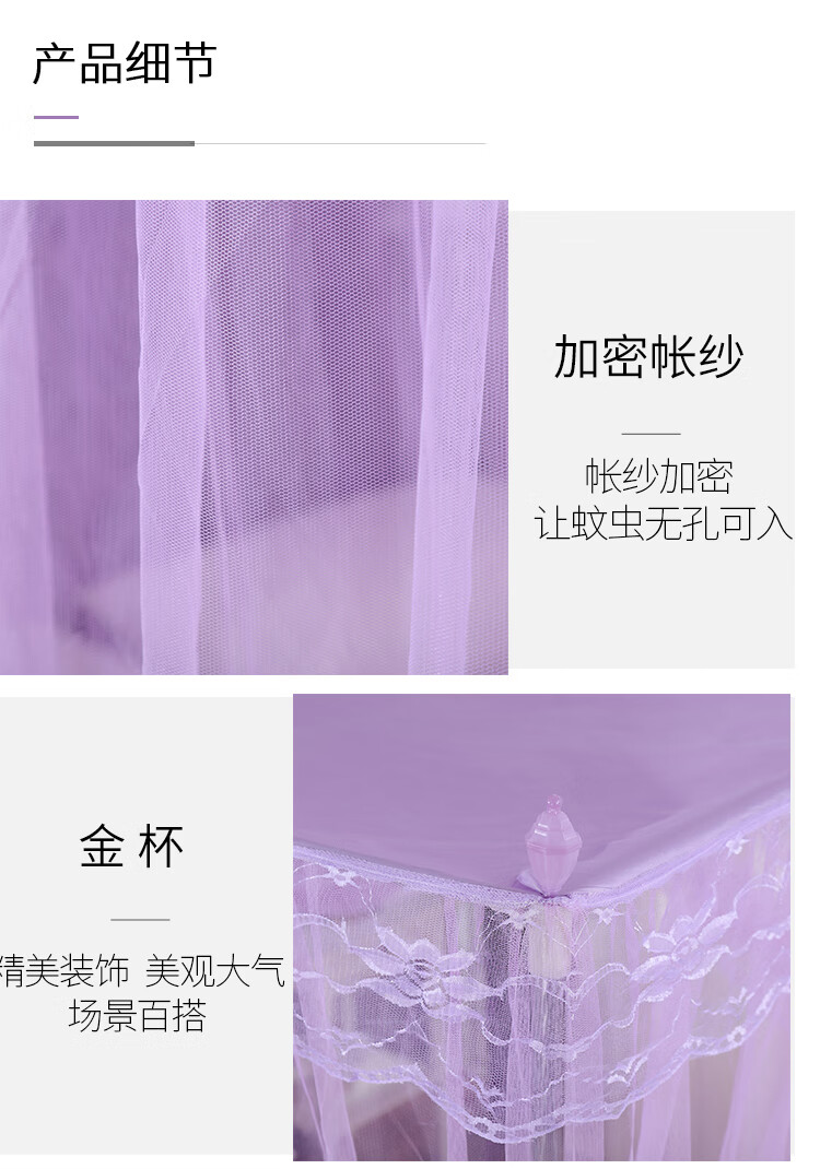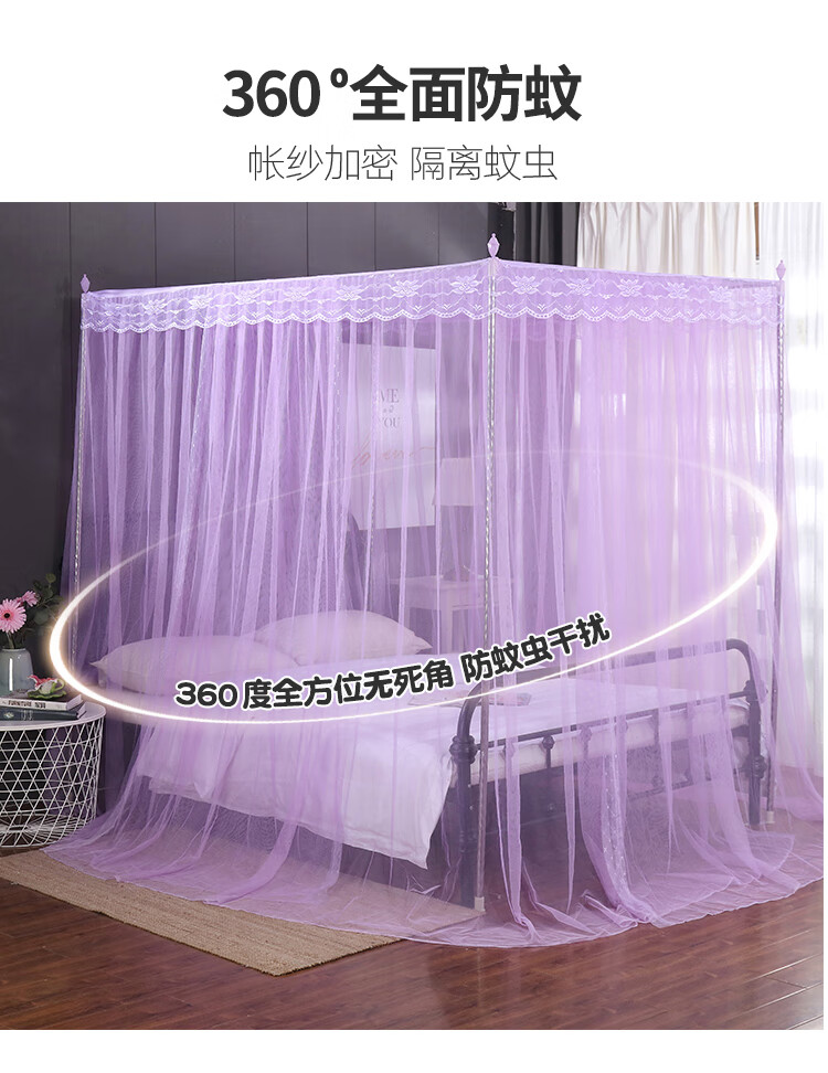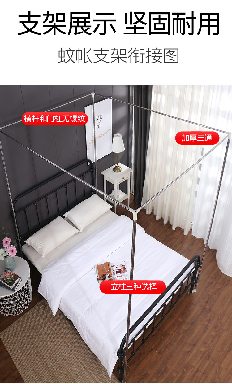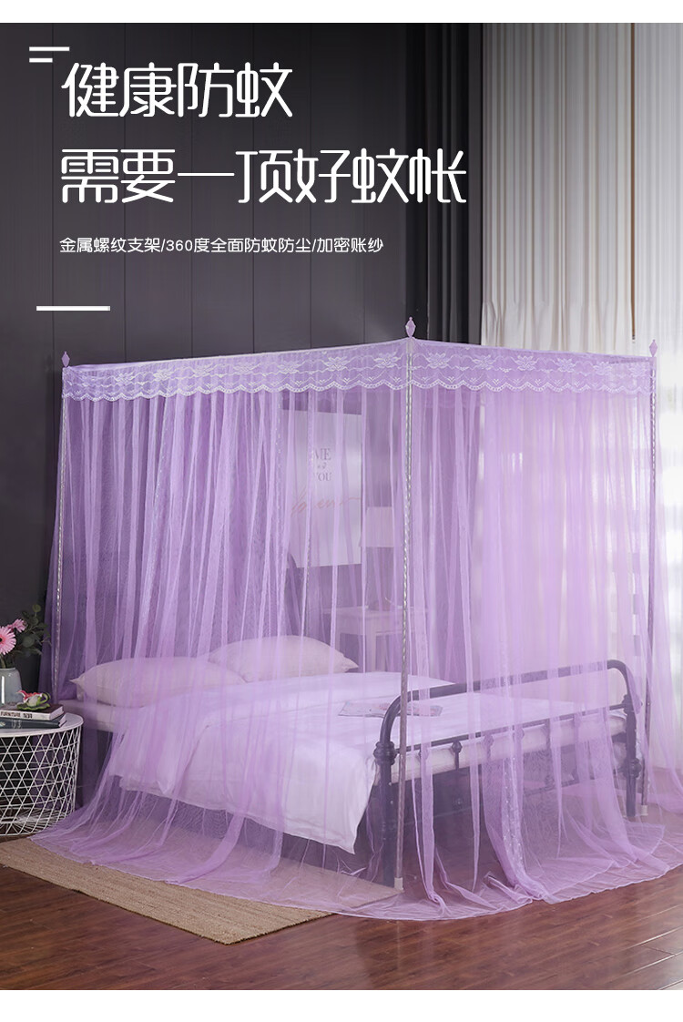 Magic City's new floor-standing palace mosquito net three-door dustproof top cloth household bedroom 1.5 meters large bed 1.8m bed 1.2 dustproof top three door white + column 19MM bracket 1.5*2 meters bed