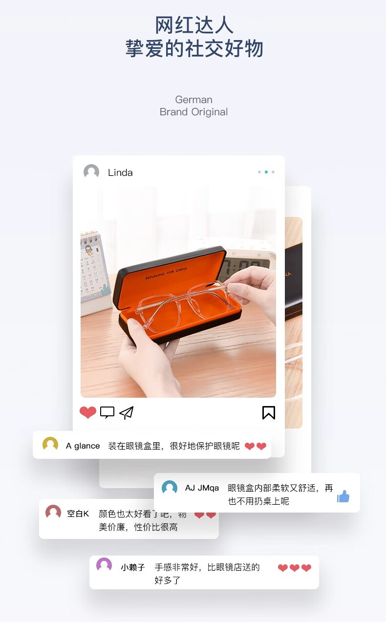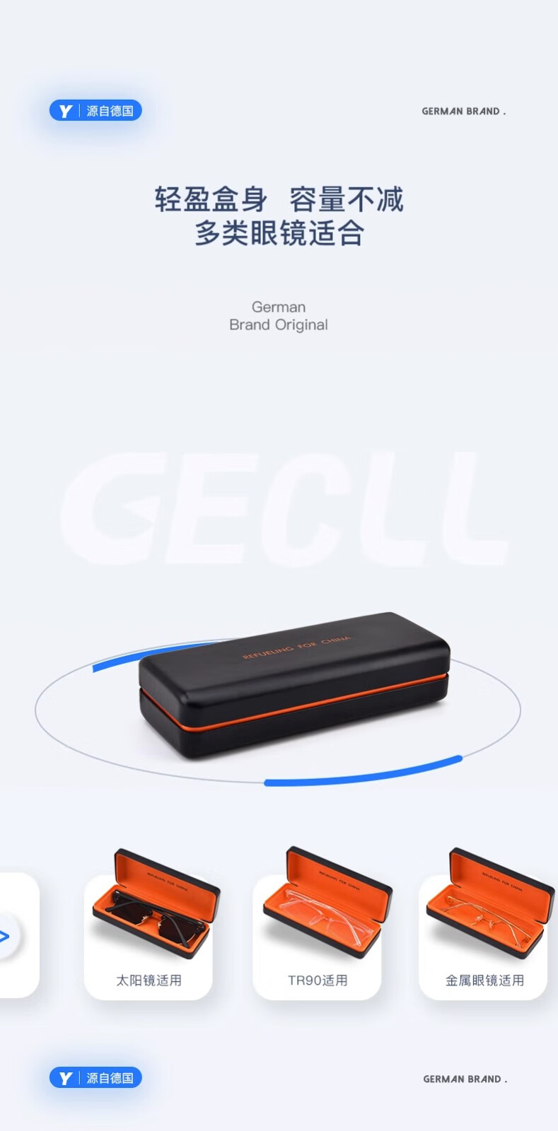 GECLL German glasses case, high-end portable men's hard-pressure storage box, large-capacity sunglasses, myopia eye box, classic black