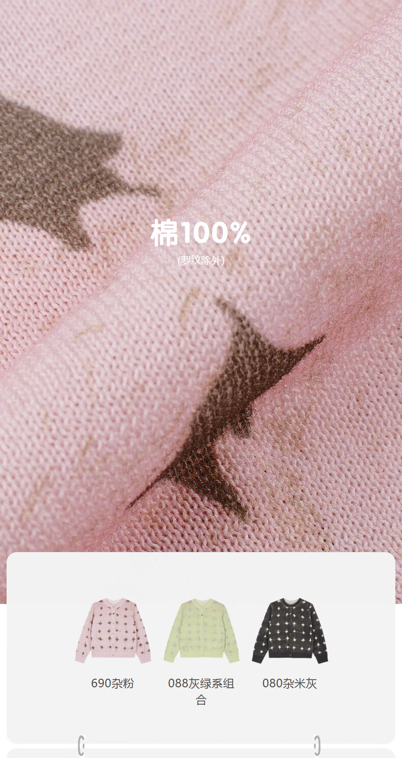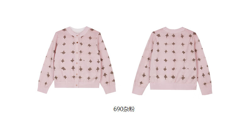 Jnby by JNBY Jiangnan Buyi children's clothing autumn coat cardigan sweater jacket light and comfortable for boys and girls 1N7313520 690 mixed powder 140 cm