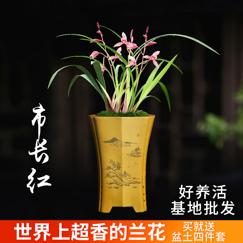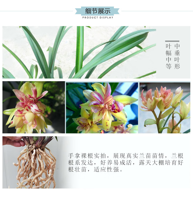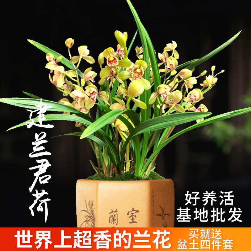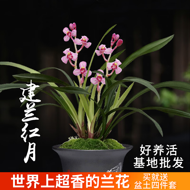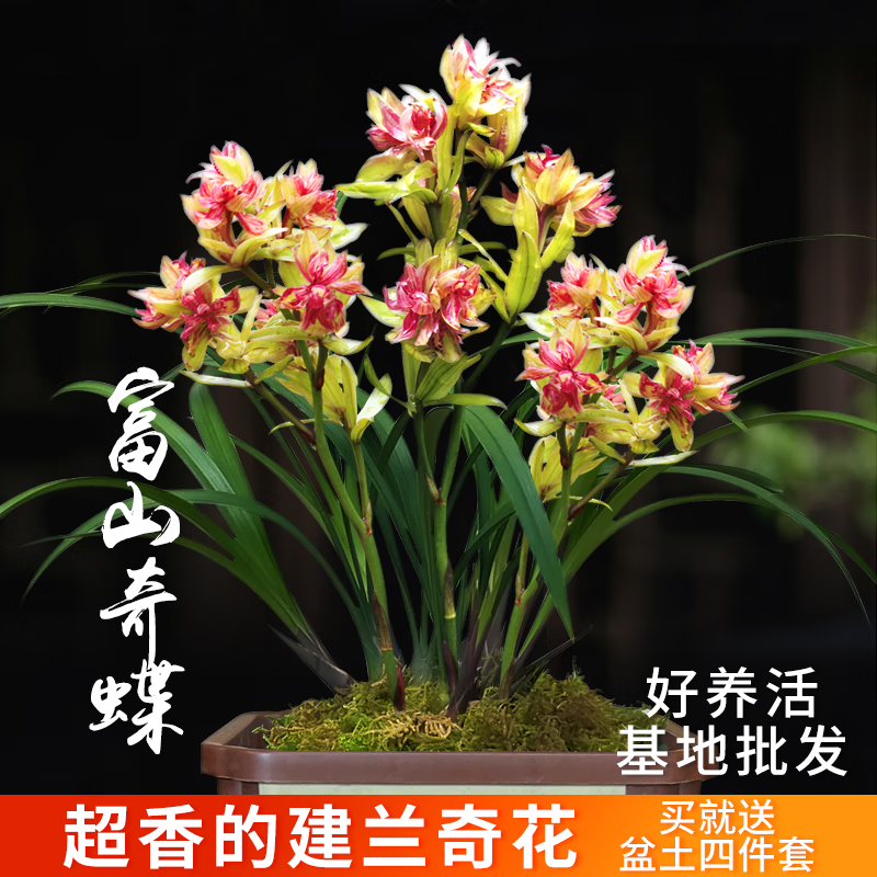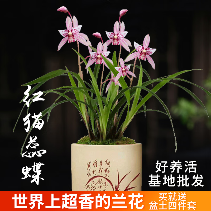 HUANGGUANNENG Orchid Seedlings, Jianlan Xiaomei Garden, Rich Fragrance, Fushan Butterfly, Red Lotus Petals and Red Moon, 6 conjoined seedlings shipped with bare roots