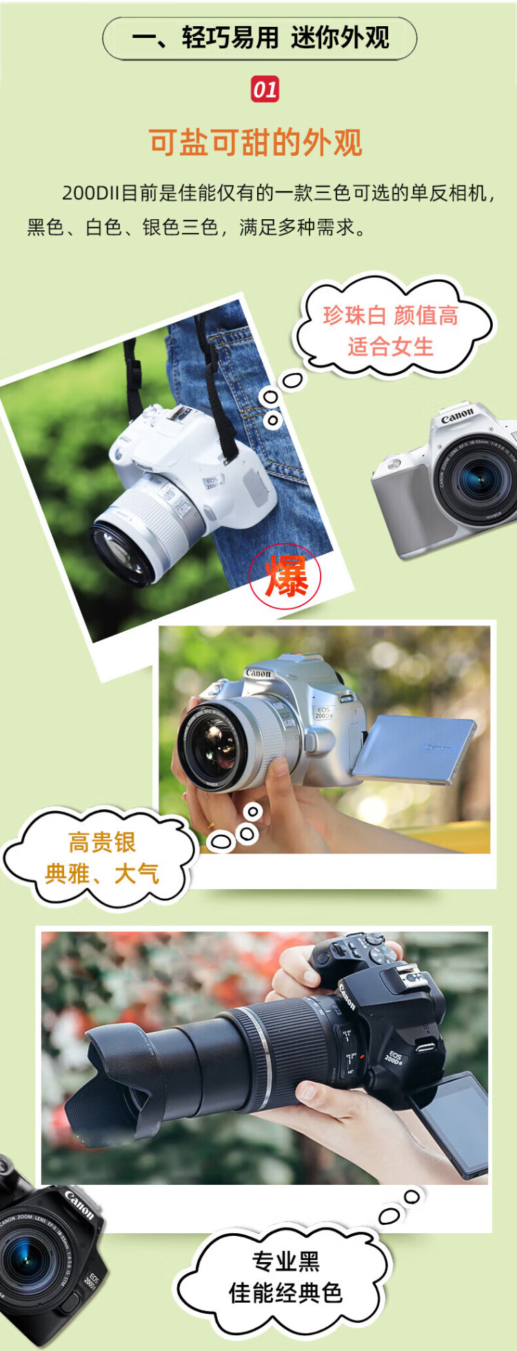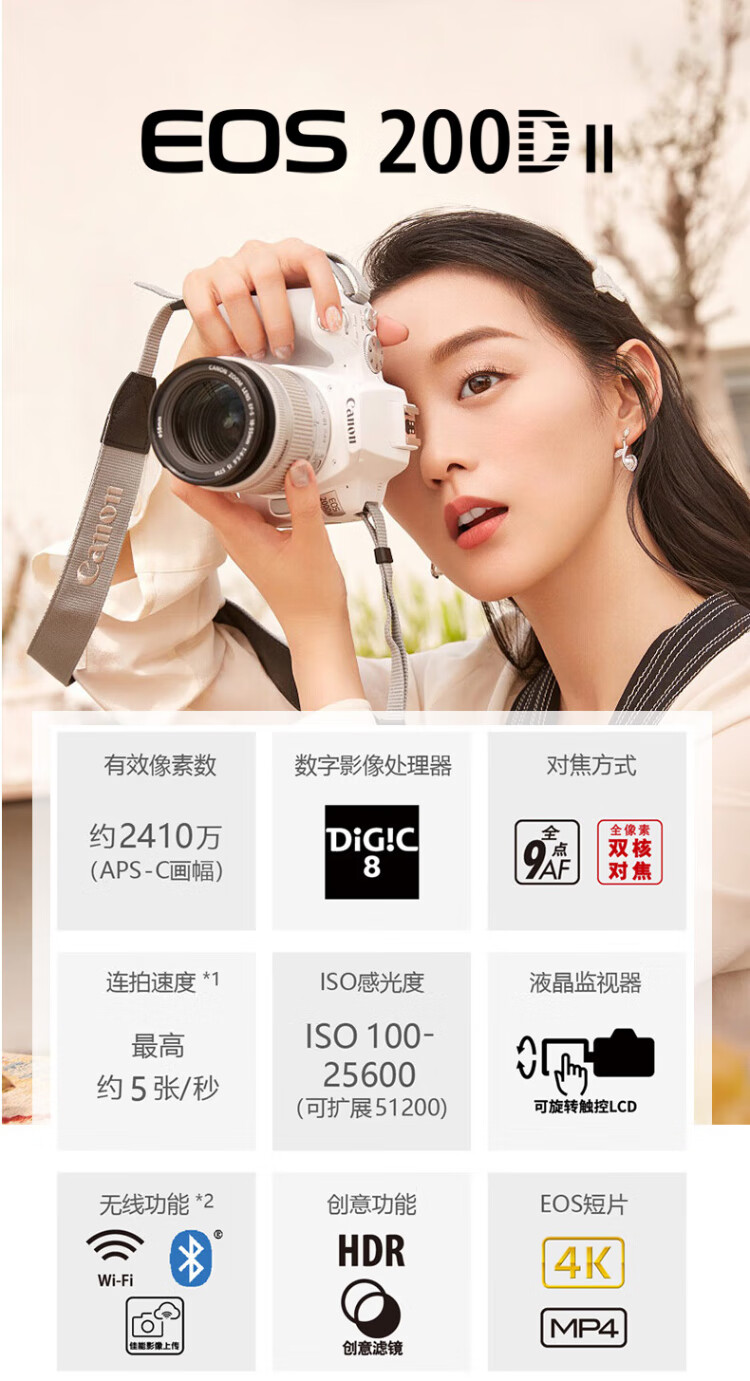 Canon (Canon) EOS 200d second generation entry-level SLR camera vlog portable home mini SLR digital camera 200DII white disassembled stand-alone + Canon small spittoon portrait lens set official standard no necessary accessories photography accessories ~ recommended purchase package