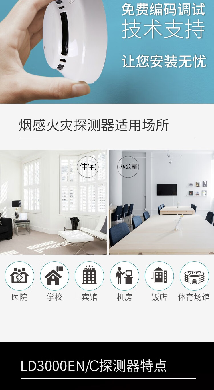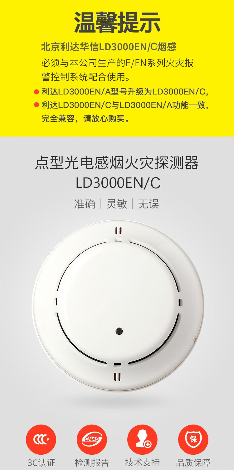 Beijing Lida smoke alarm JTY-GM-LD3000EN/C point type photoelectric smoke fire detector JTY-GM-LD3000EN/C smoke detector + base