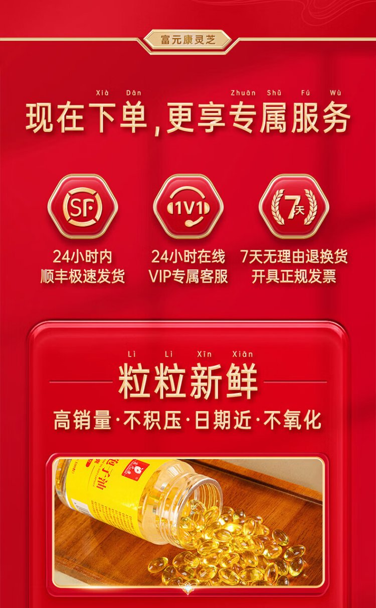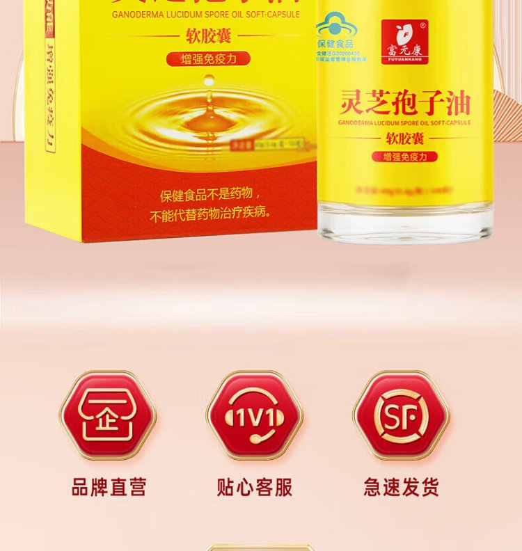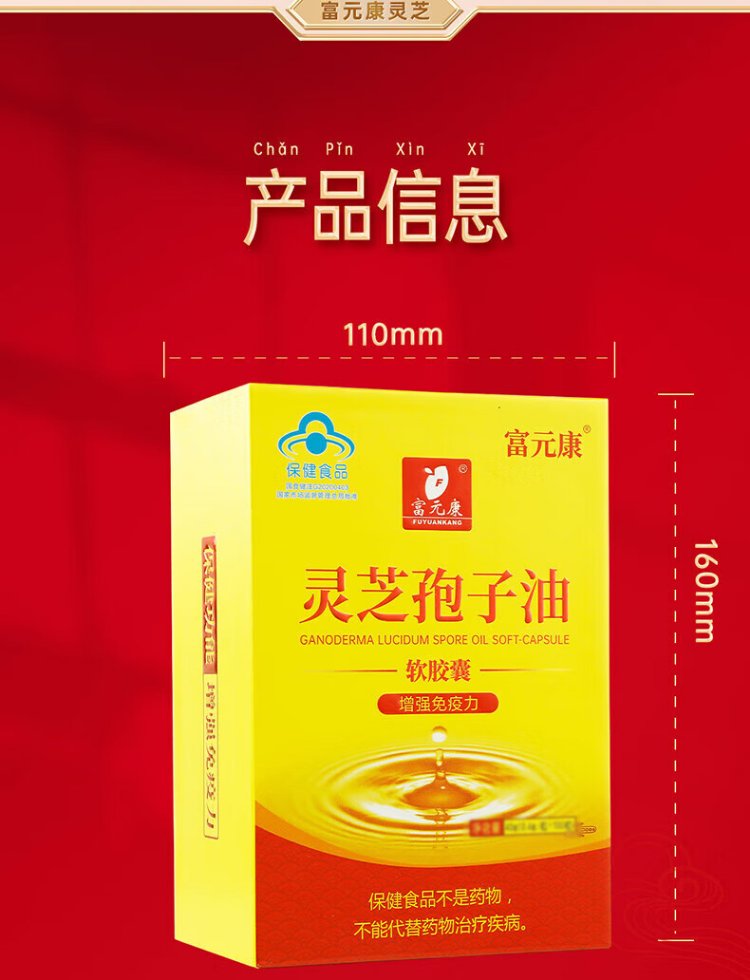 Fuyuankang Ganoderma-Sporenöl-Weichkapsel Changbai Mountain Broken Ganoderma-Sporenpulverextrakt stärkt die Immunität Hoher Gehalt an Gesundheitsschutz Sporenöl 100 Kapseln*1 Flasche