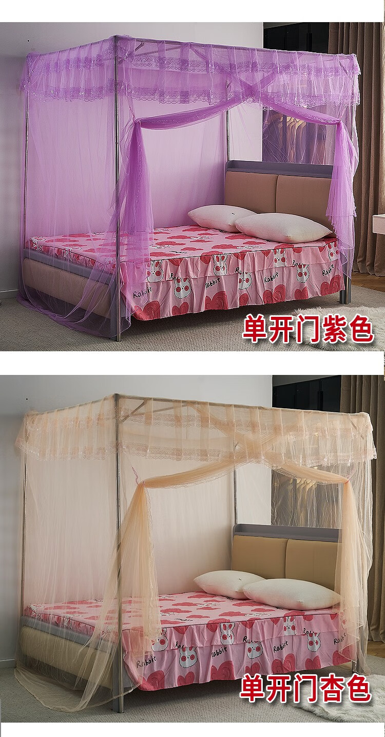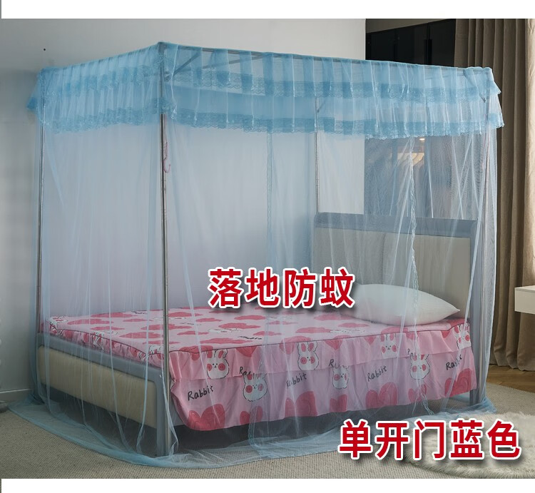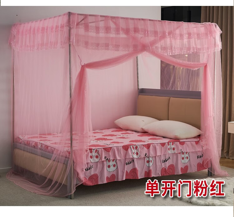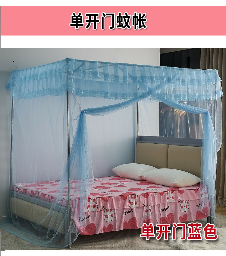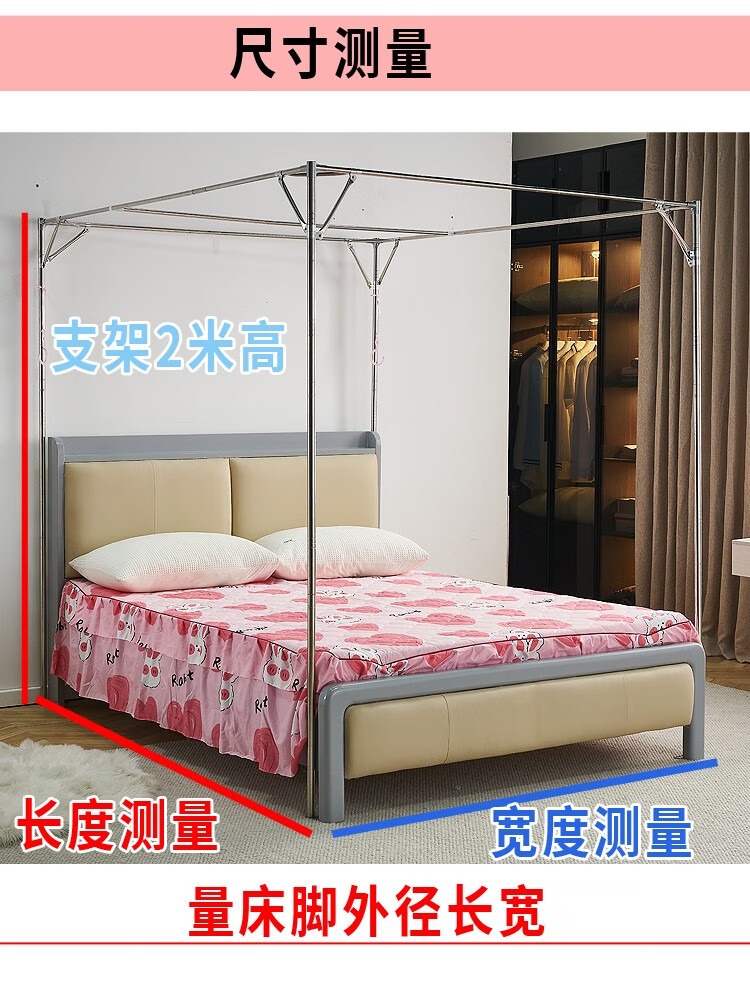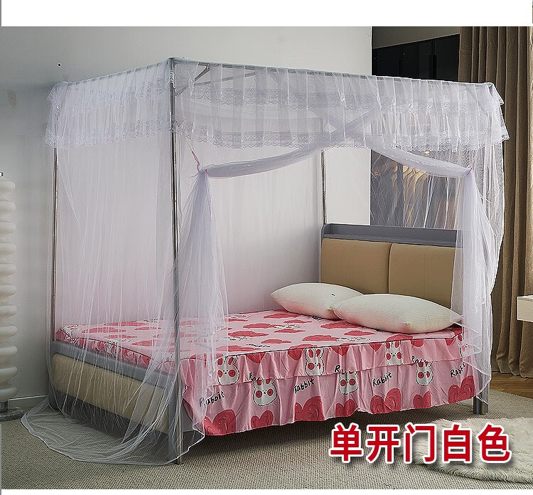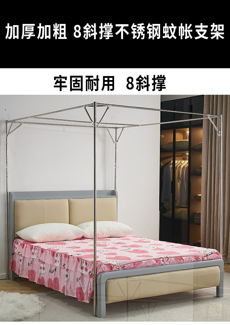 Mosquito net bracket rod stainless steel floor-standing thickening 1.2m1.5m 1.8 double bed encryption can be customized mosquito net white single door mosquito net + bracket 8 diagonal braces (1 set 1.8 wide x 2 meters long