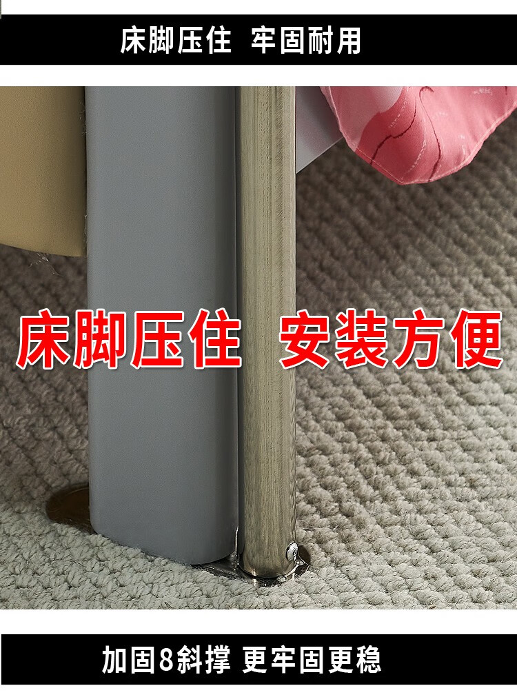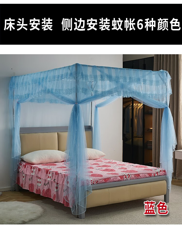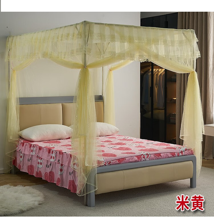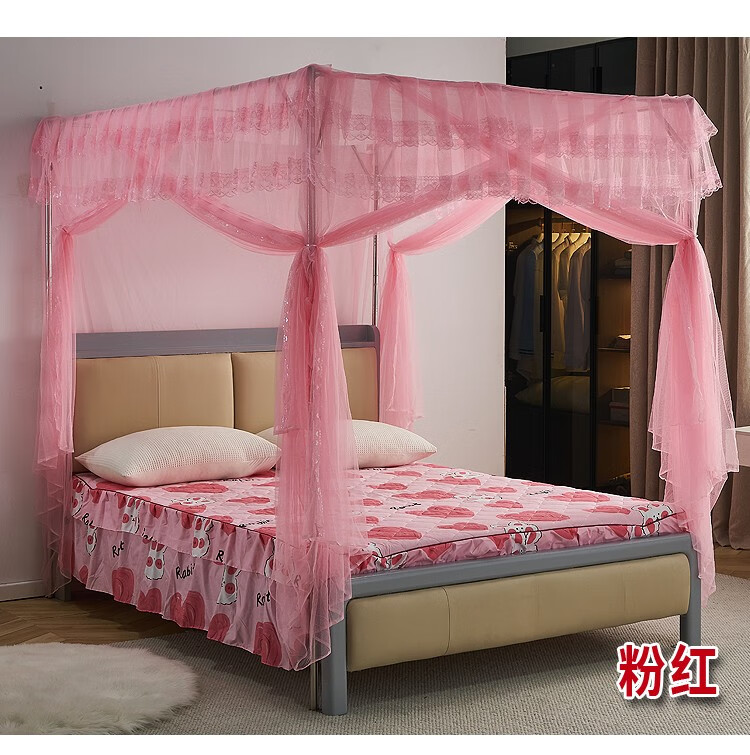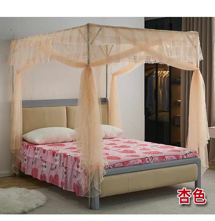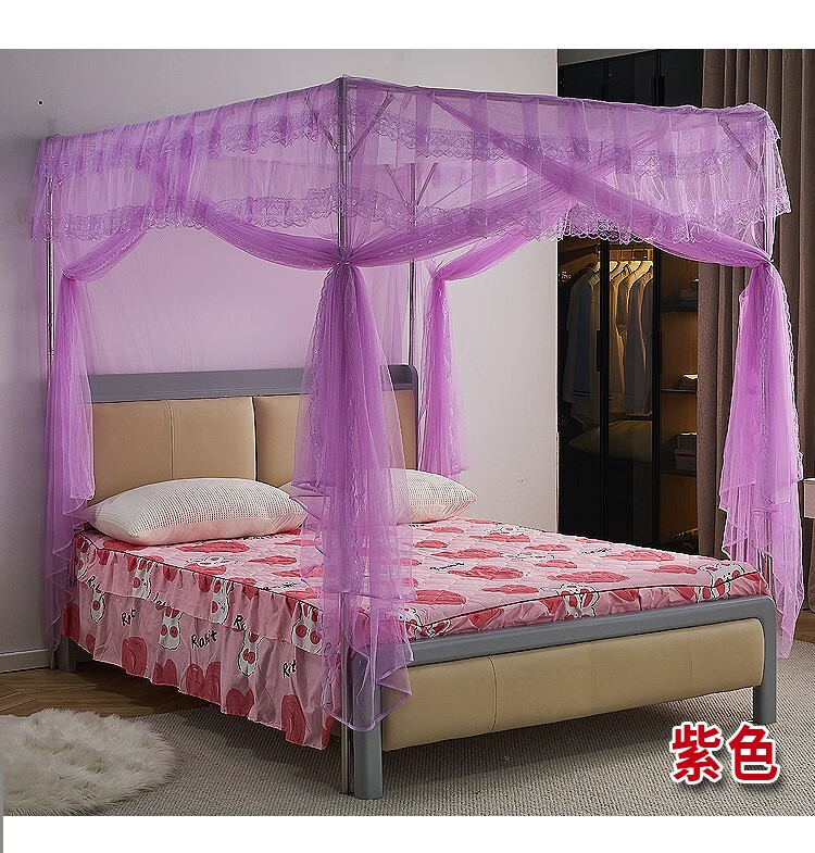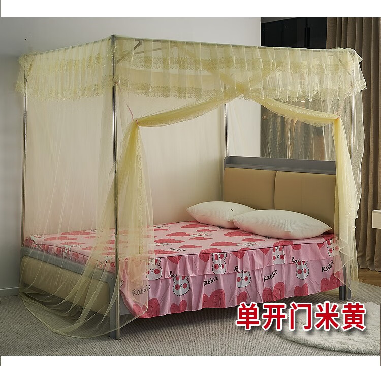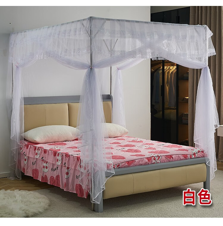 Mosquito net bracket rod stainless steel floor-standing thickening 1.2m1.5m 1.8 double bed encryption can be customized mosquito net white single door mosquito net + bracket 8 diagonal braces (1 set 1.8 wide x 2 meters long