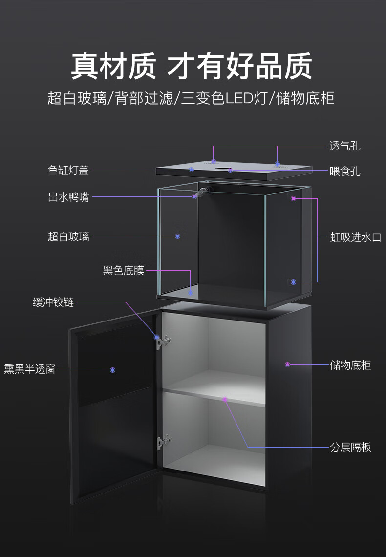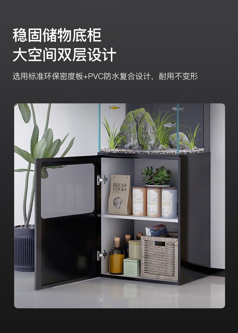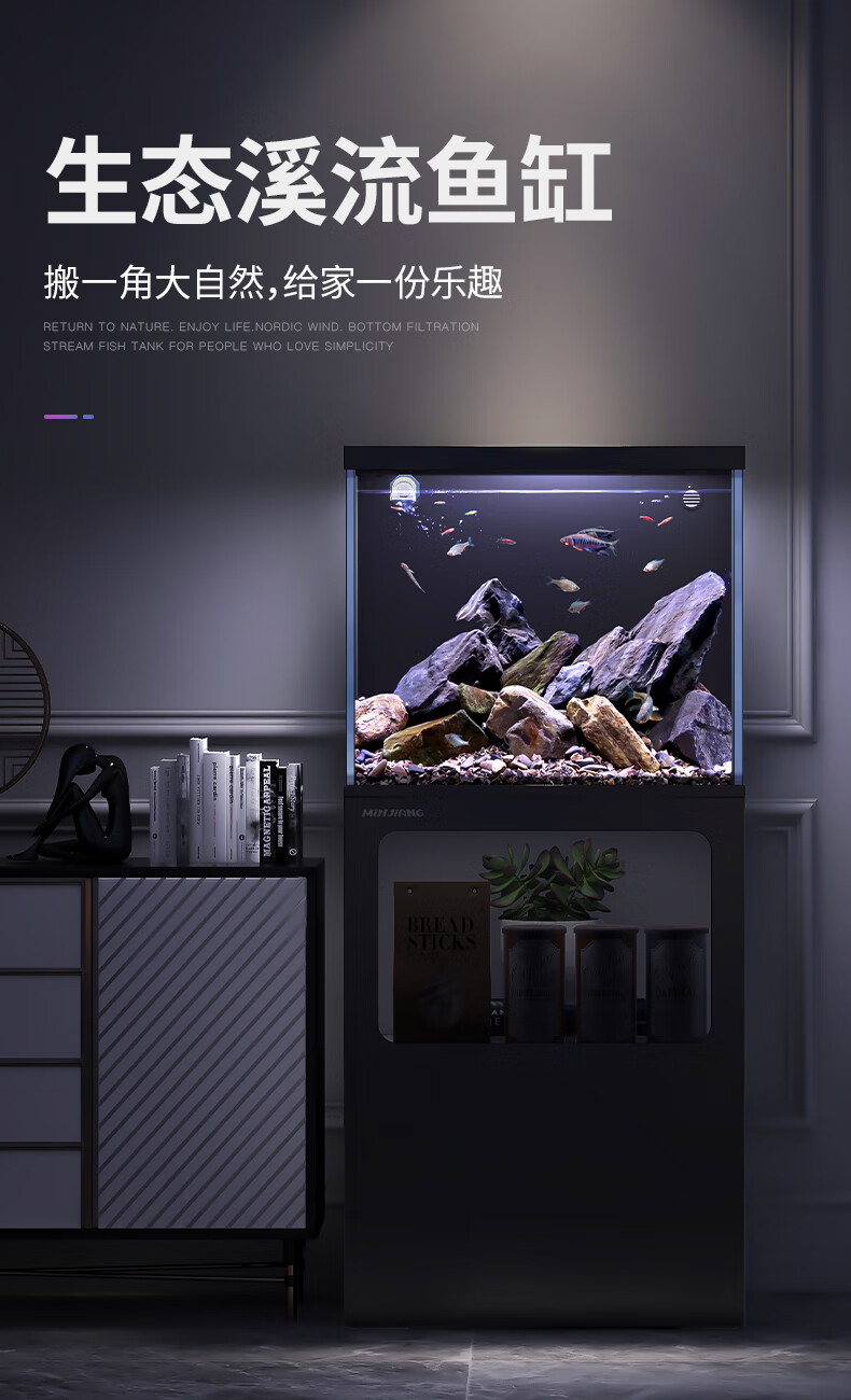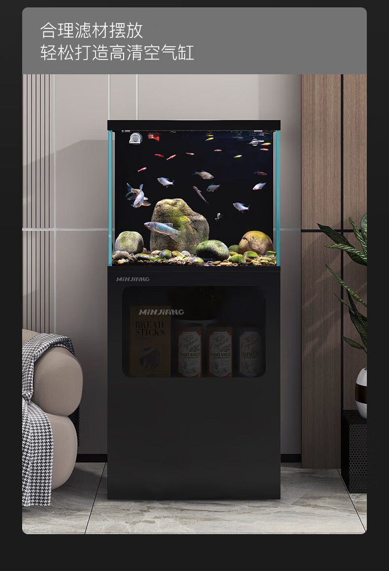 Fujian Jiang (minjiang) fish tank aquarium living room home back filter ultra-white glass landscaping goldfish tank koi ecological tank desktop fish tank SJ-400 set fish tank + storage cabinet (black)
