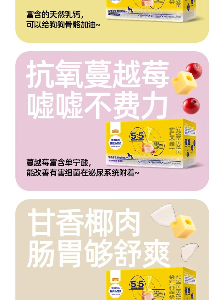 McFoody Pet Dog Snacks, Dog Training Rewards for Adult Puppies, Fresh Meat and Cheese Slices, Added Cranberry 165g (11g*15)