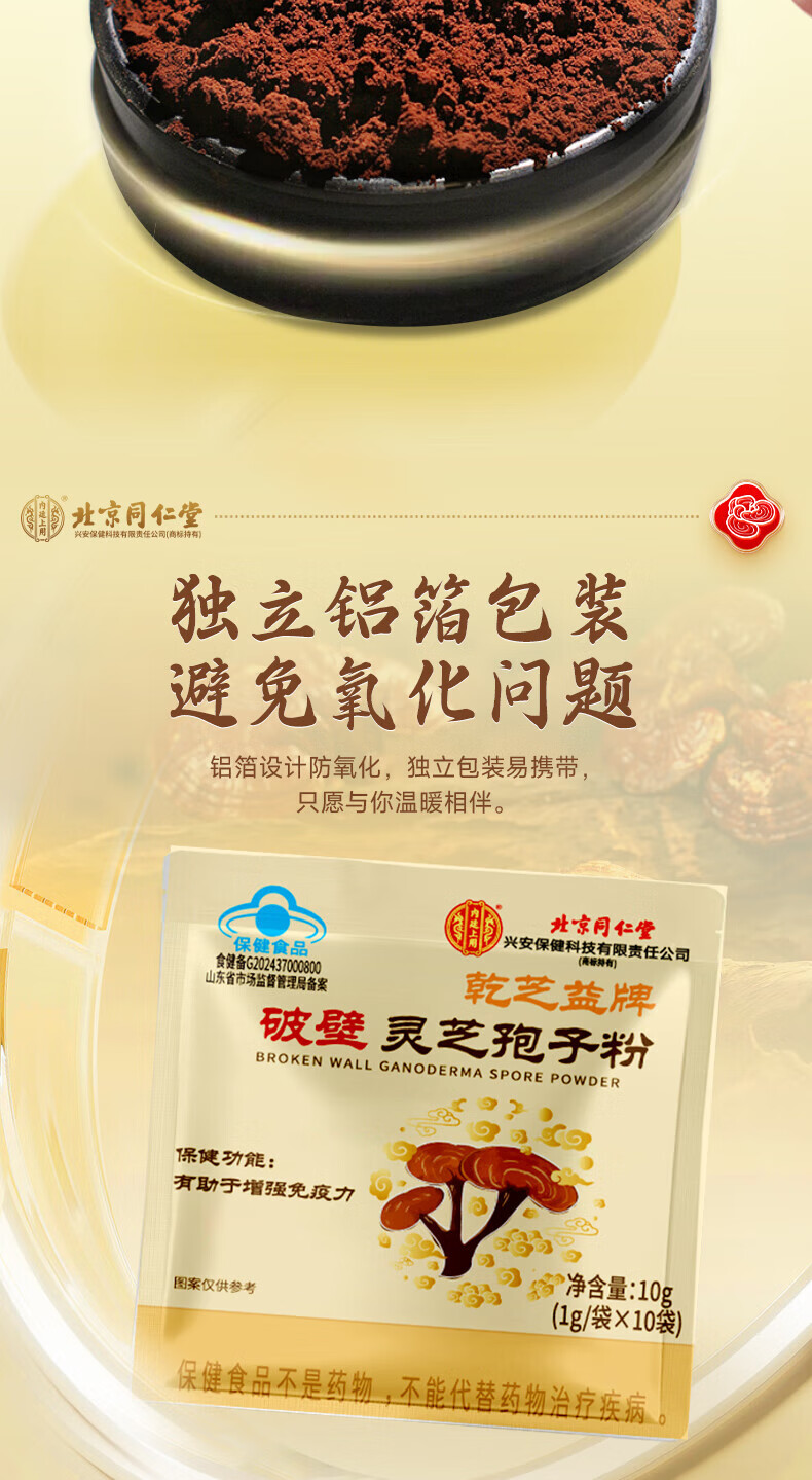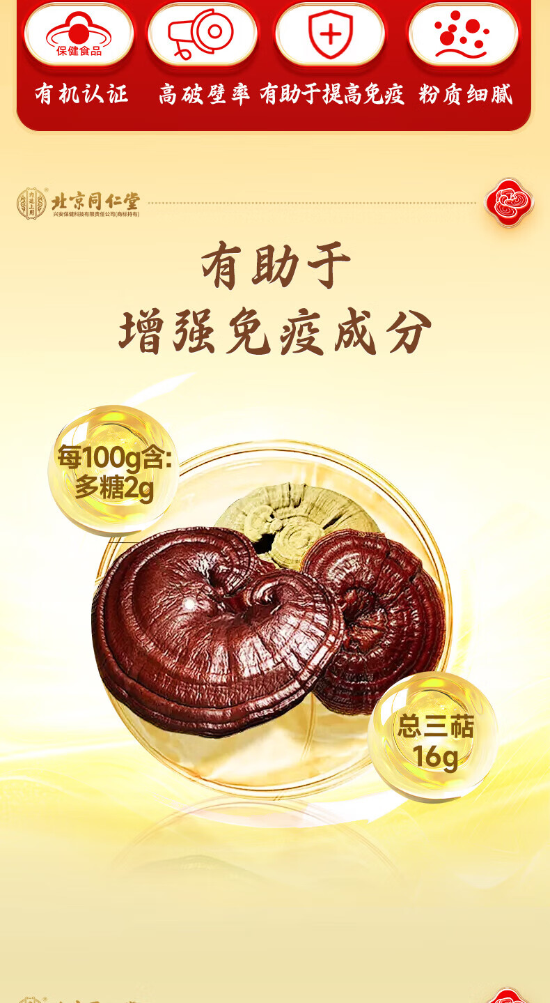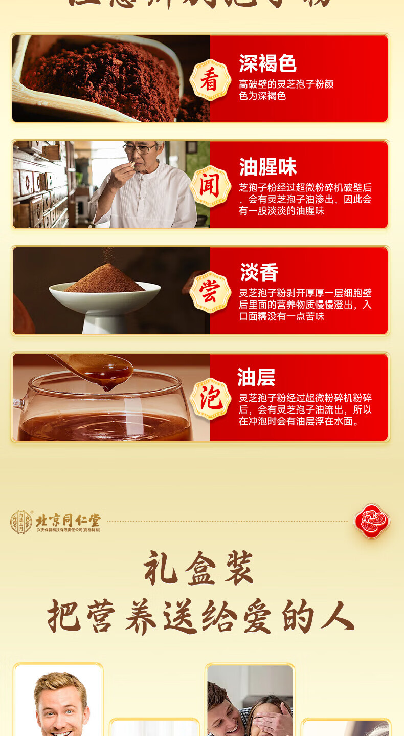 Tongrentang Broken Ganoderma Spore Powder to enhance immunity, nutritional supplements for middle-aged and elderly adults, gift box, 60 bags*2 boxes, gift bag, birthday gift for mom