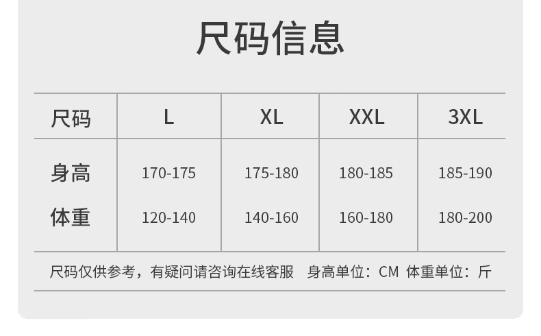 China (cm) 165 / 88-90 170 / 96-98 175 / 108-110 180 / 118-122 185 / 126-130