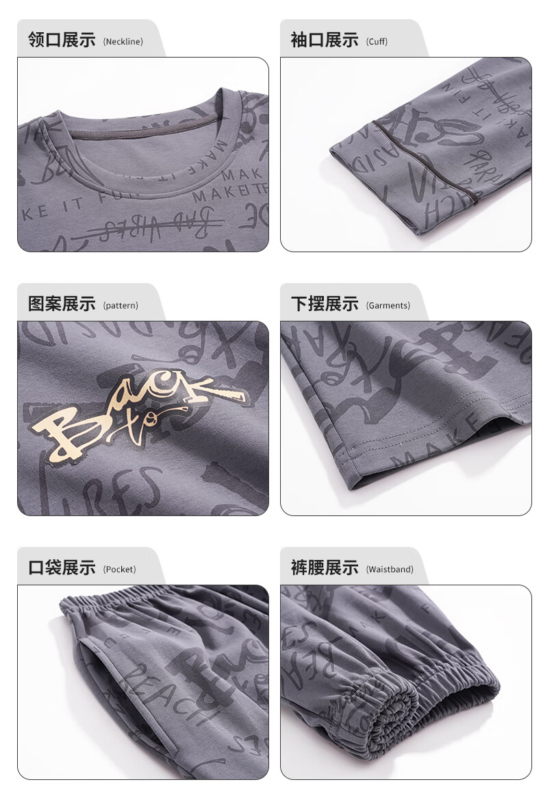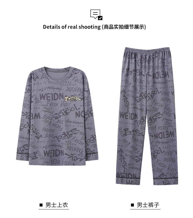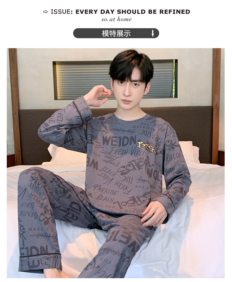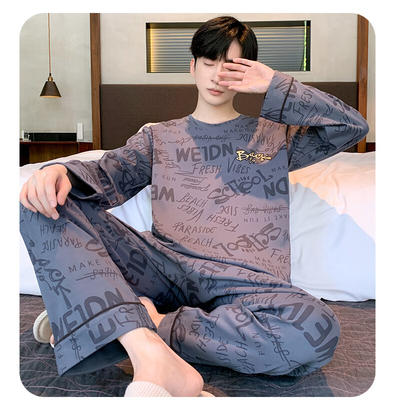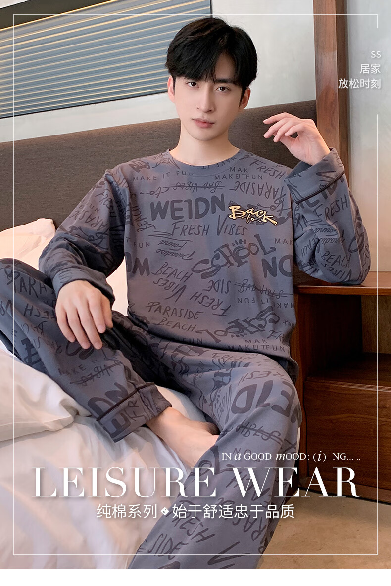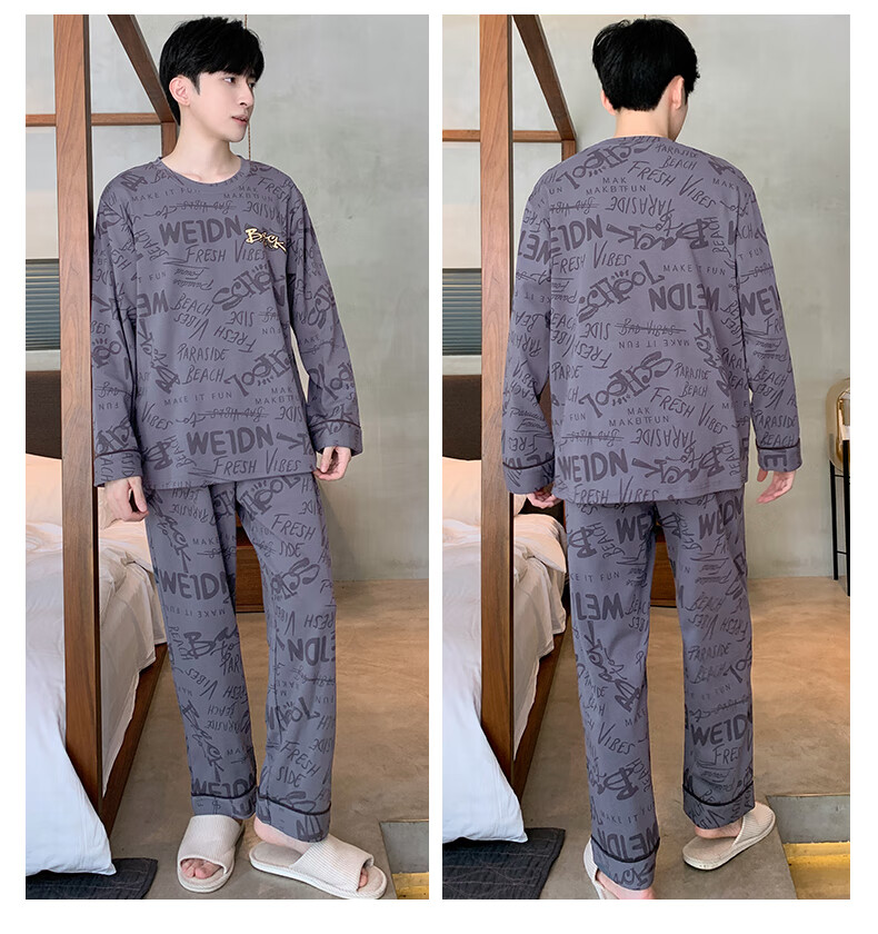 Three Guns Pajamas for Men Spring and Autumn Pure Cotton Long Sleeves and Trousers Fashionable Cotton Autumn Men's Casual Cartoon Home Clothes Set 9903 L Male (Recommended 120-140 Jin Jin equals 0.5 kg)