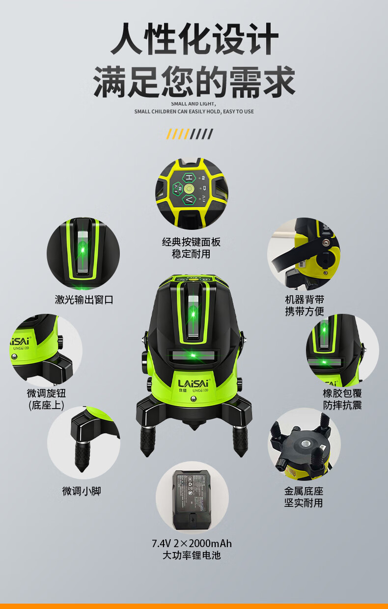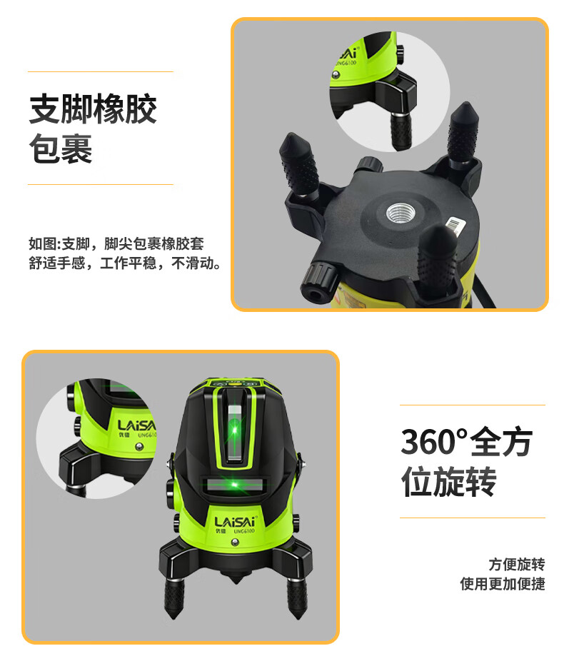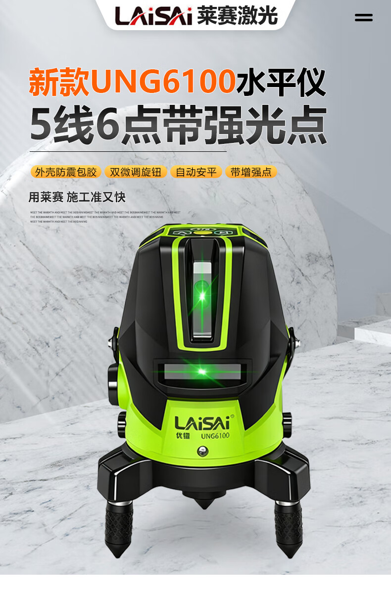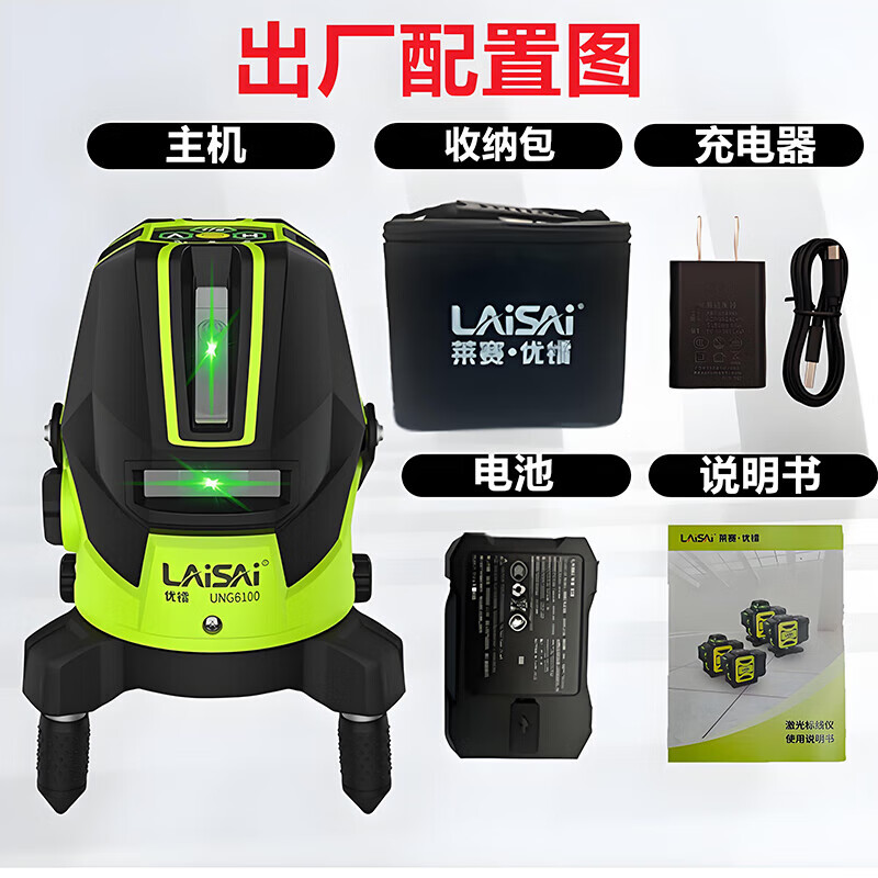 LAISAI's latest green light 5-line 6-point level UNG6100 high-precision outdoor strong light thin line burst infrared 665 series 2000 battery