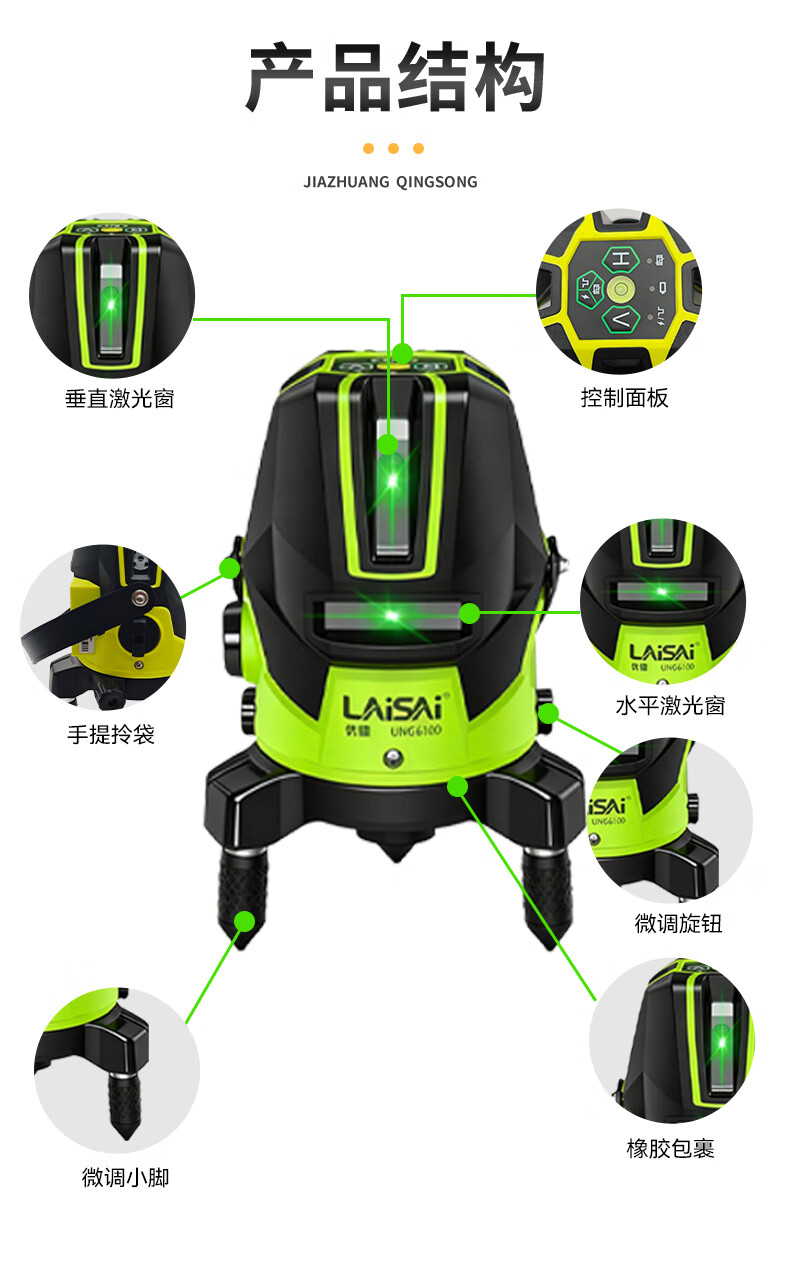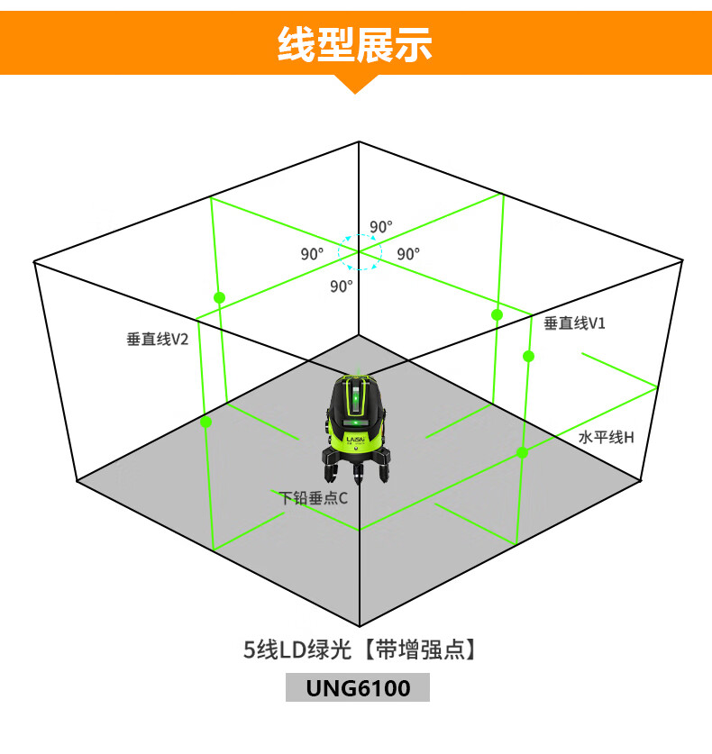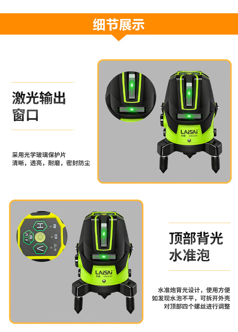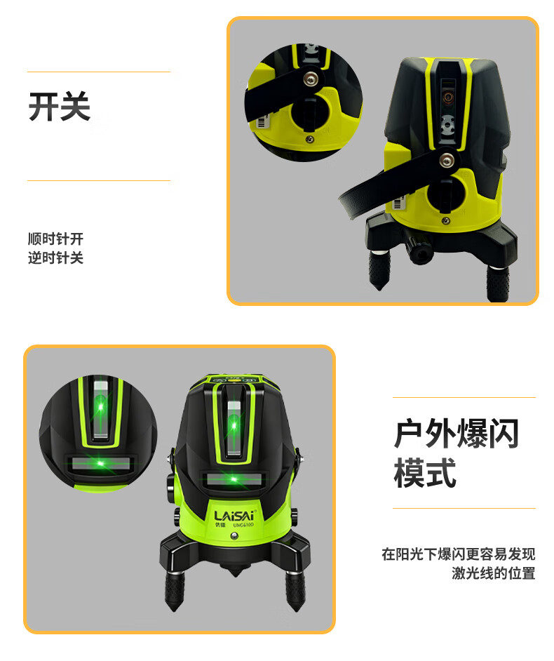 LAISAI's latest green light 5-line 6-point level UNG6100 high-precision outdoor strong light thin line burst infrared 665 series 2000 battery