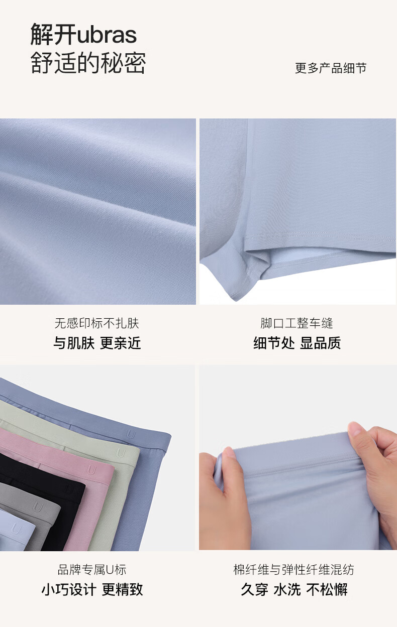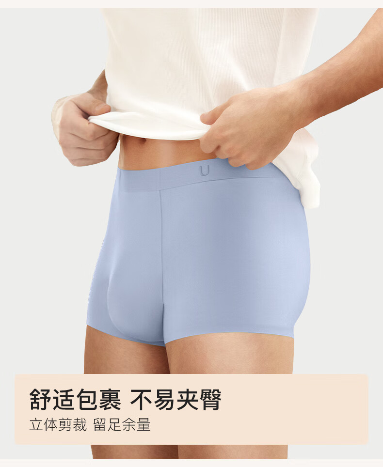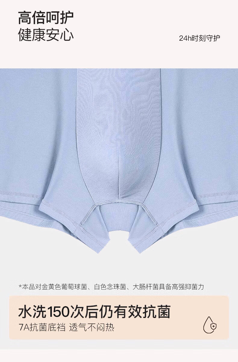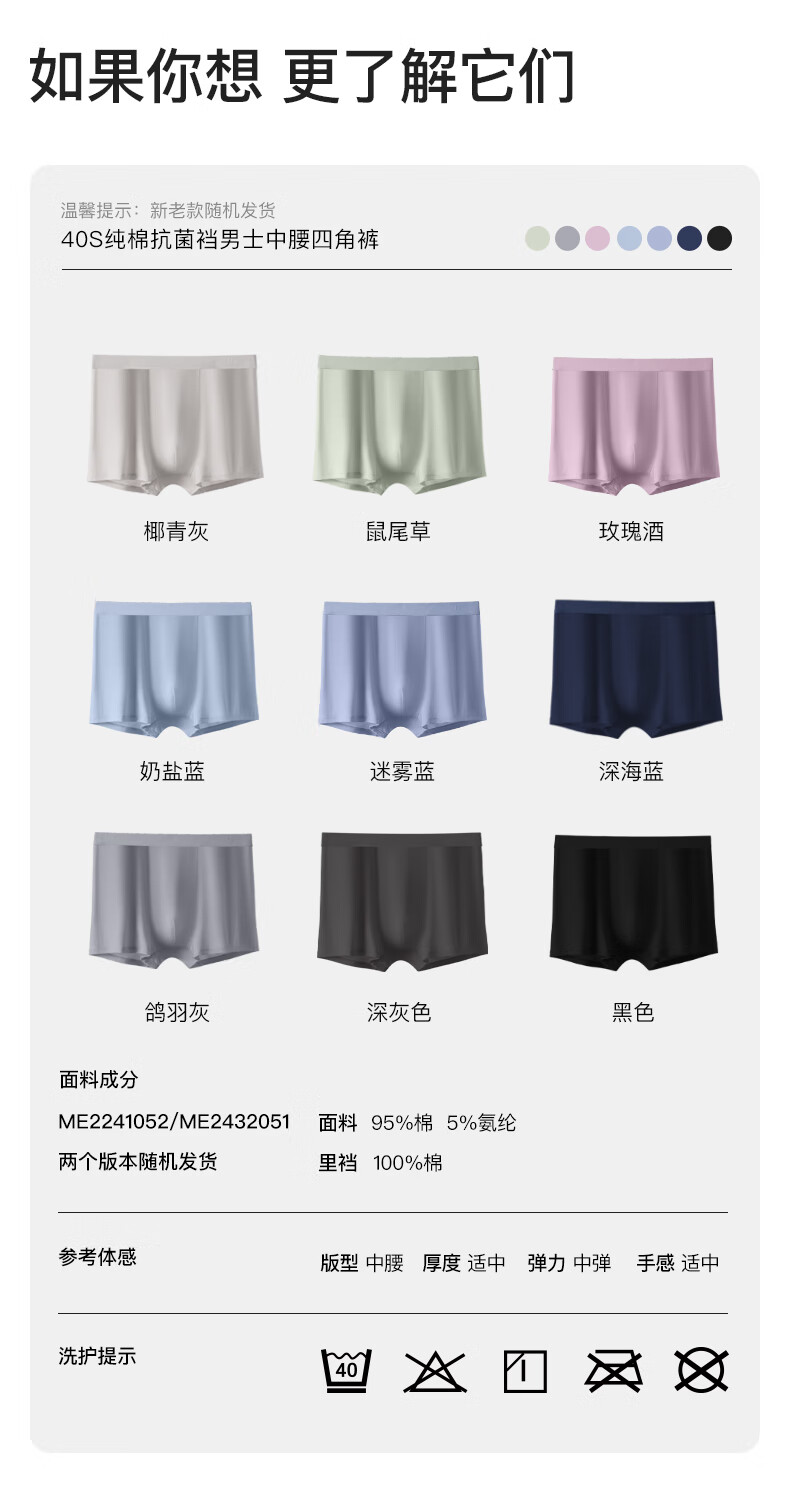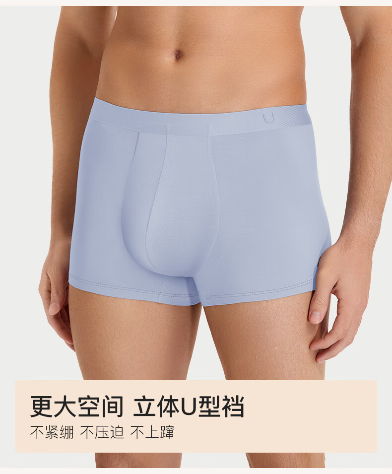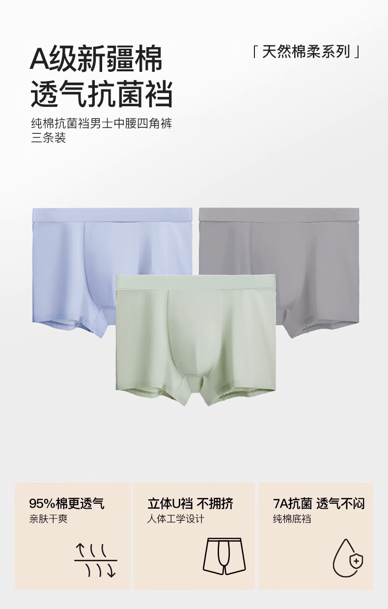 Ubras cotton antibacterial crotch men's underwear, men's mid-rise boxer briefs, comfortable and breathable boxer shorts (3 pairs), dark blue + dove feather gray + mist blue, 3 pairs L