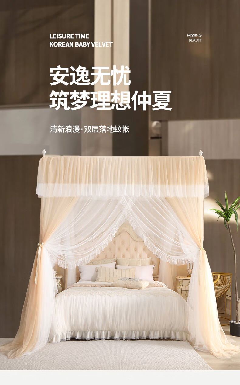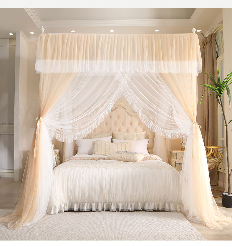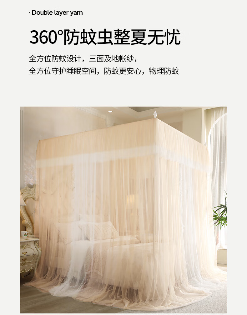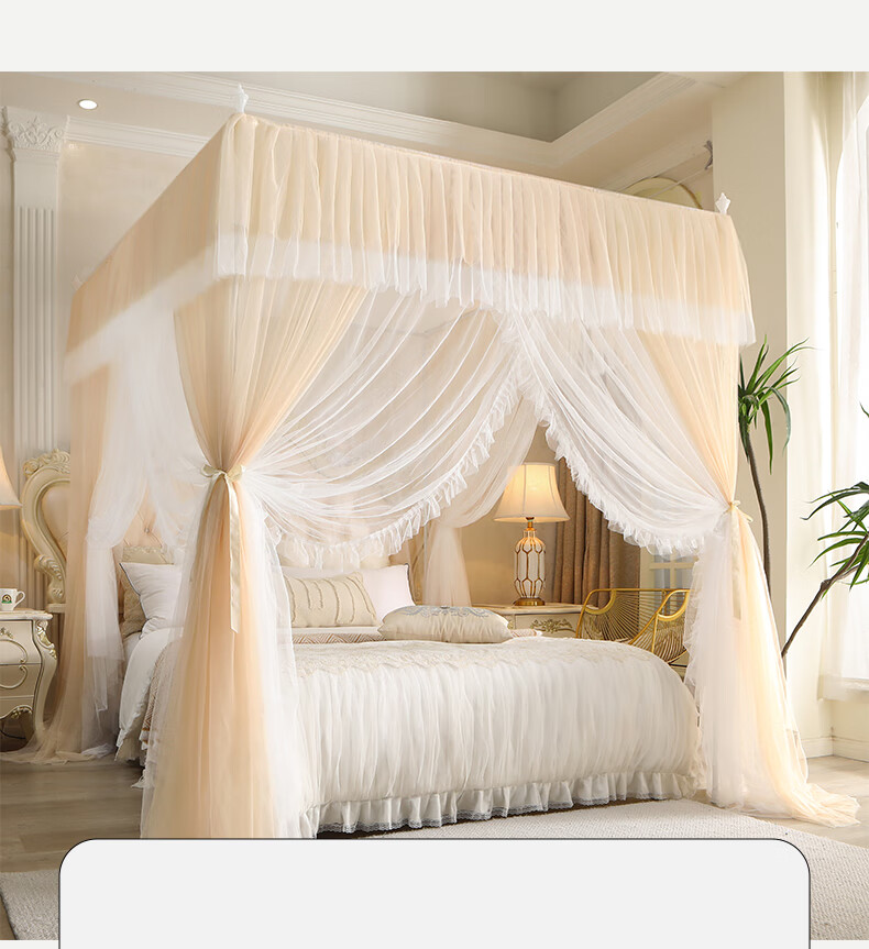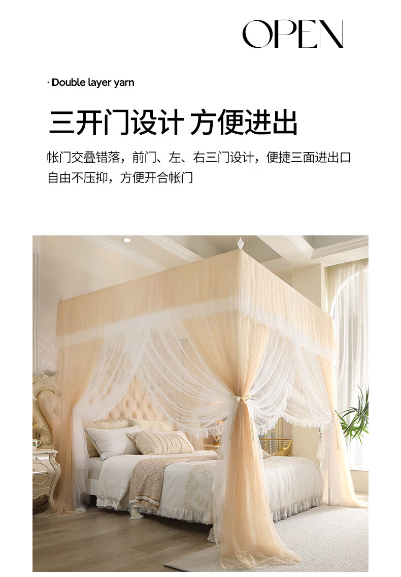 Chonglin Chu Palace floor-standing mosquito net household bedroom 2022 high-end encrypted thickened bracket three-door 2023 new single-lane yarn champagne [Class A mother and baby grade double-layer yarn] 1.8x2 bed [paint bracket + double-layer yarn]