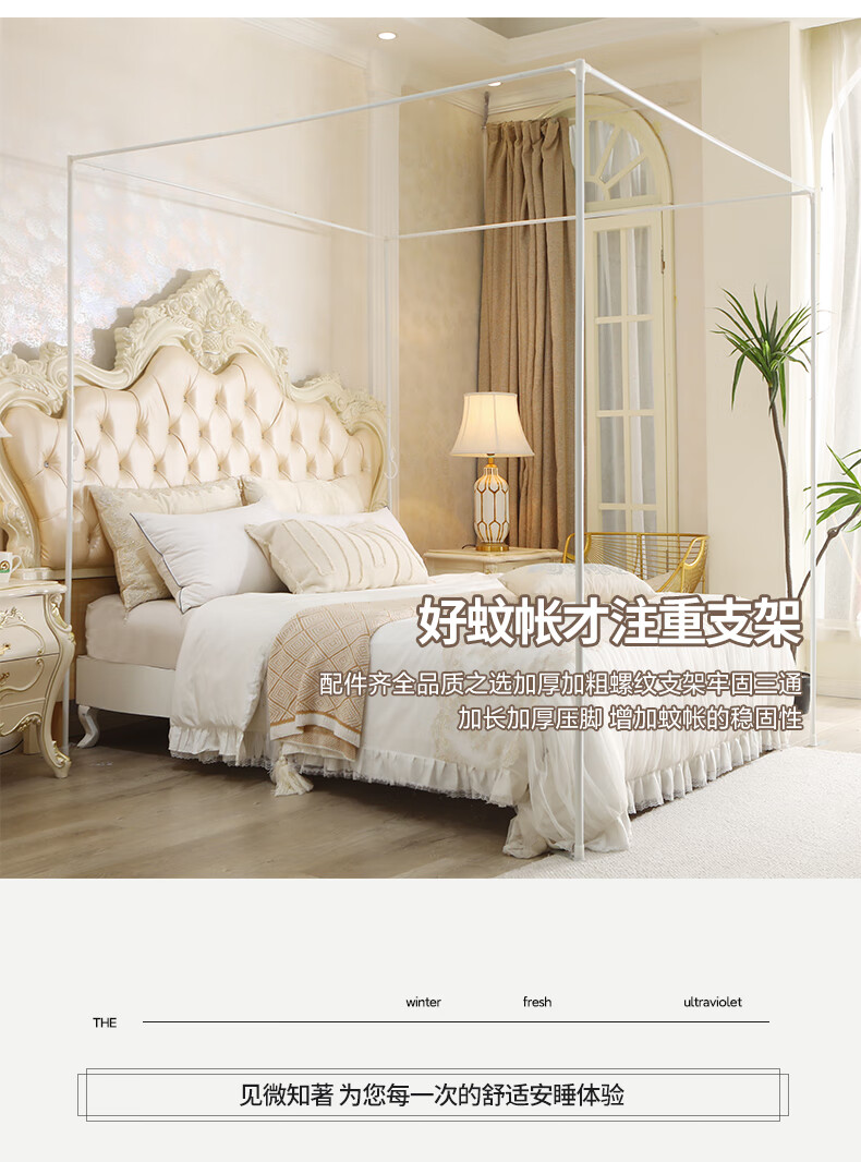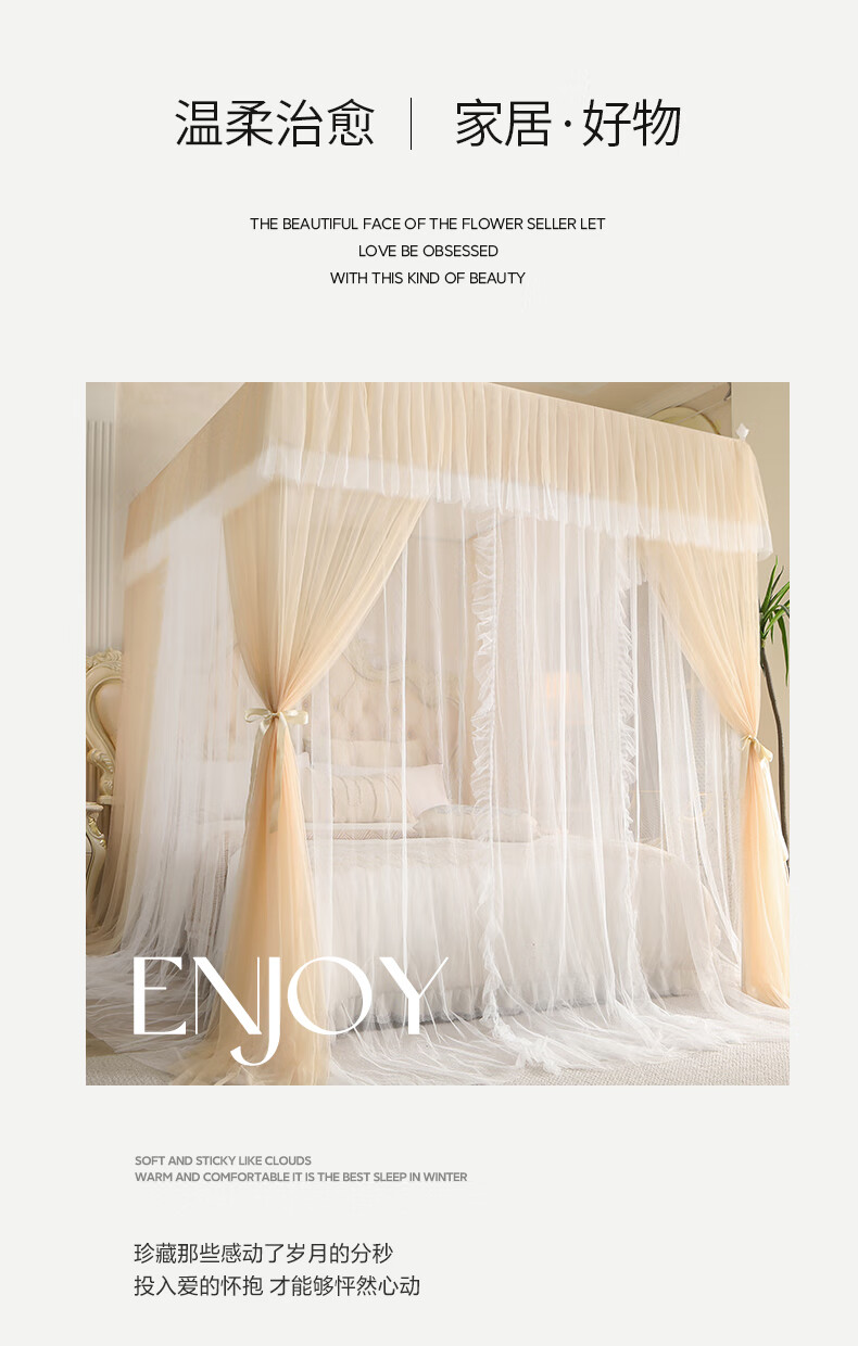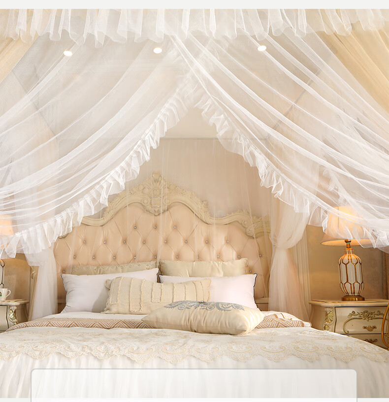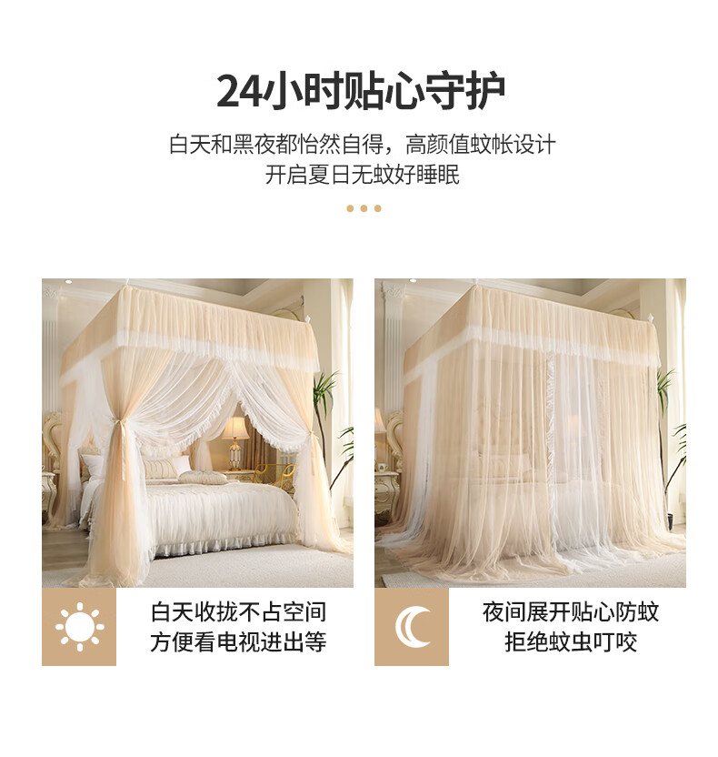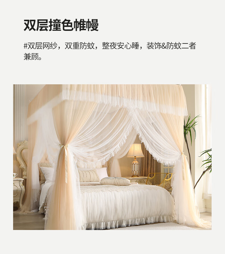 Chonglin Chu Palace floor-standing mosquito net household bedroom 2022 high-end encrypted thickened bracket three-door 2023 new single-lane yarn champagne [Class A mother and baby grade double-layer yarn] 1.8x2 bed [paint bracket + double-layer yarn]
