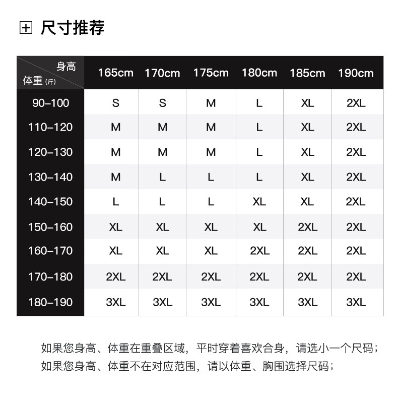 | China (cm) | 165 / 88-90 | 170 / 96-98 | 175 / 108-110 | 180 / 118-122 | 185 / 126-130 |