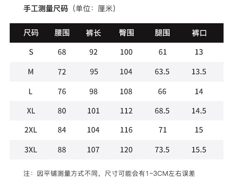 | Outseam (cm) | 99 cm | 101.5 cm | 104 cm | 106.5 cm | 109 cm |