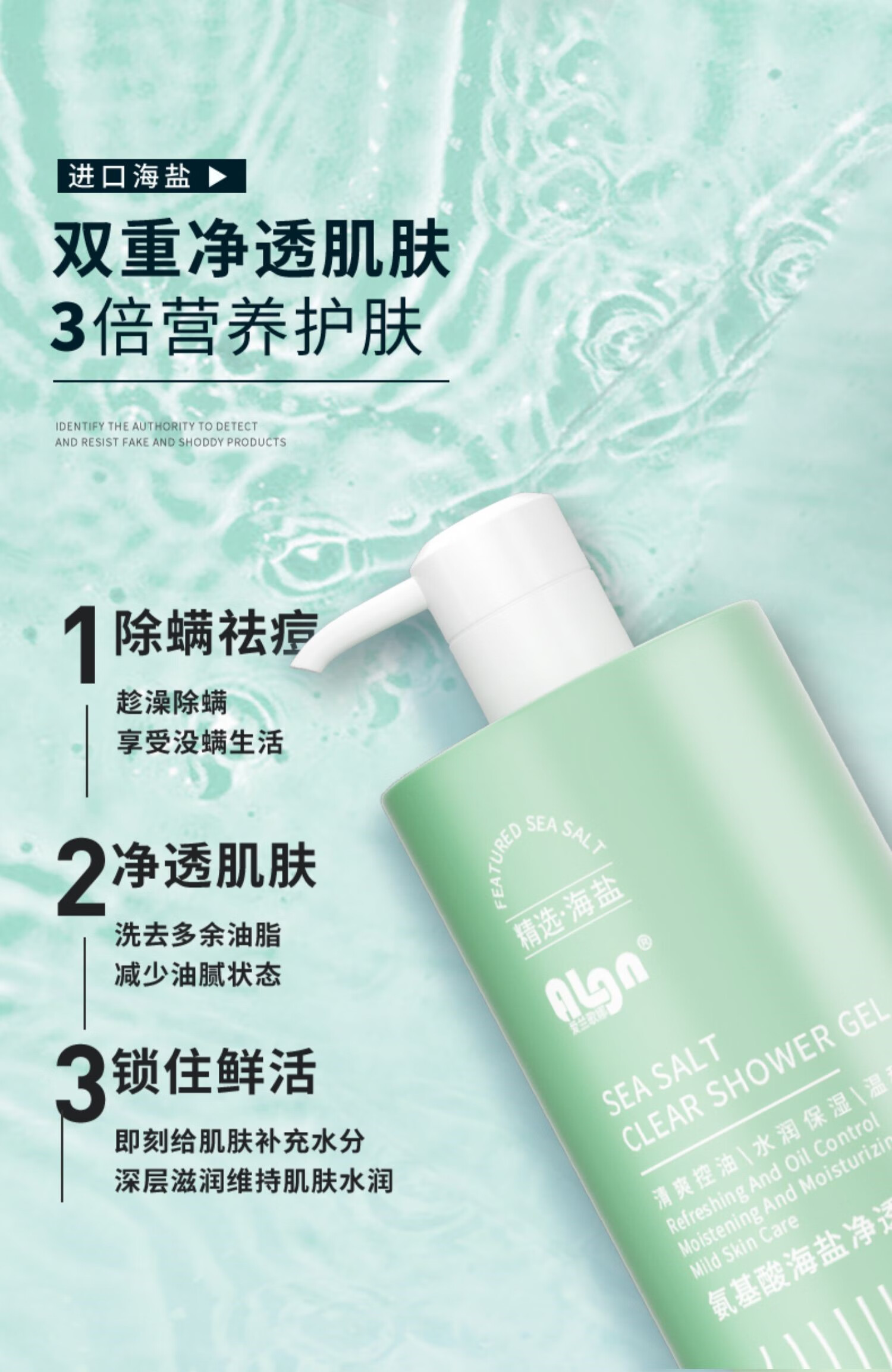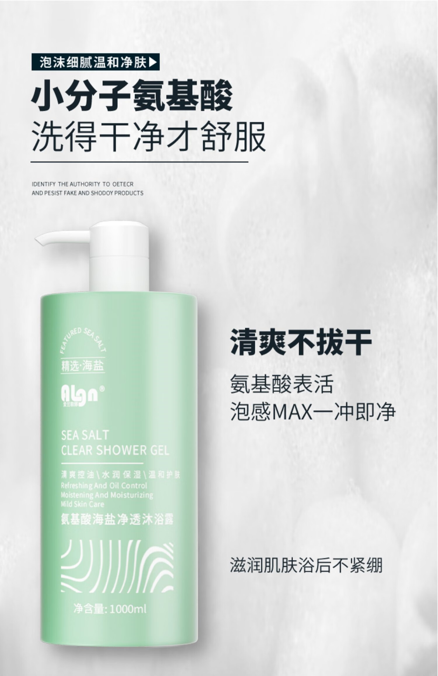 ALGN Amino Acid Purifying Shampoo 1000ml Long-lasting Fragrance Oil Control Fluffy Anti-Acne Shower Gel Set Amino Acid Sea Salt Purifying Shampoo 1 Bottle