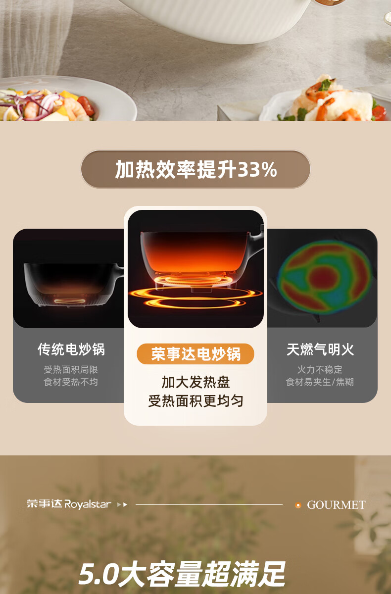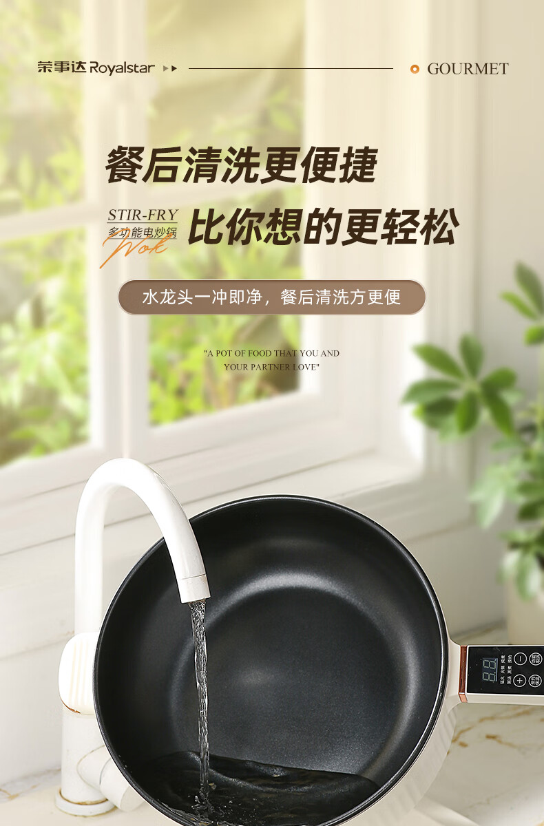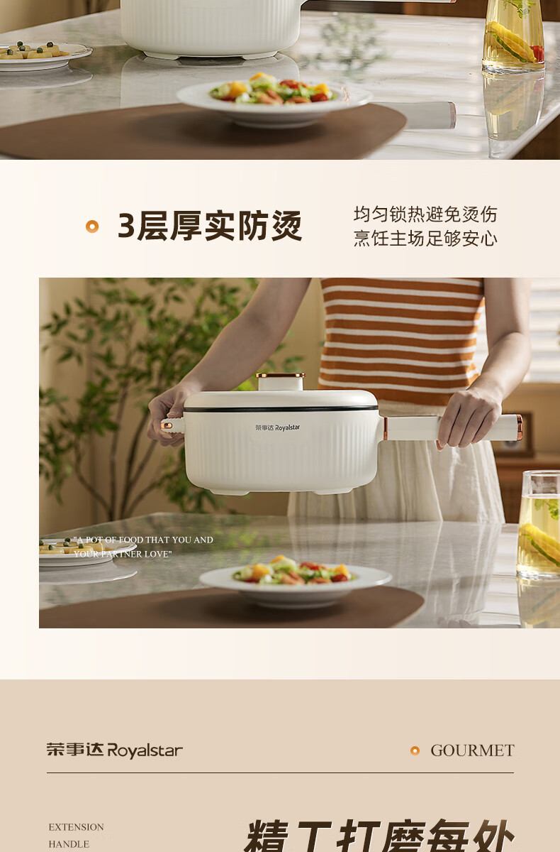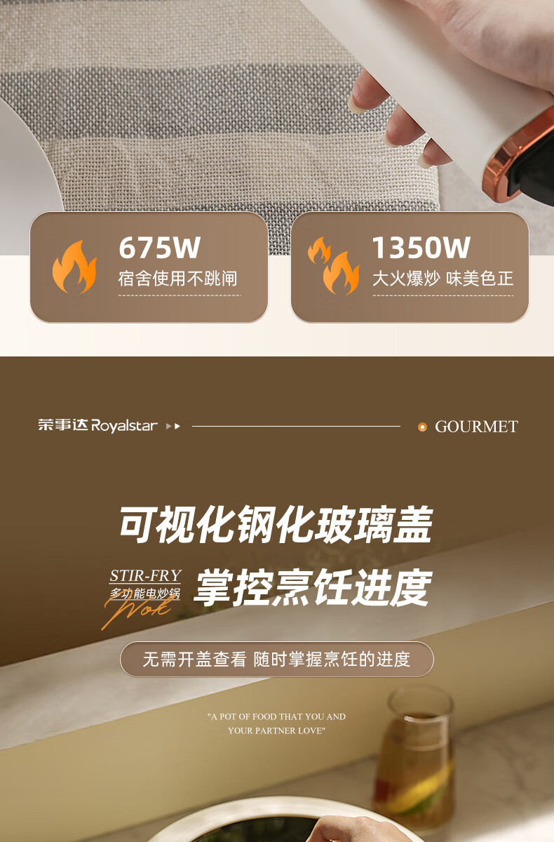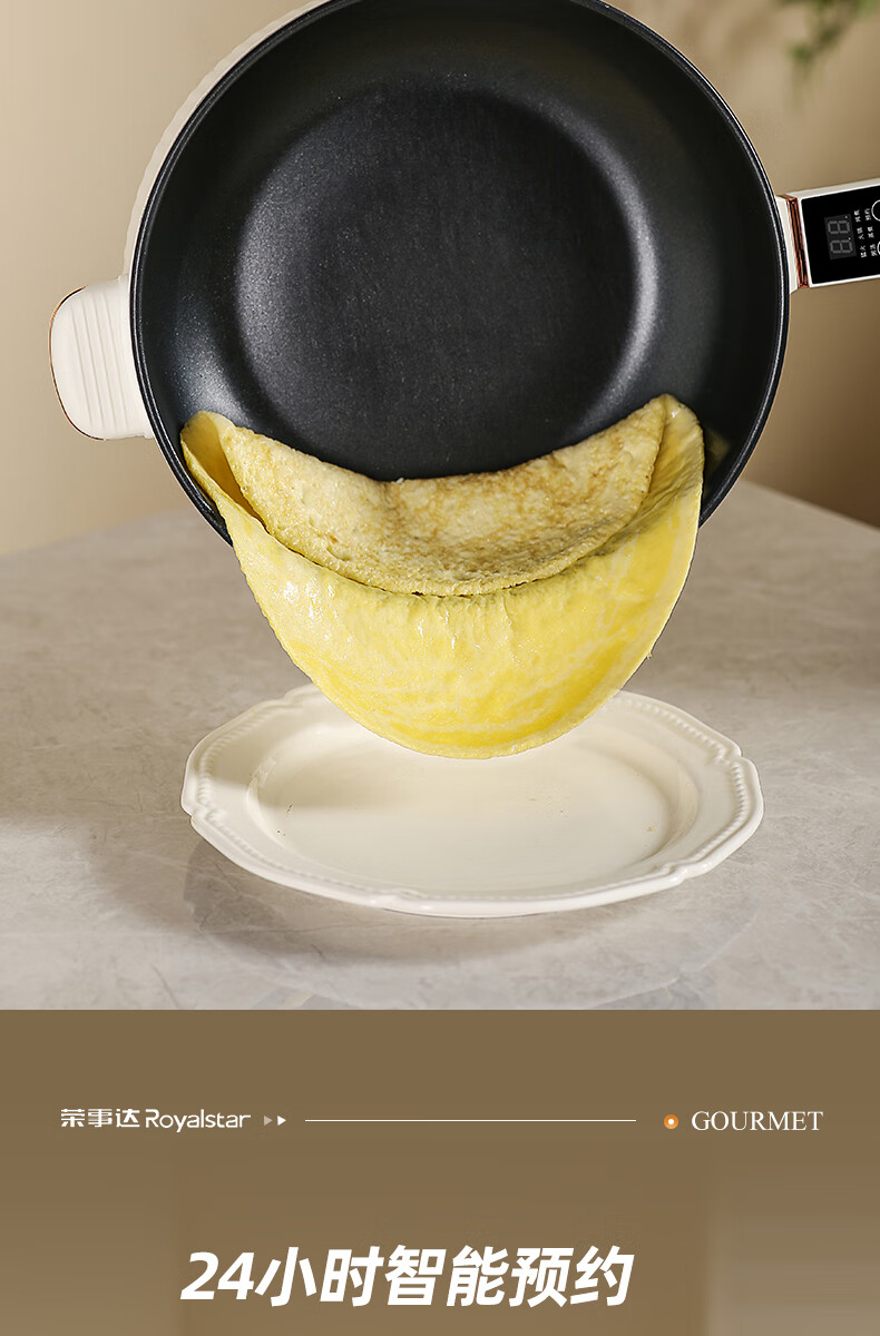 Royalstar electric wok, electric cooking pot, electric hot pot, multi-functional household electric hot pot, multi-purpose pot, one pot, multi-purpose small household appliances, steaming, frying, all-in-one cooking pot, non-stick pot, plug-in Royalstar electric wok with wooden spatula, extra thick version, 4.5L+ steamer mechanical version, for 3 to 5 people