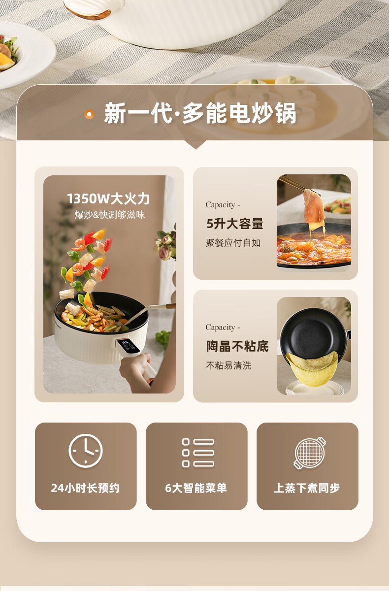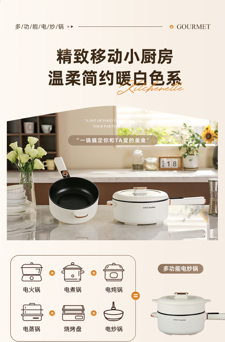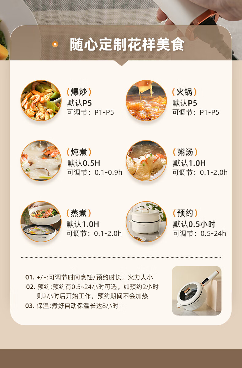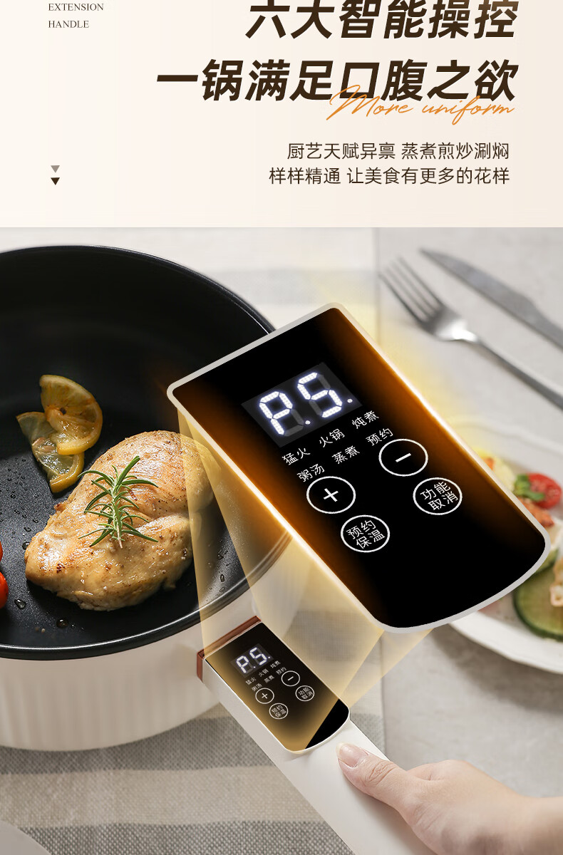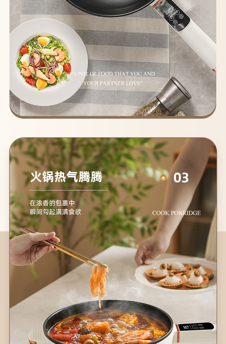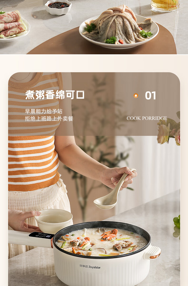 Royalstar electric wok, electric cooking pot, electric hot pot, multi-functional household electric hot pot, multi-purpose pot, one pot, multi-purpose small household appliances, steaming, frying, all-in-one cooking pot, non-stick pot, plug-in Royalstar electric wok with wooden spatula, extra thick version, 4.5L+ steamer mechanical version, for 3 to 5 people