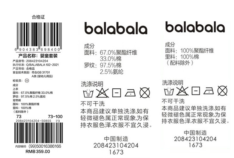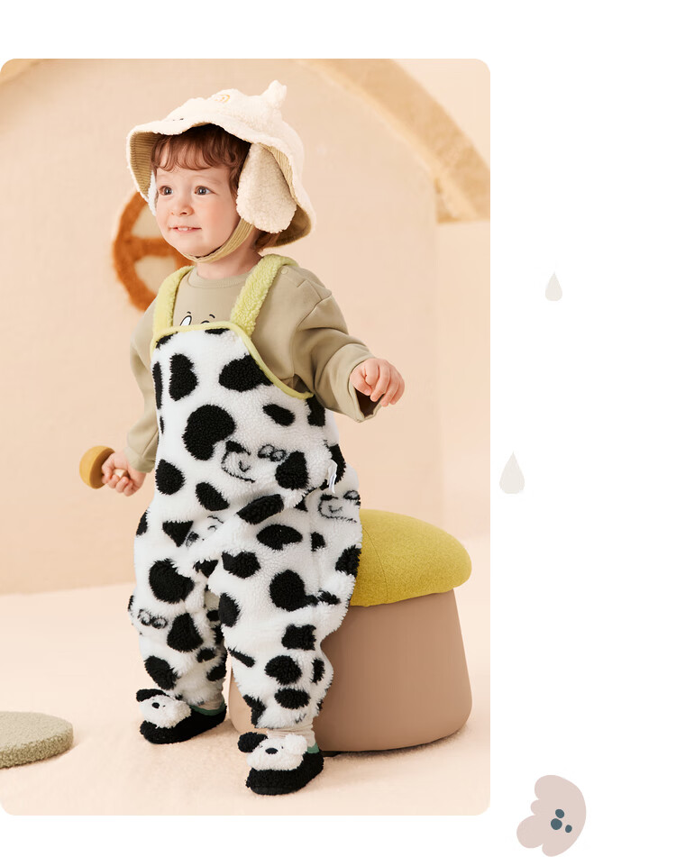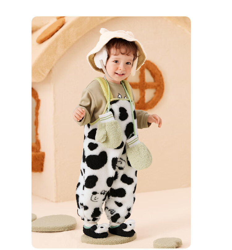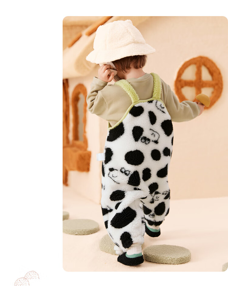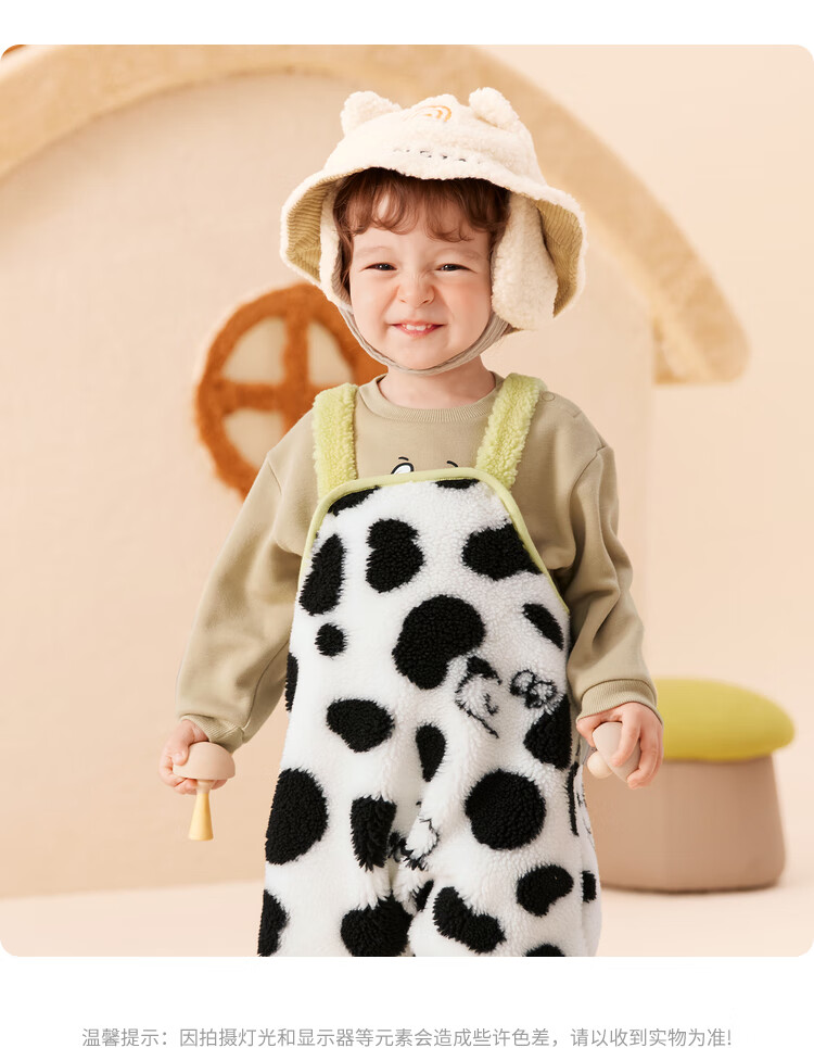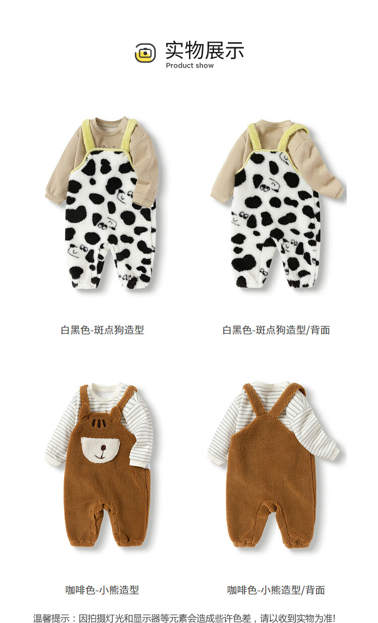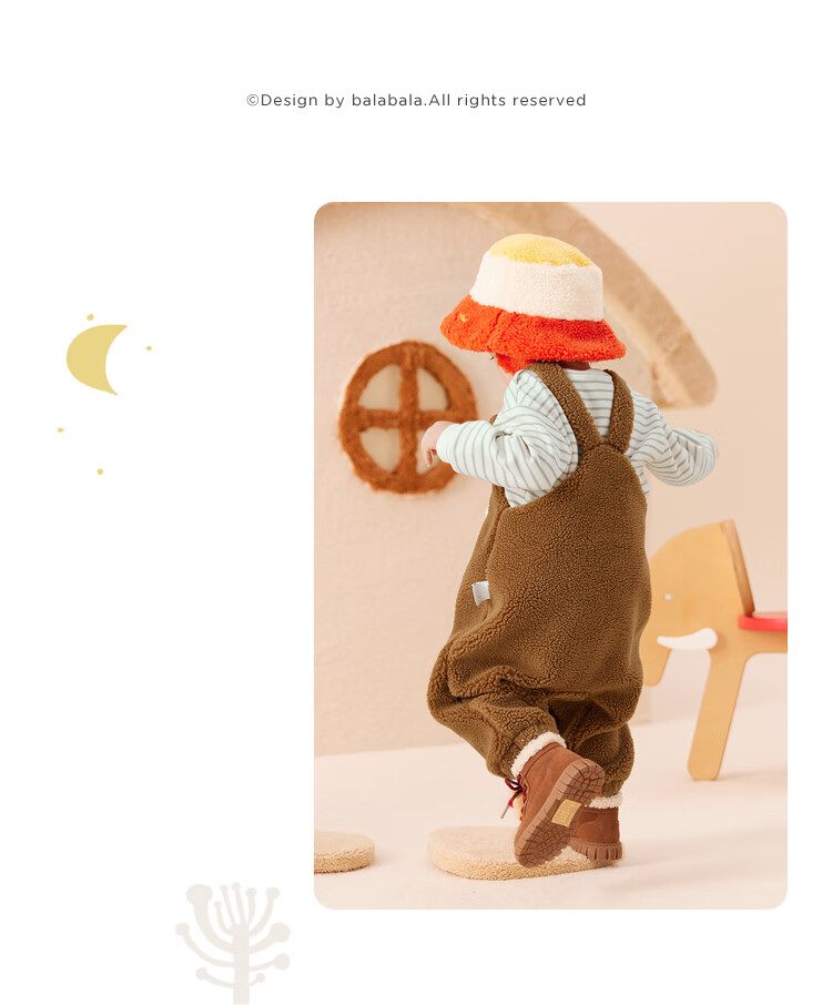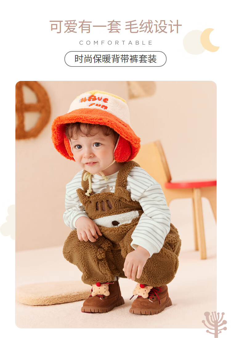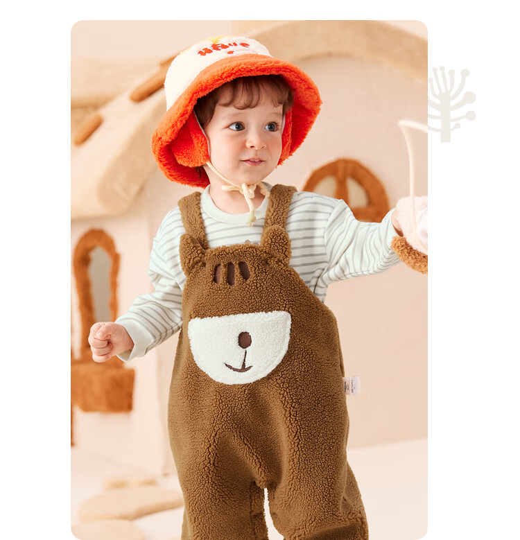 Balabala Children's Suit Boys Winter Clothes Girls Cotton Clothes Baby Overalls Two-piece Set Plus Velvet Brown-Bear Shape-50855 100