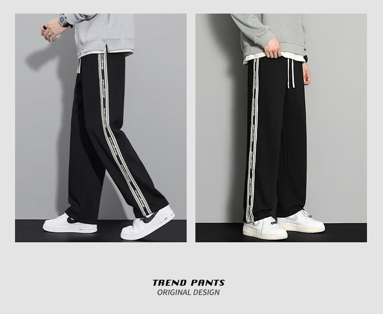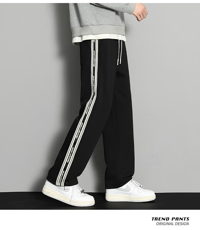AWKW casual pants for men in spring, autumn and winter, Korean style trendy sports loose large size wide leg straight nine point long pants for men TOP-854 black 4XL (recommended weight 180-200Jin Jin is equal to 0.5kg)