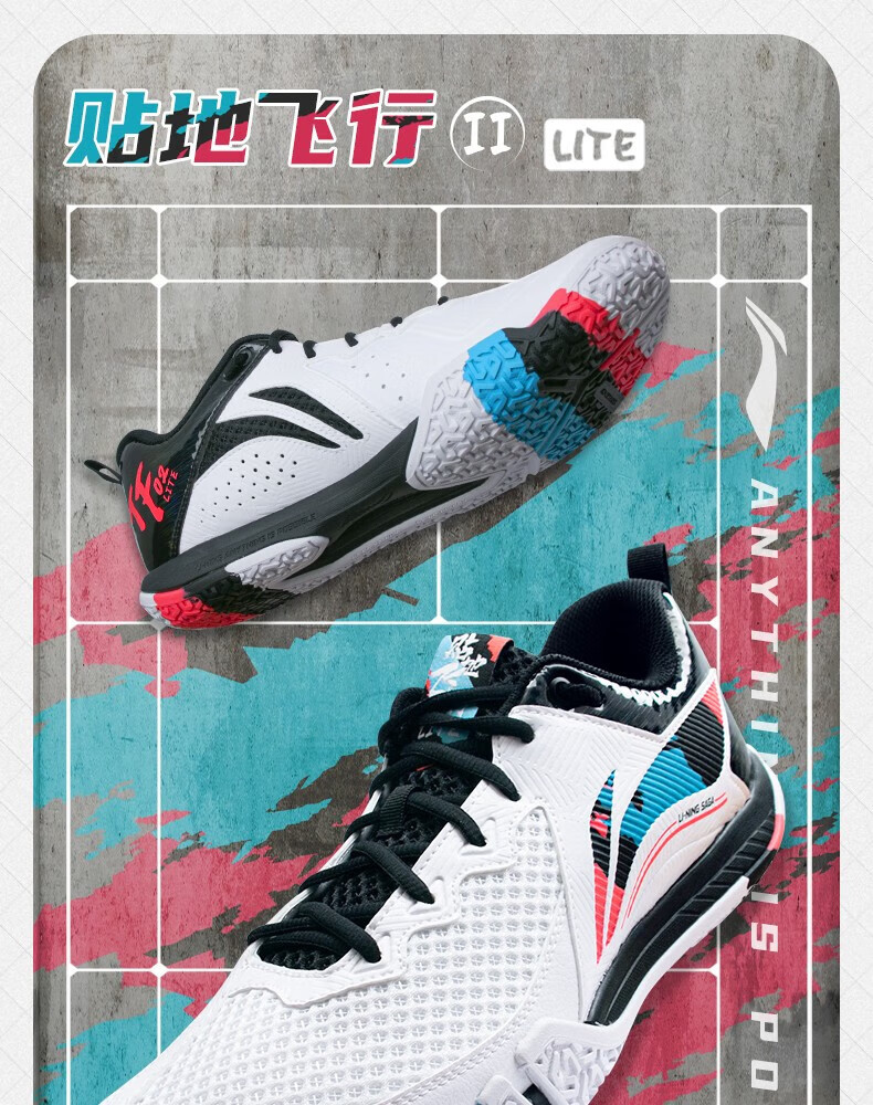 Li Ning badminton shoes ground flying 2lite badminton professional competition special sports training protective shock-absorbing badminton ground flying II LITE standard white 42