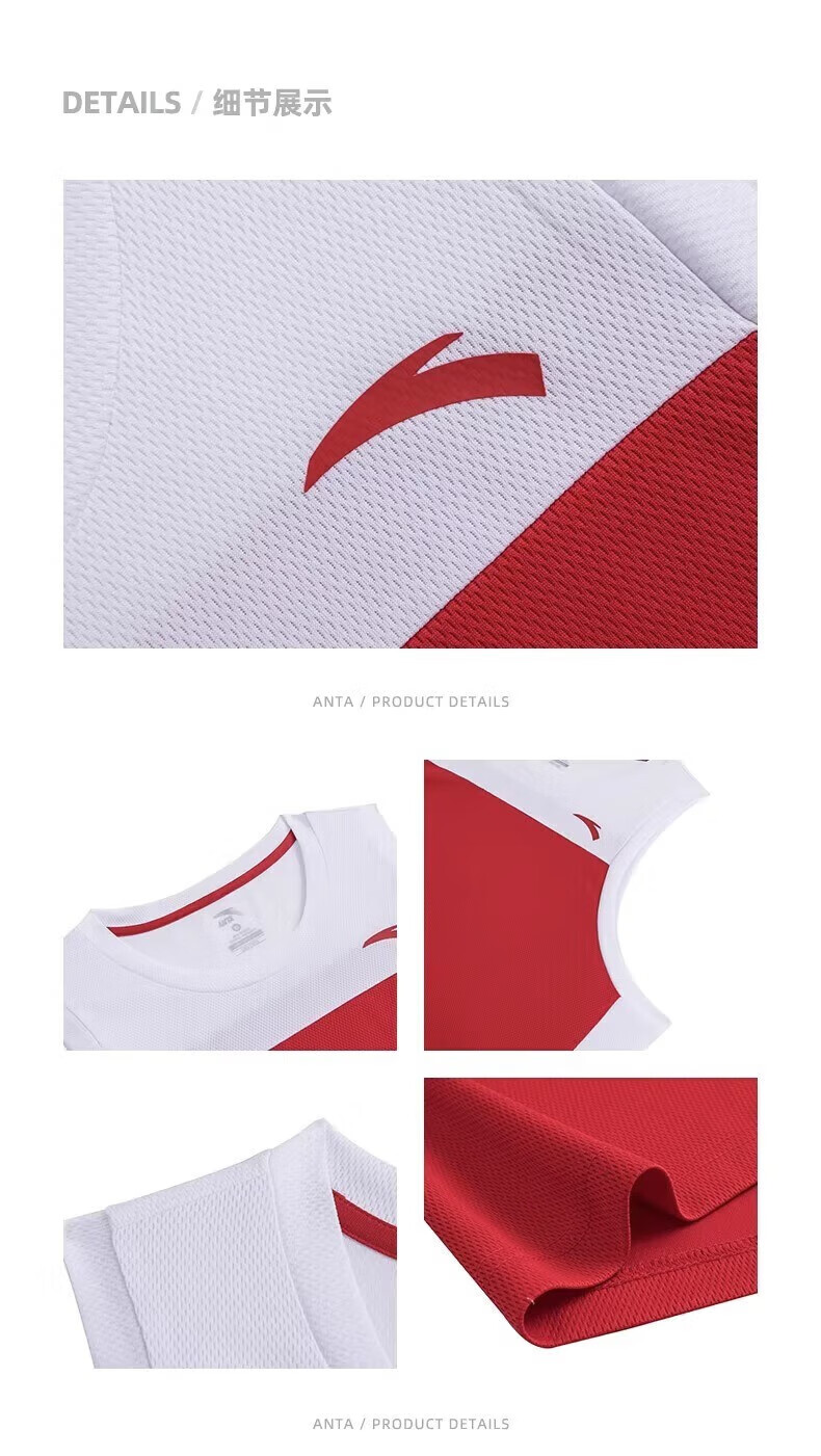 ANTA Basketball Uniform Set Custom Printed Sleeveless Vest Shorts Competition Training Fitness Quick-Drying Clothing Group Purchase Team Uniform -3 Cinnabar Red XL/180