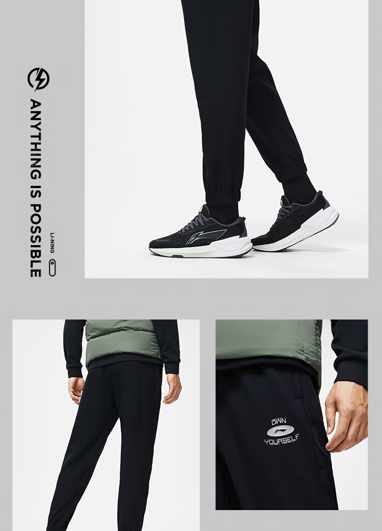 Li Ning K velvet warm windproof and water repellent sports pants men's fitness series new leggings sports pants velvet black-1 M