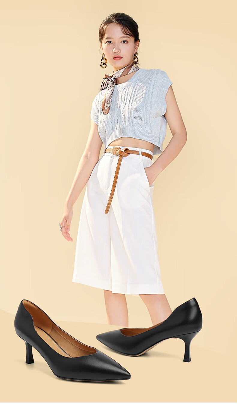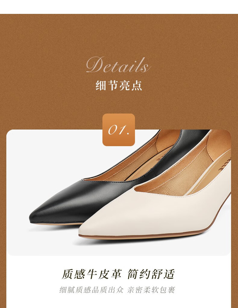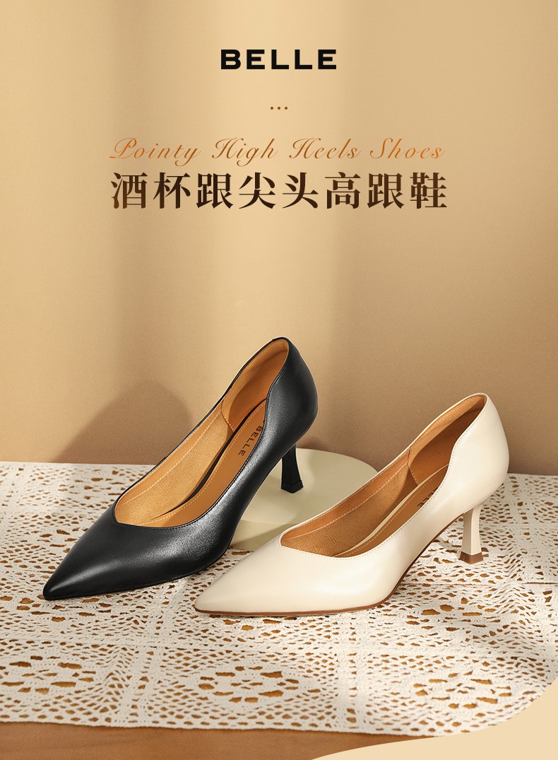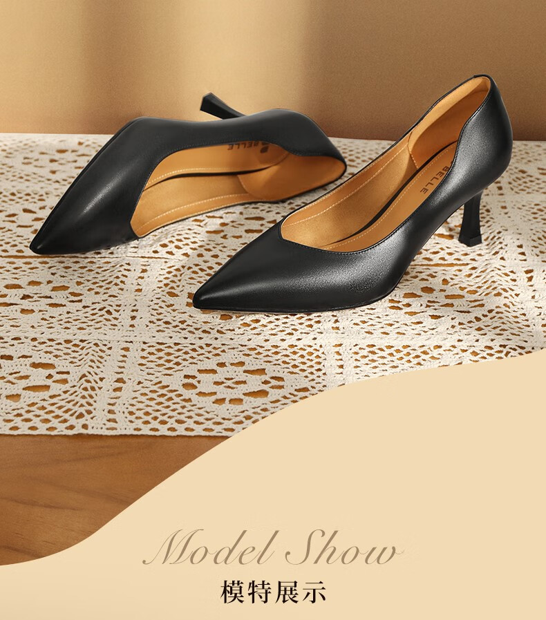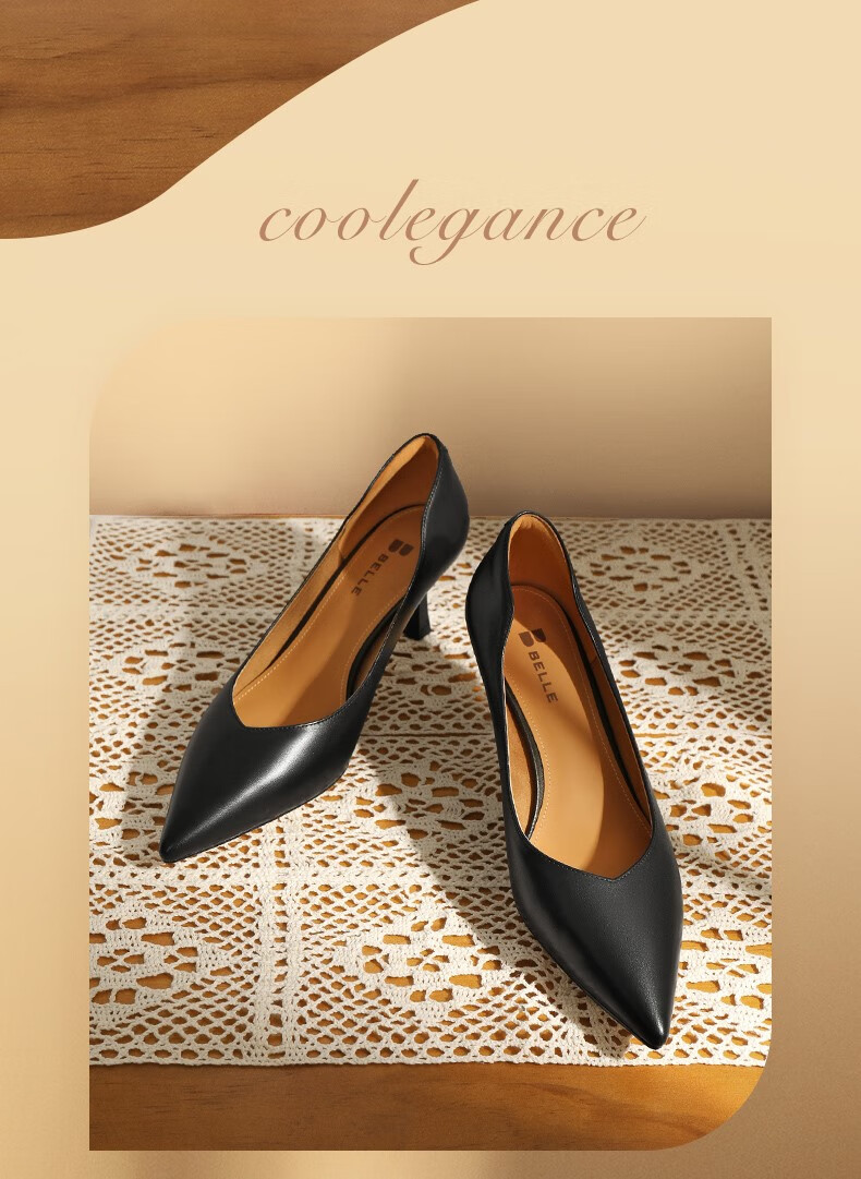 Belle Pointed Toe High Heels Women's Shopping Mall Same Style Ol Style Commuting Leather Shoes 3DY16CQ2 Off the Shelves Black 38