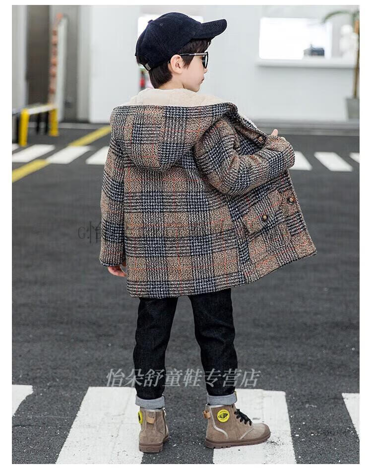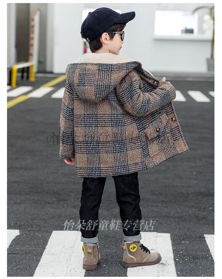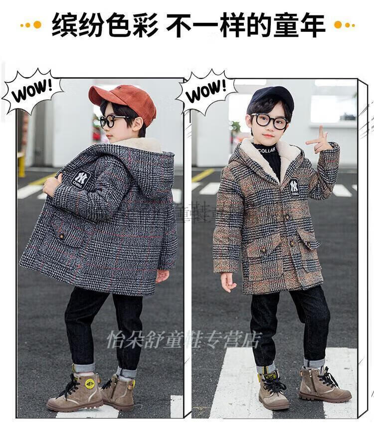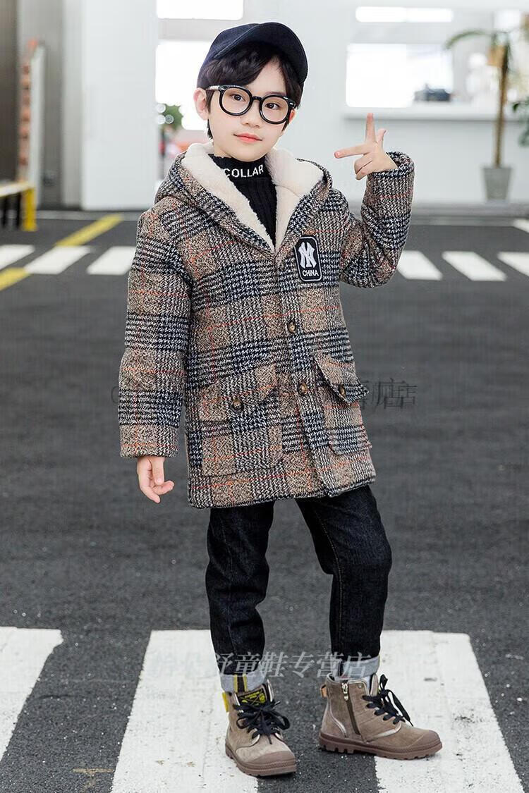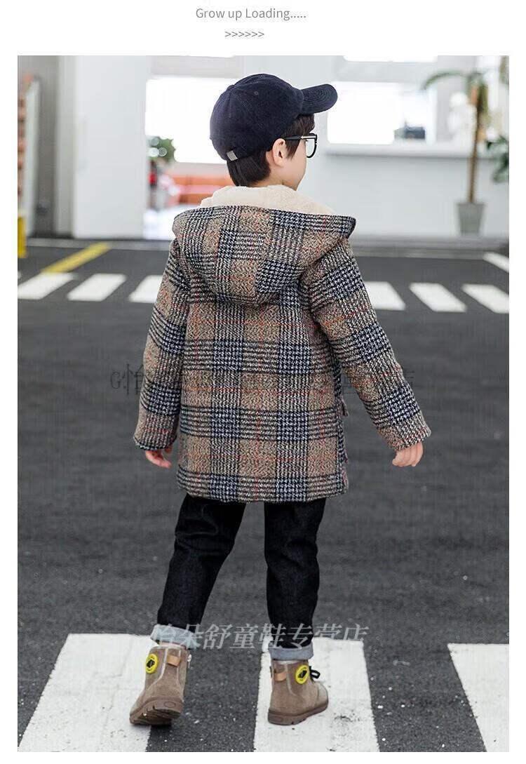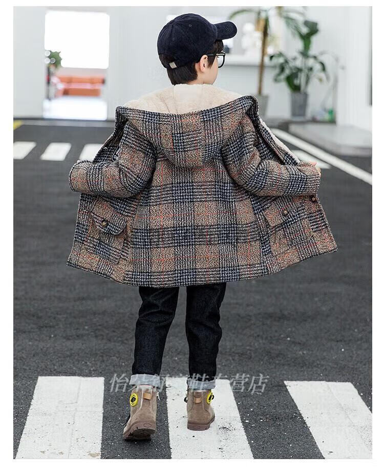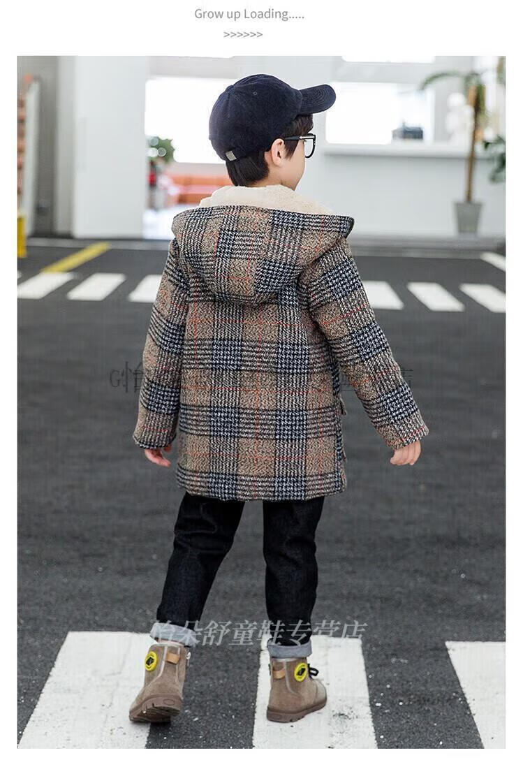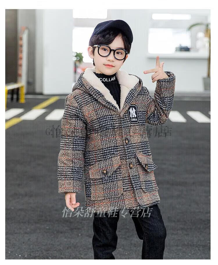 G.DUCKKIDS Children's Clothing Boys' Jackets Autumn and Winter Plush Children's Woolen Coats Mid-Length Thickened Boys' Winter Hooded Tops Khaki Size 160 Recommended Height 150-160cm 12-13 Years Old