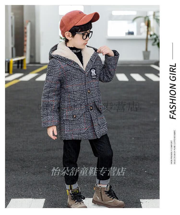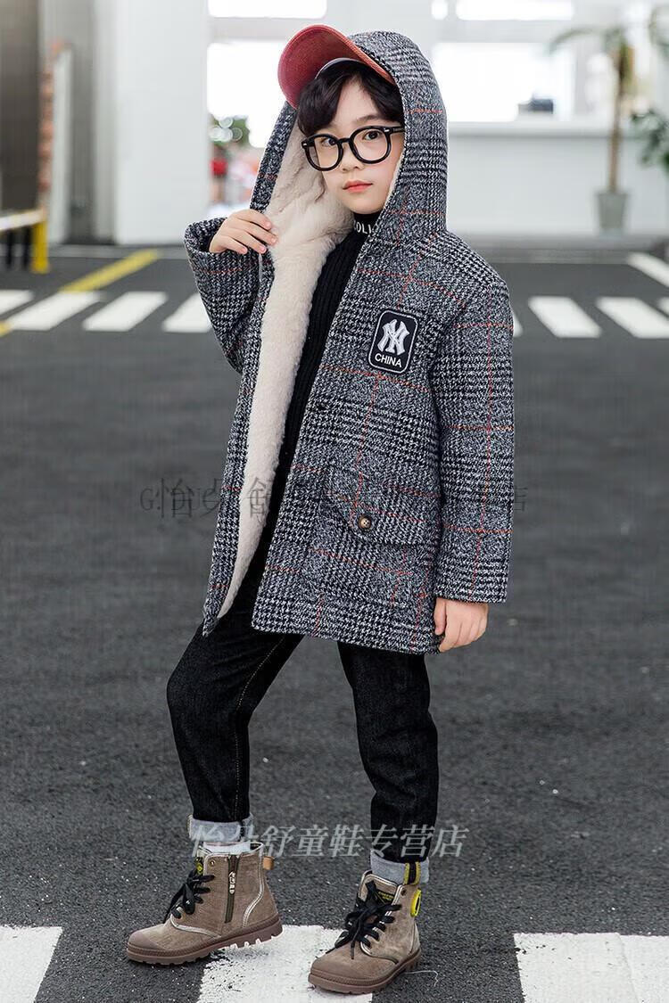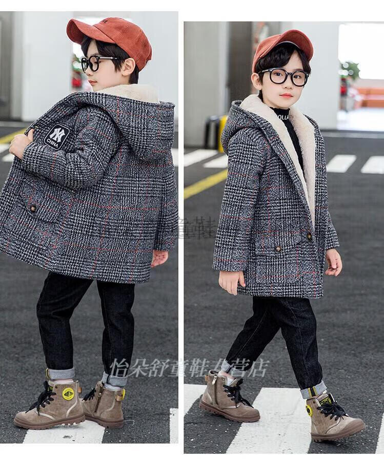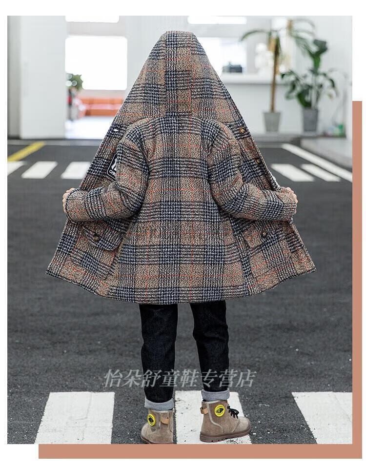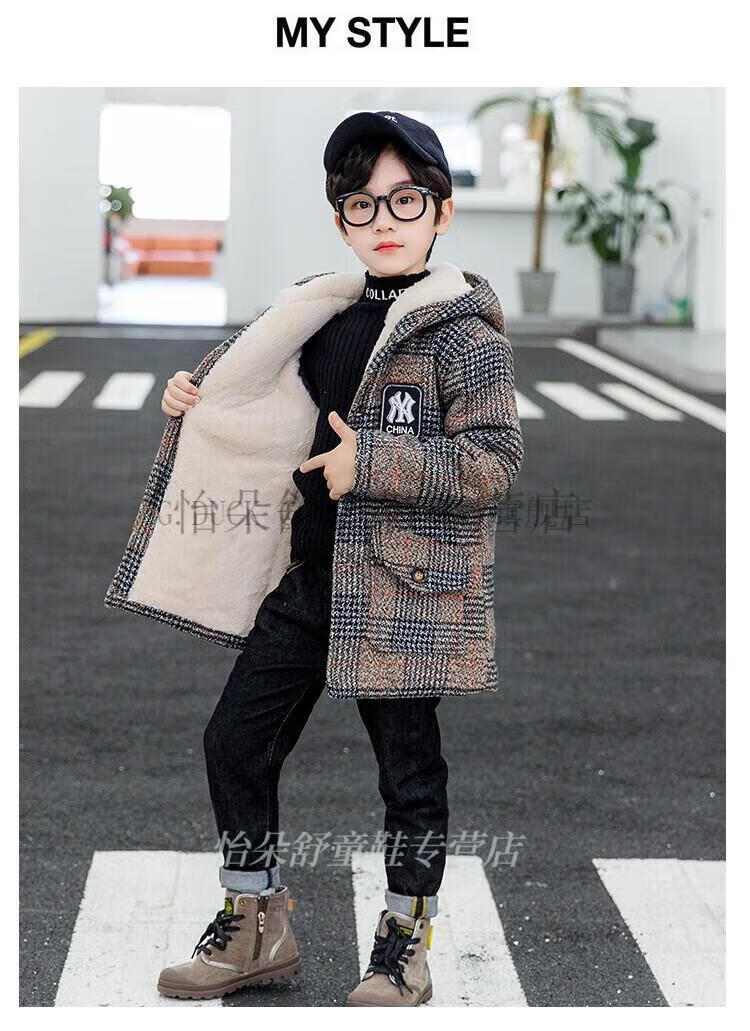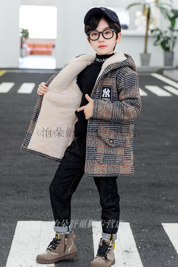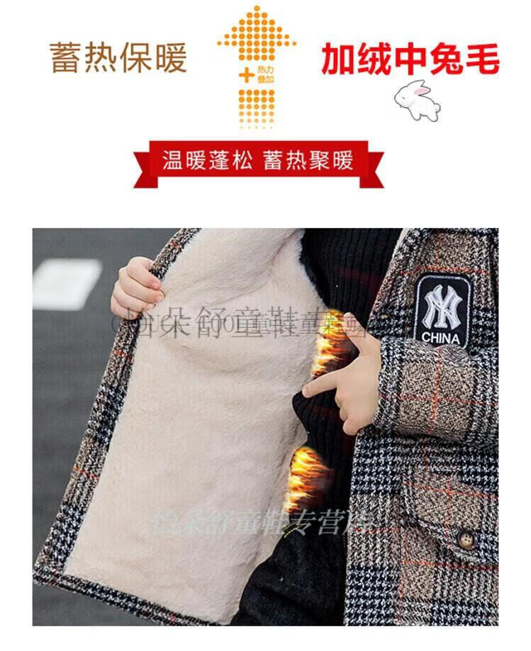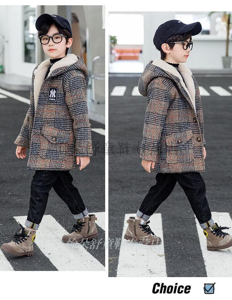 G.DUCKKIDS Children's Clothing Boys' Jackets Autumn and Winter Plush Children's Woolen Coats Mid-Length Thickened Boys' Winter Hooded Tops Khaki Size 160 Recommended Height 150-160cm 12-13 Years Old
