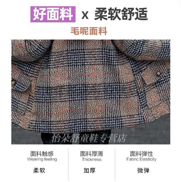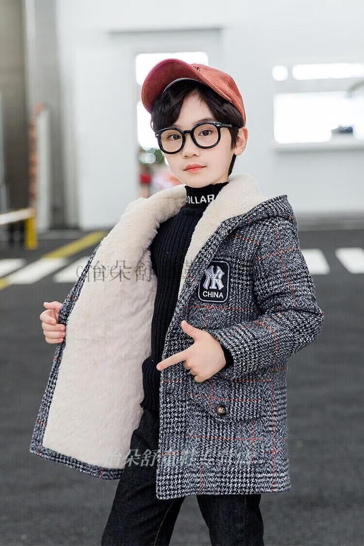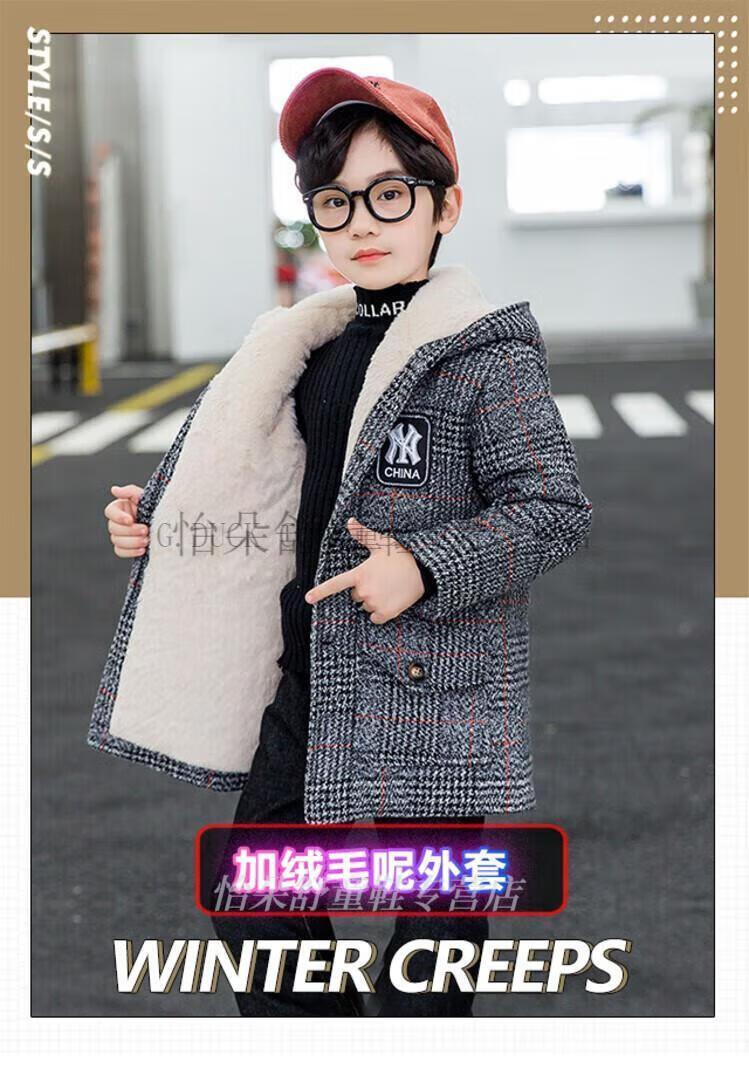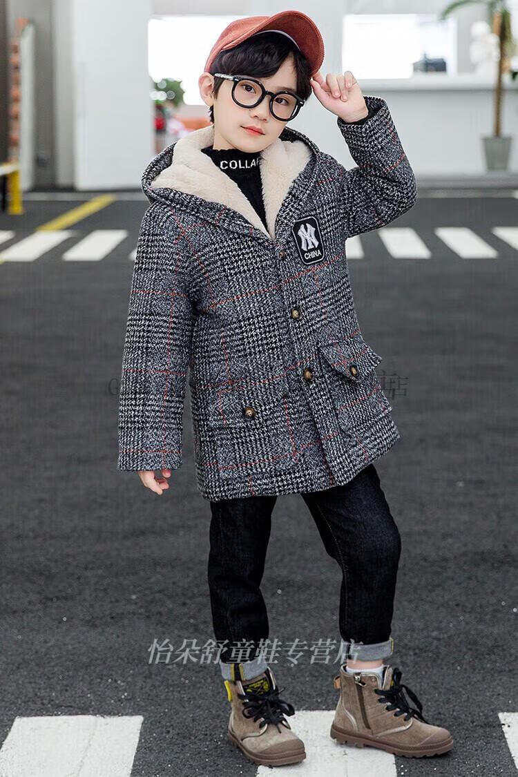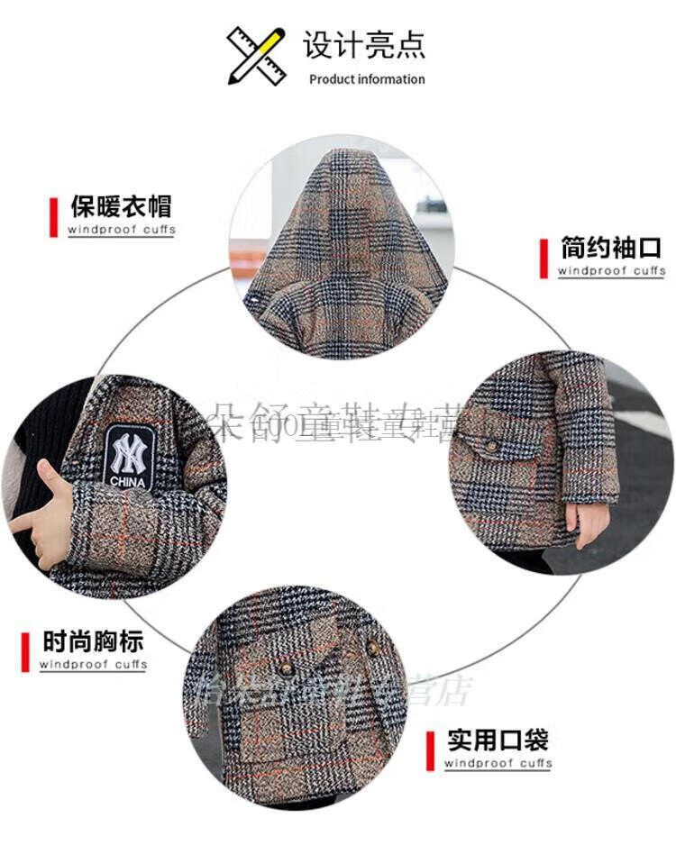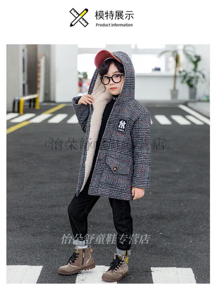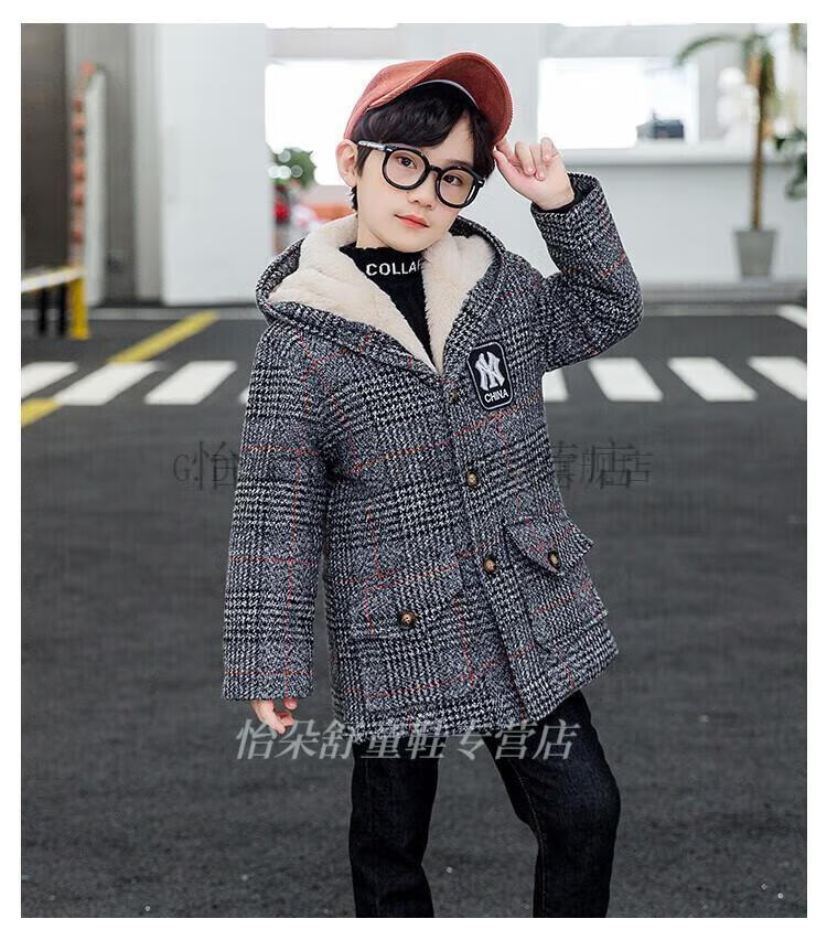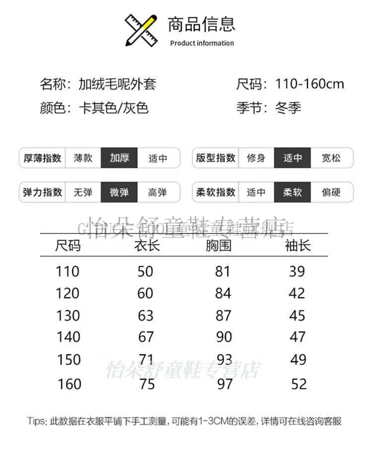 G.DUCKKIDS Children's Clothing Boys' Jackets Autumn and Winter Plush Children's Woolen Coats Mid-Length Thickened Boys' Winter Hooded Tops Khaki Size 160 Recommended Height 150-160cm 12-13 Years Old