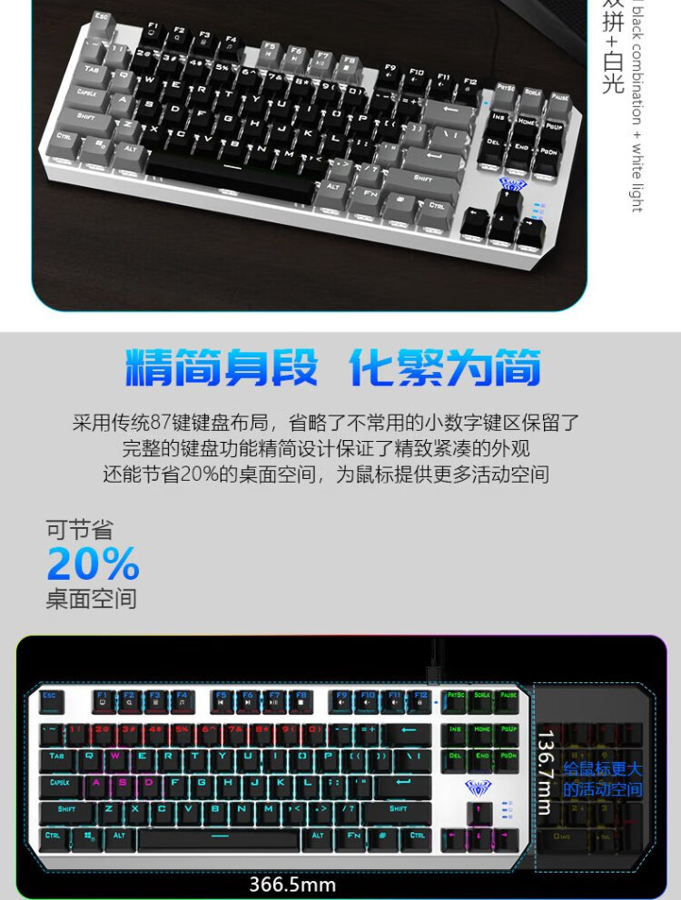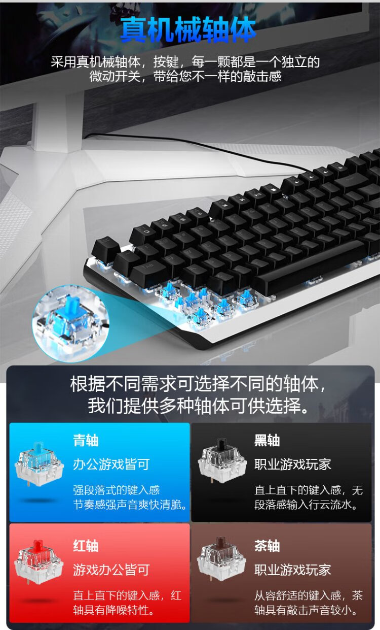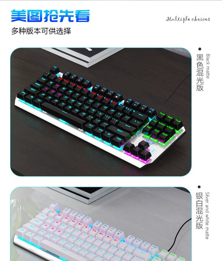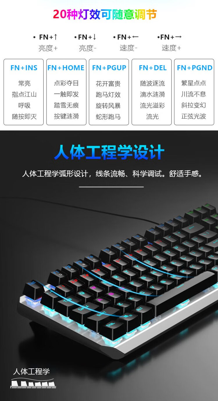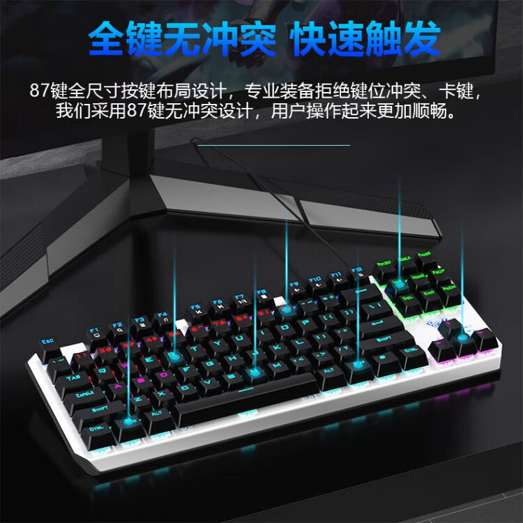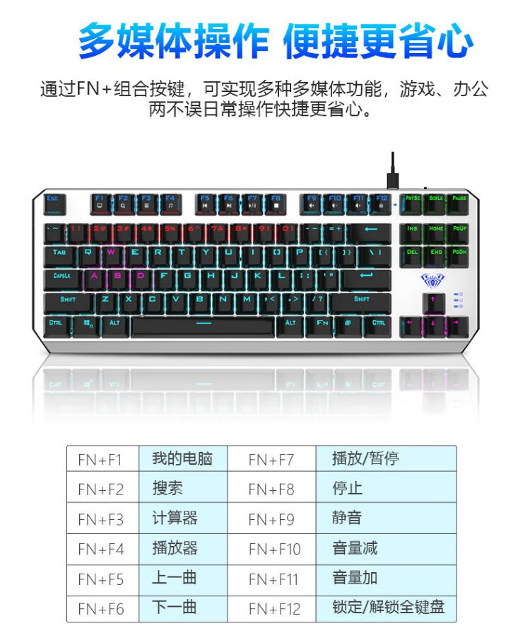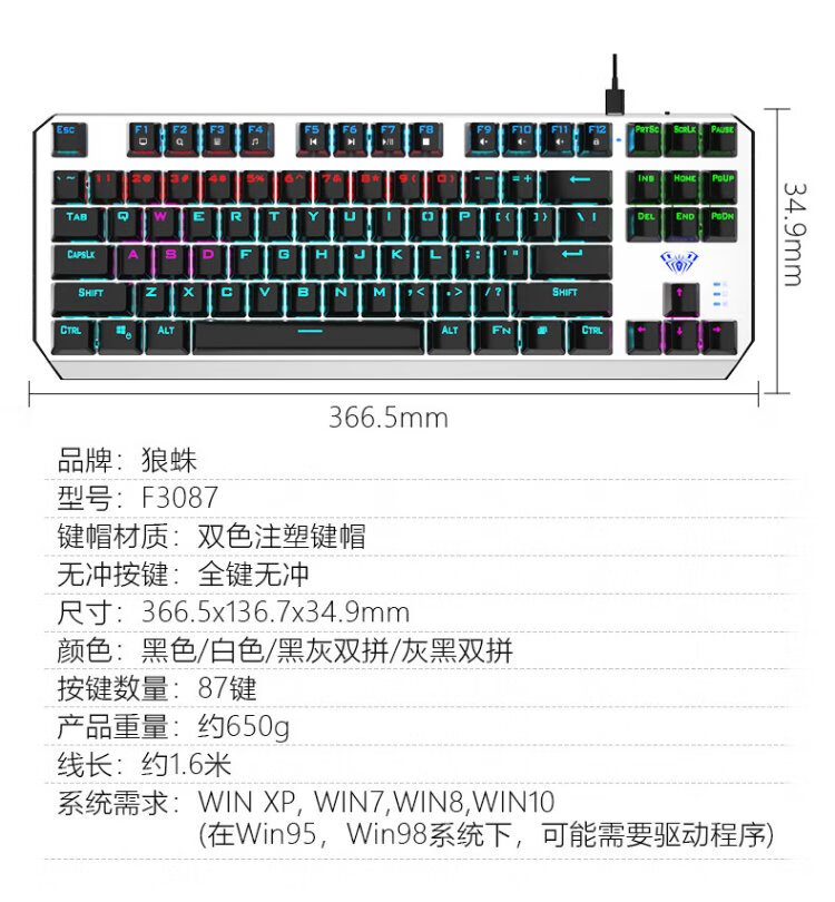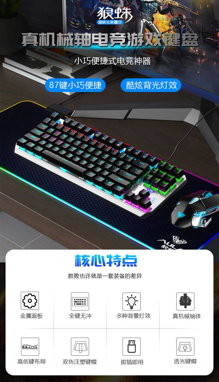Wolf Spider (AULA) F3087 mechanical keyboard 87 keys green black tea red axis wired e-sports game office laptop keyboard seamless wired keyboard-black axis