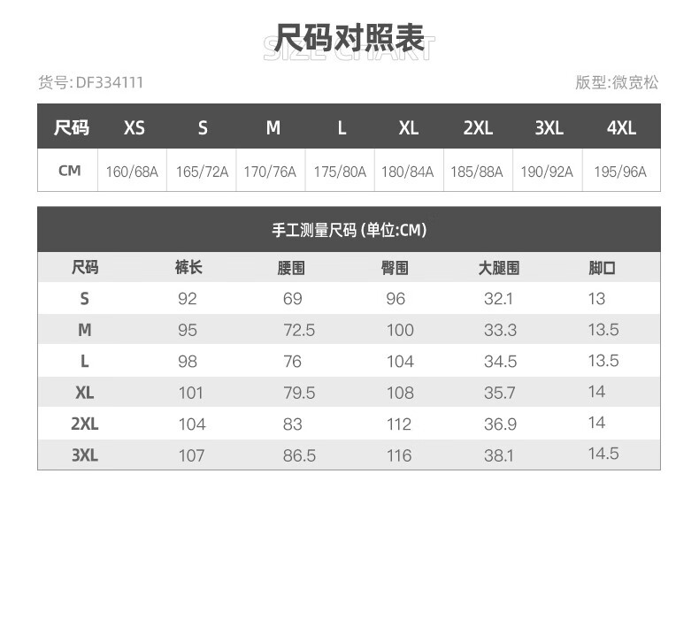 China (cm) 160-165/84-86 165-170 / 88-90 167-172 / 92-96 168-173 / 98-102 170-176 / 106-110