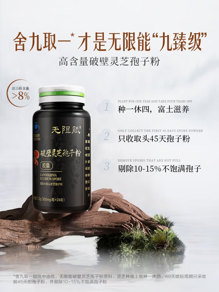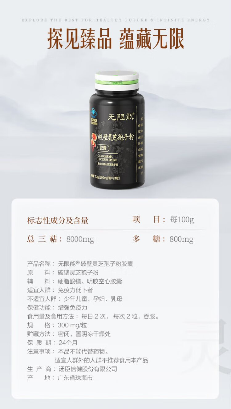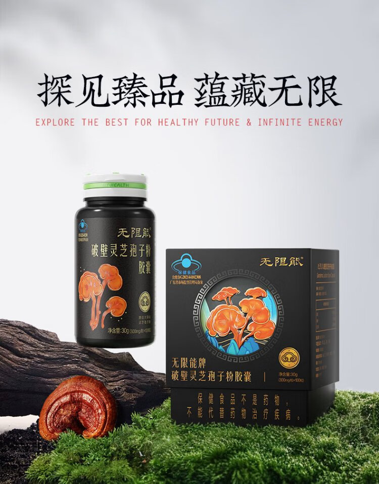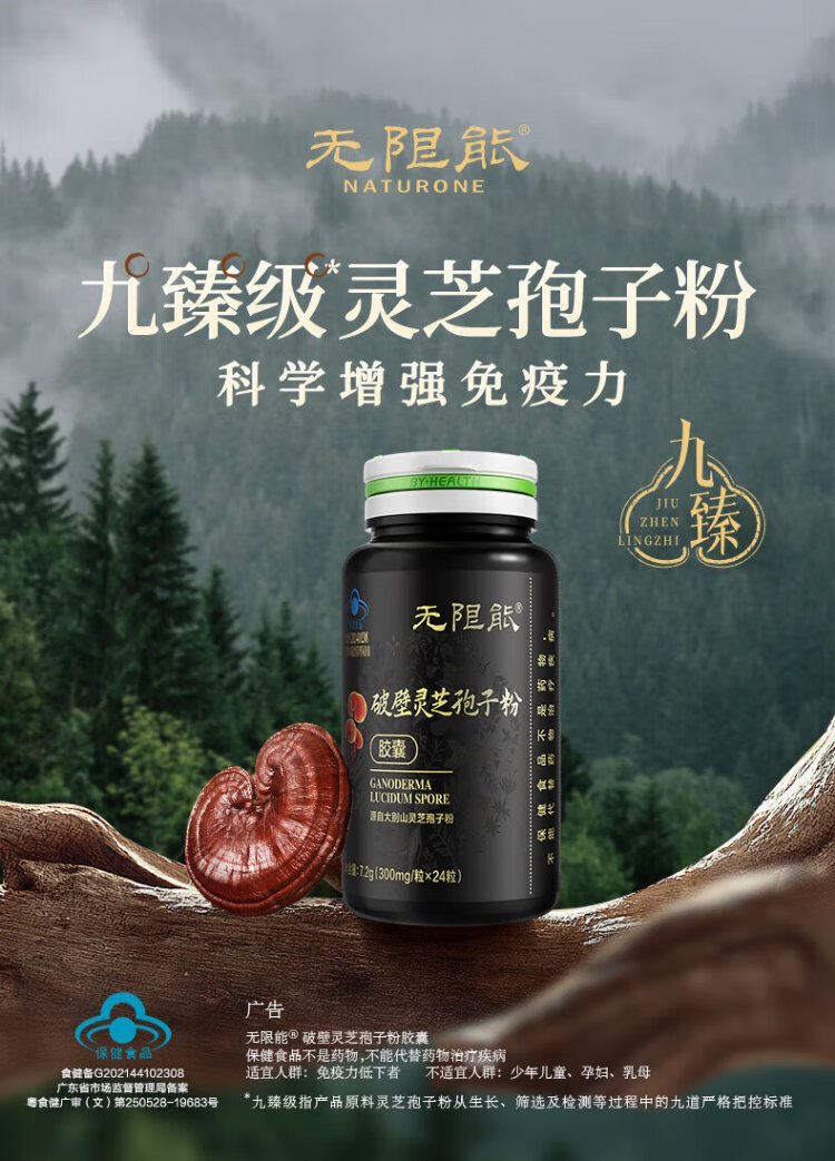 无限能破壁灵芝孢子粉胶囊术后恢复营养保健品中老年人提高免疫力抵抗力 【25天量】孢子粉胶囊100粒