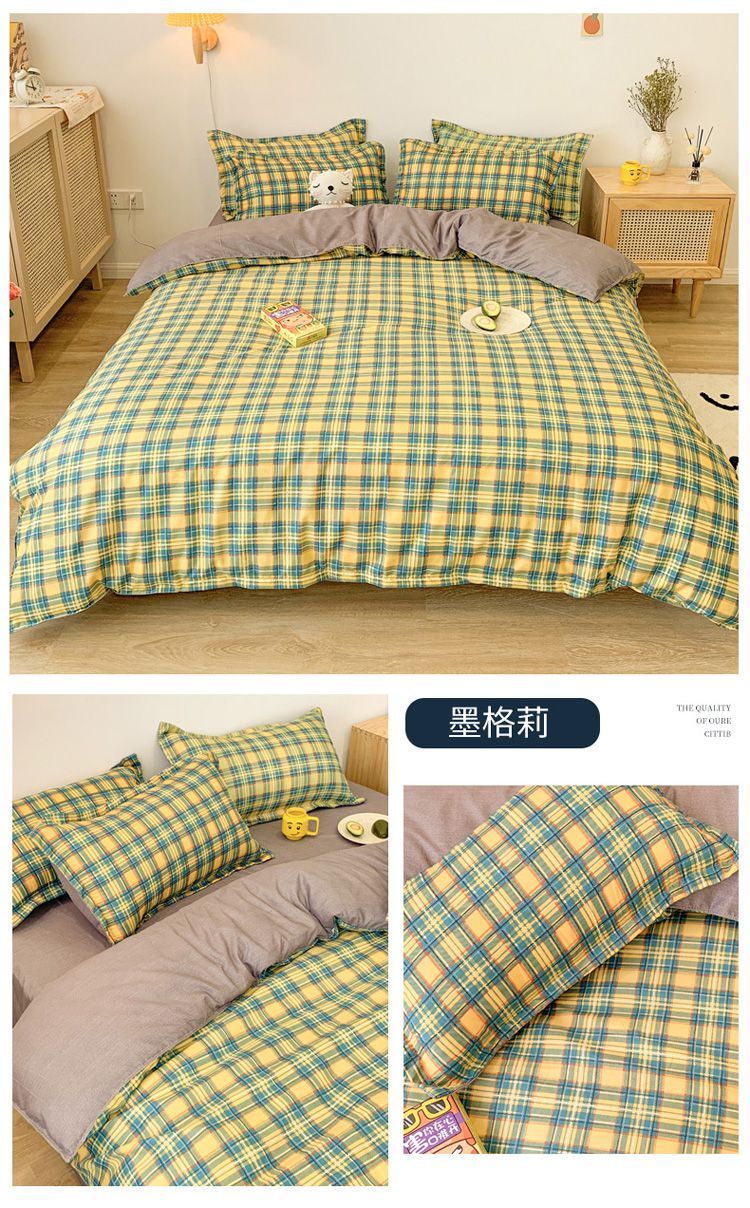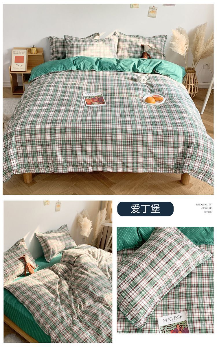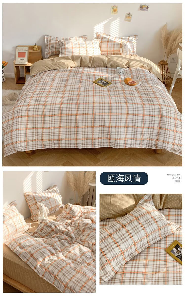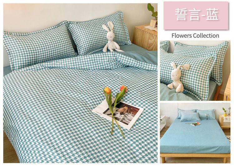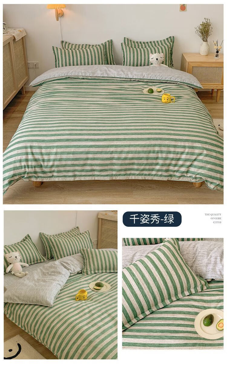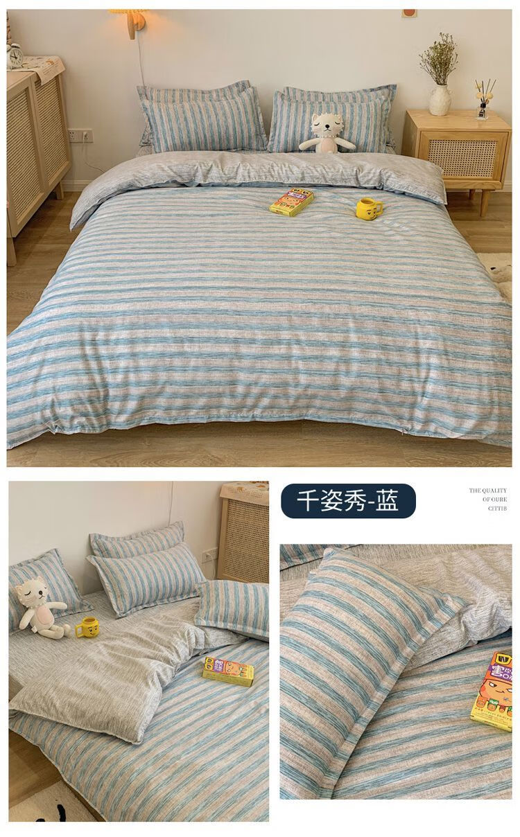Japanese simple striped plaid bed solid color four-piece male student dormitory single bed quilt cover Pledge-Blue 1.5m four-piece quilt cover 150*200