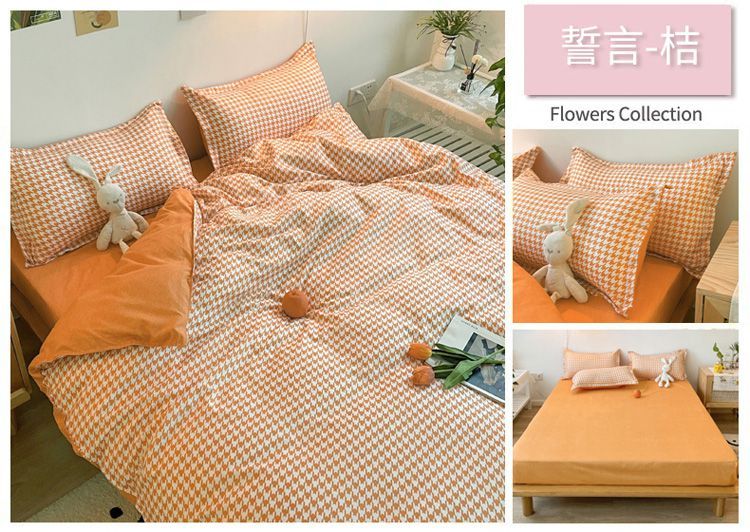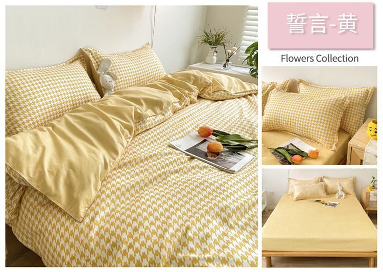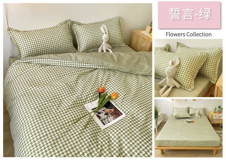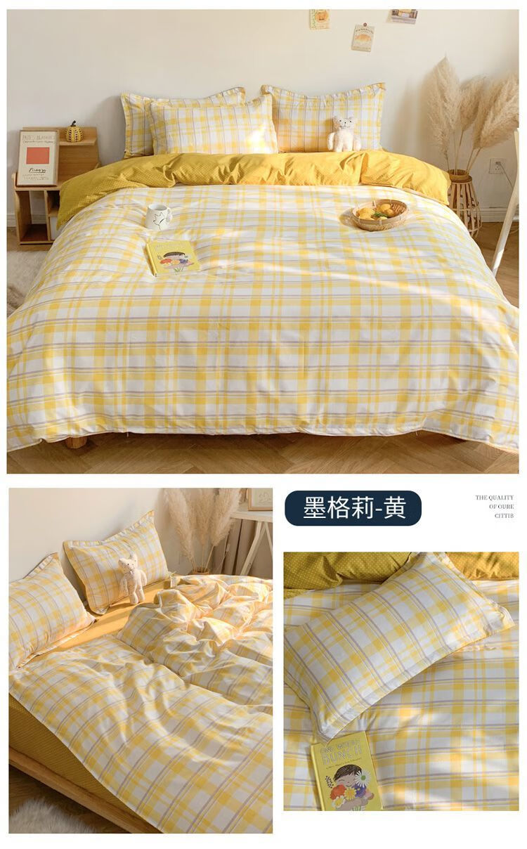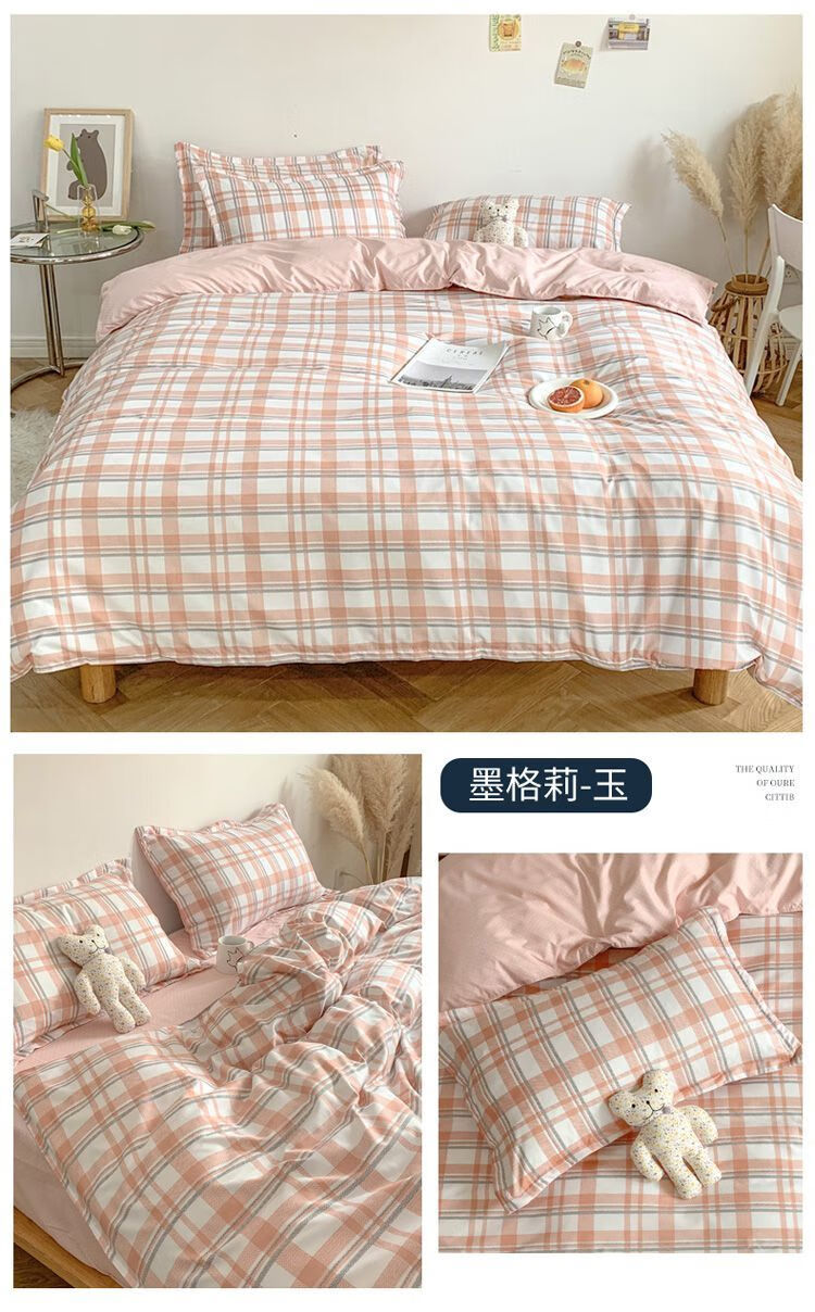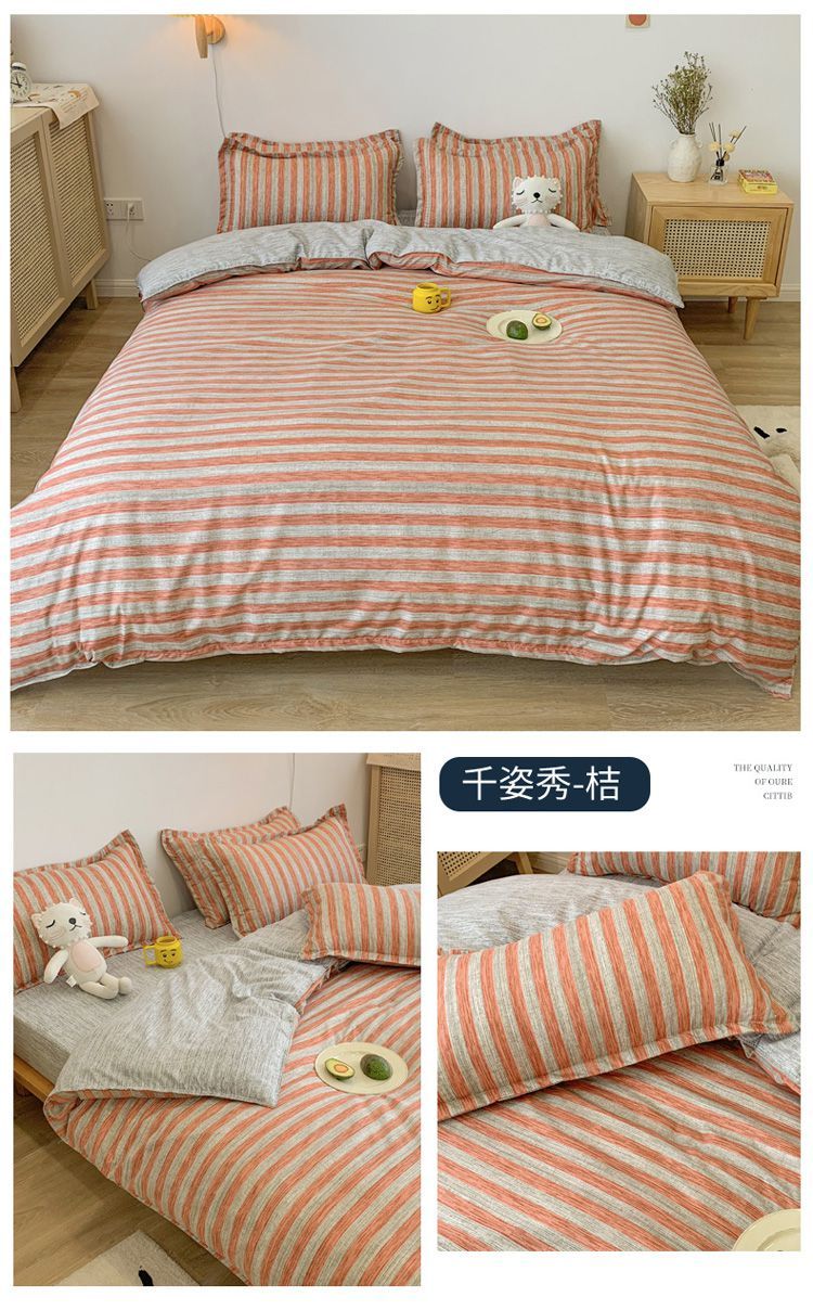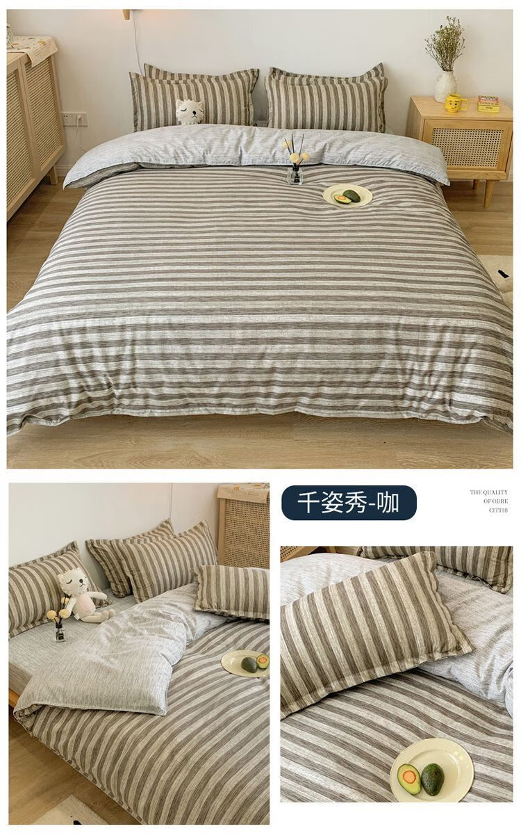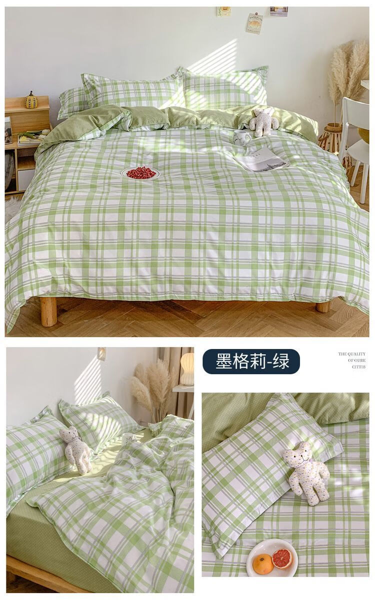 Japanese simple striped plaid bed solid color four-piece male student dormitory single bed quilt cover Pledge-Blue 1.5m four-piece quilt cover 150*200