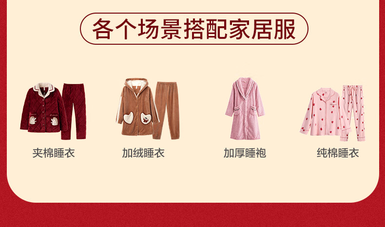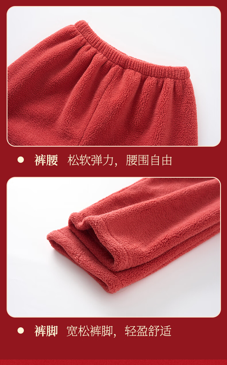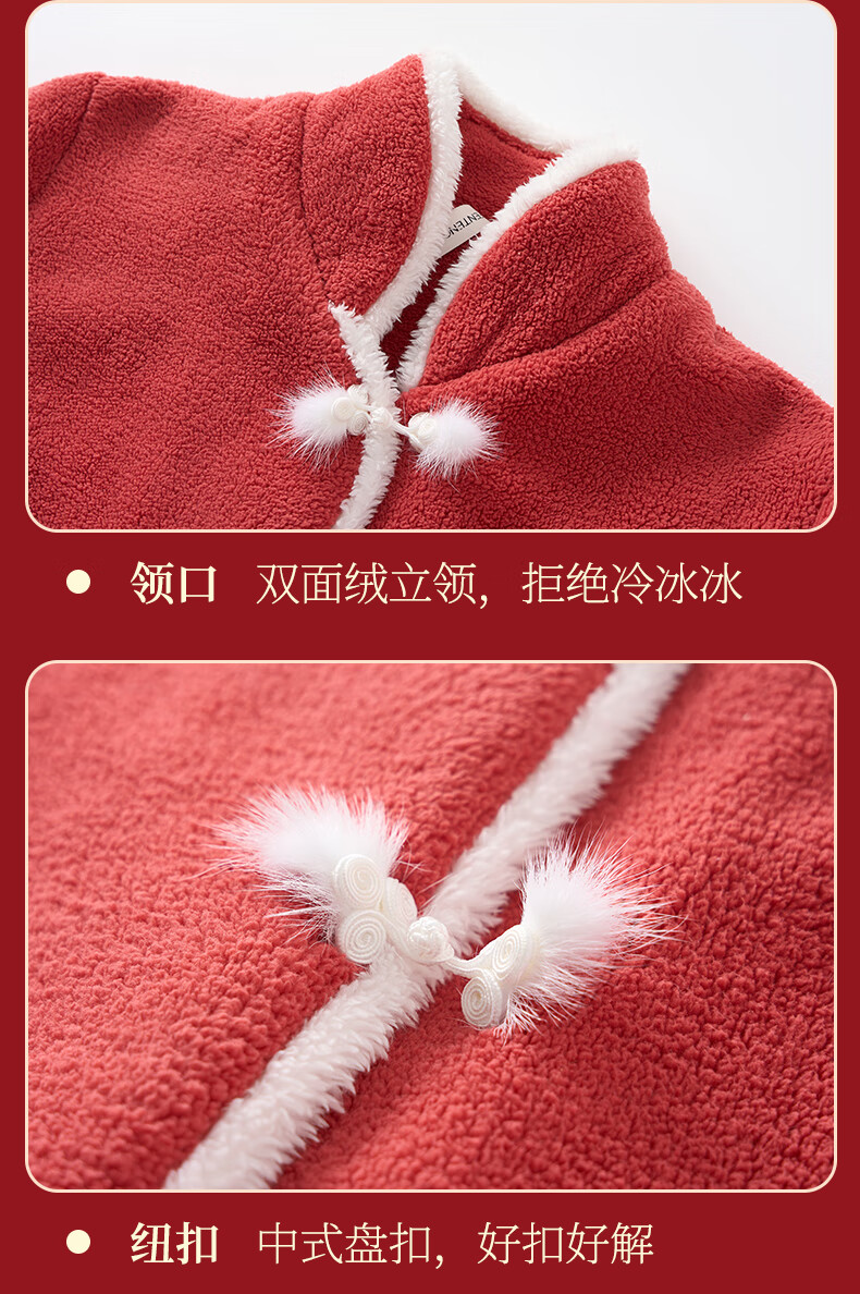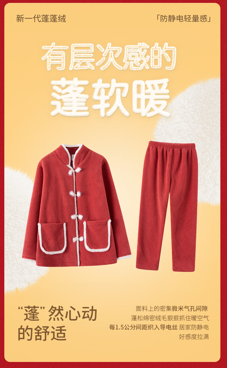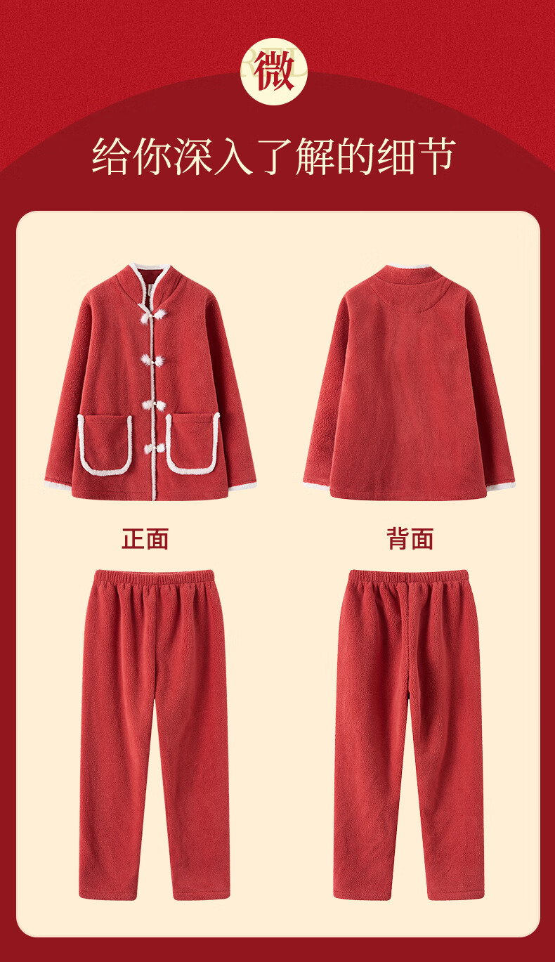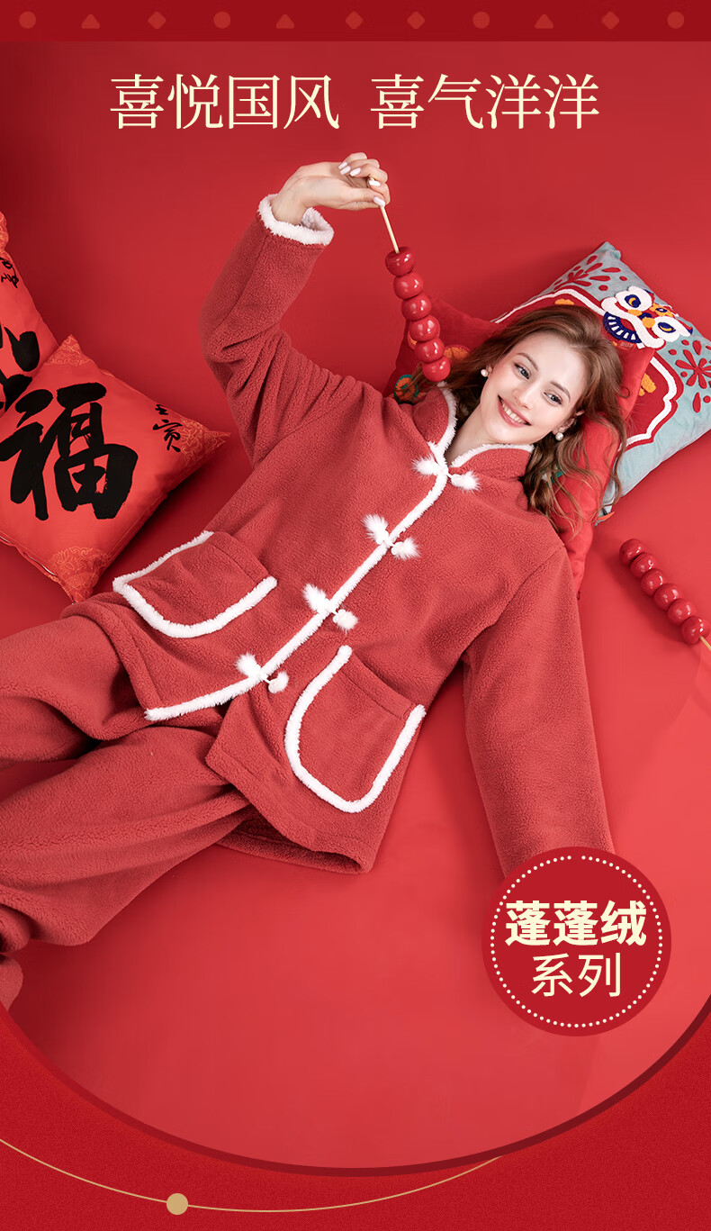 Fenton Pajamas Women's Autumn and Winter Coral Velvet Thickened Stand-up Collar Long Sleeve Imitation Sherpa Festive Chinese Pajamas Home Clothing New Year Maple Leaf Red XL
