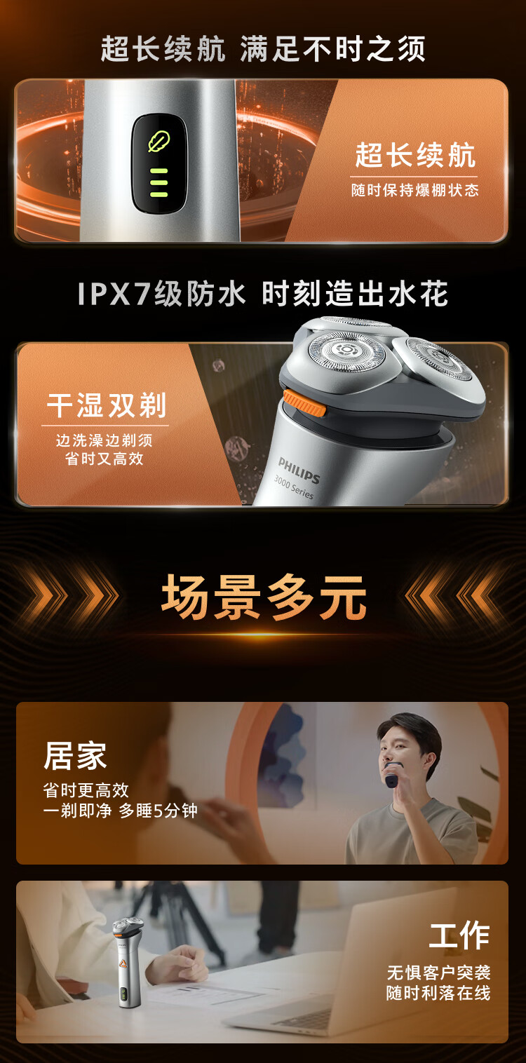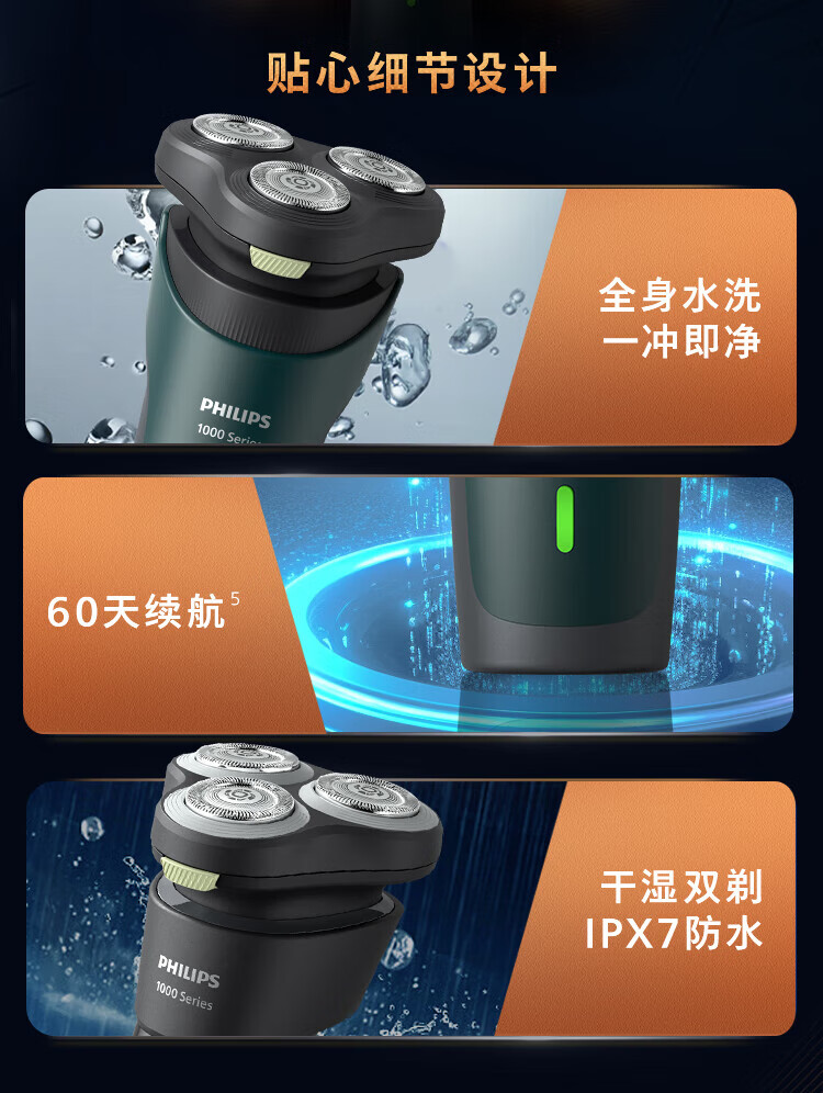 Philips electric shaver Philips original imported three-blade shaver Philips electric shaver beard shaver official flagship store gifts for elders [Little Tornado] Classic 1 Series S1126/02