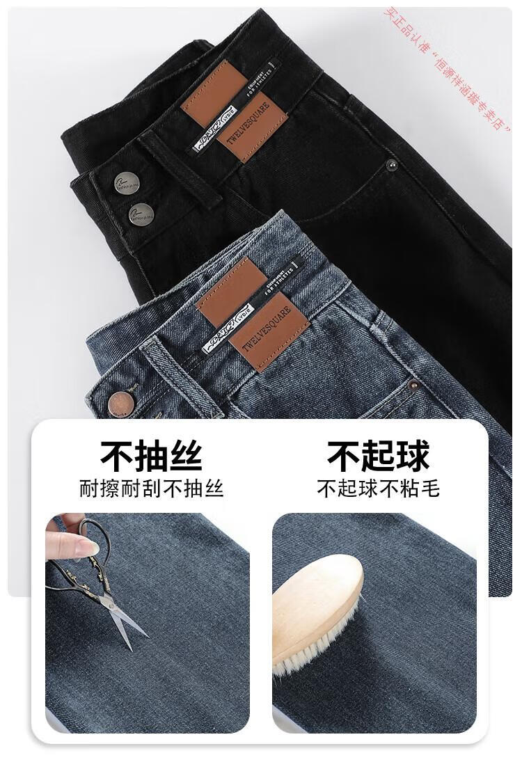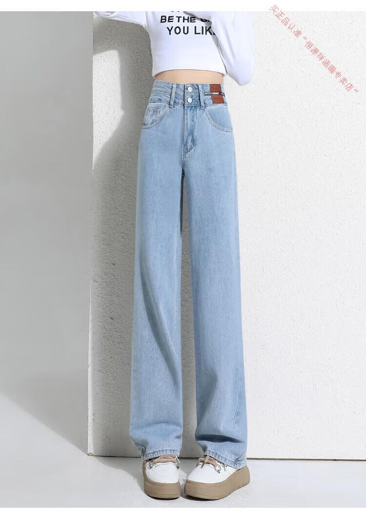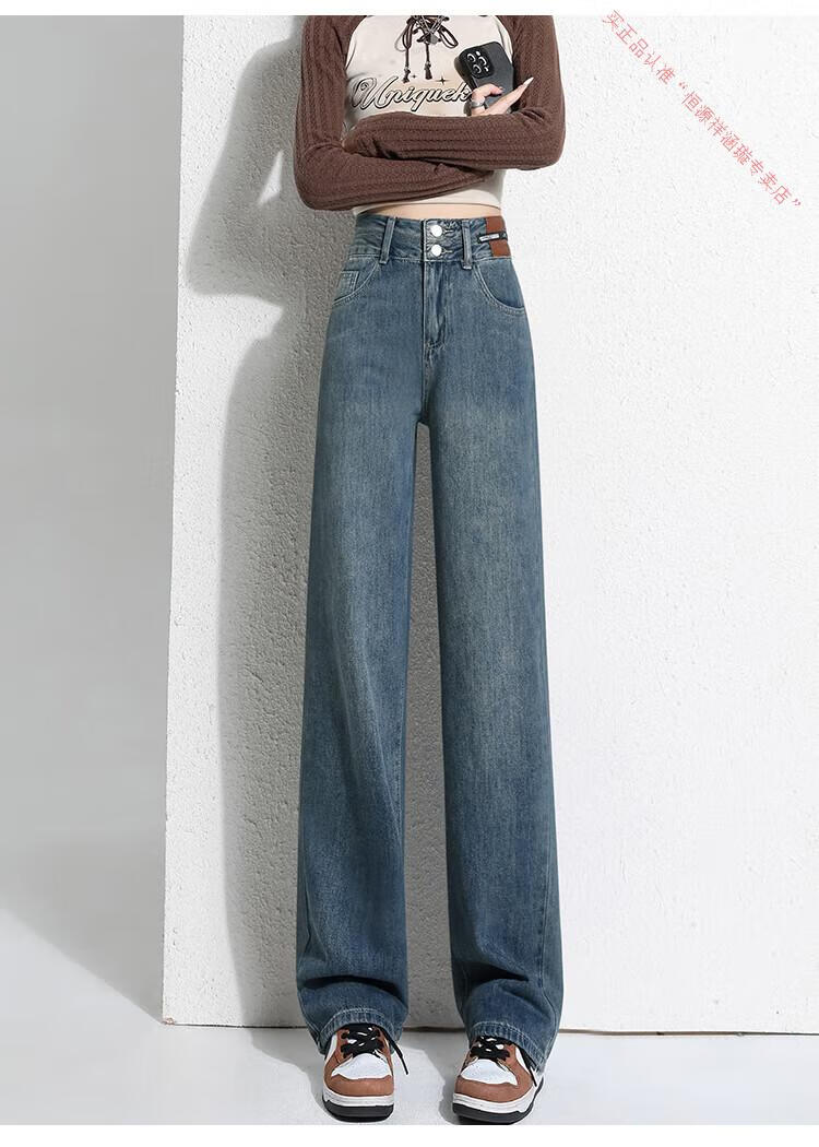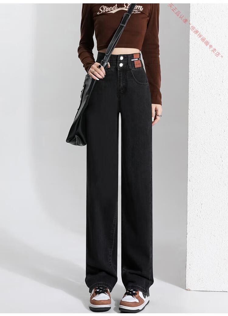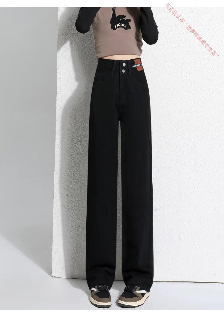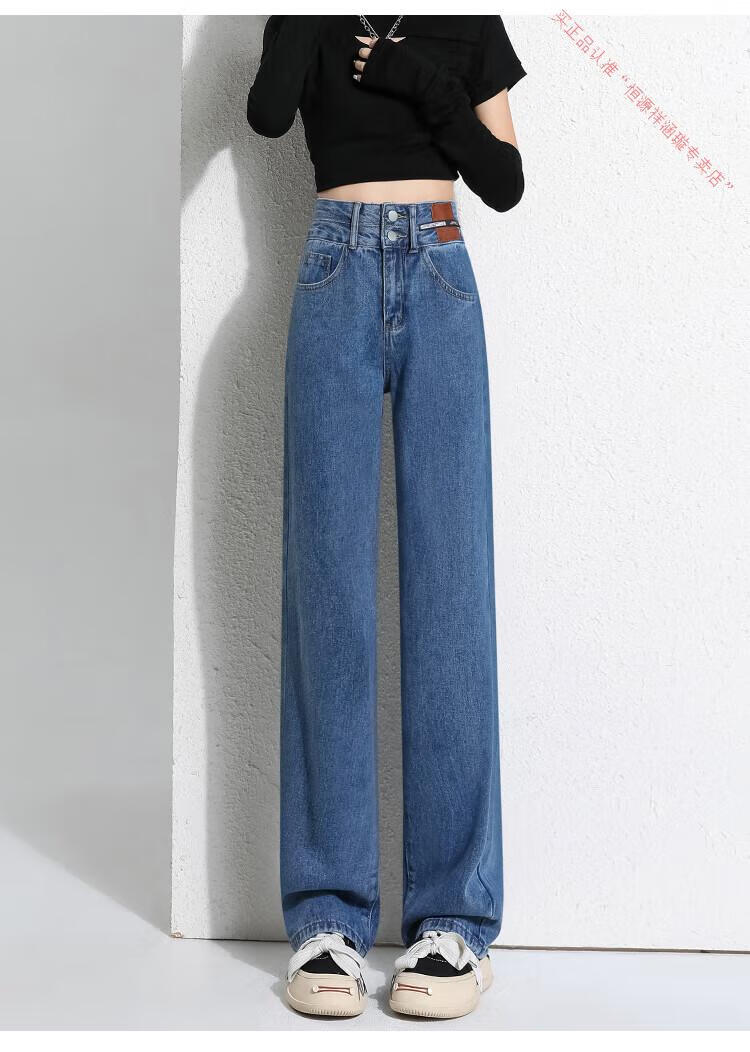 Hengyuanxiang hip-covering plus velvet wide-leg jeans for women autumn and winter plus velvet 2023 new high-waist drape pear-shaped figure slimming straight nostalgic blue-velvet normal. S