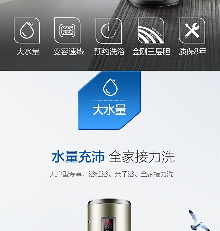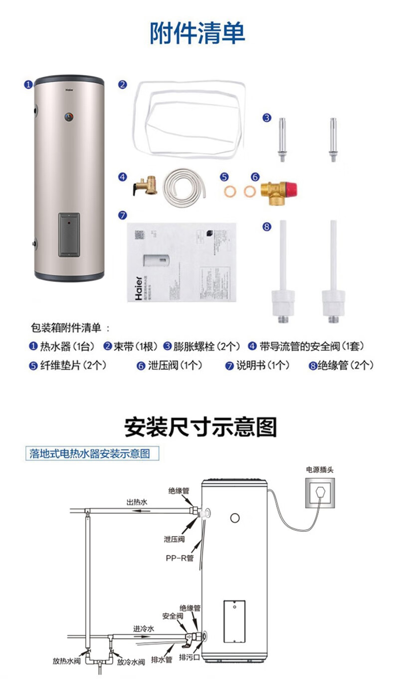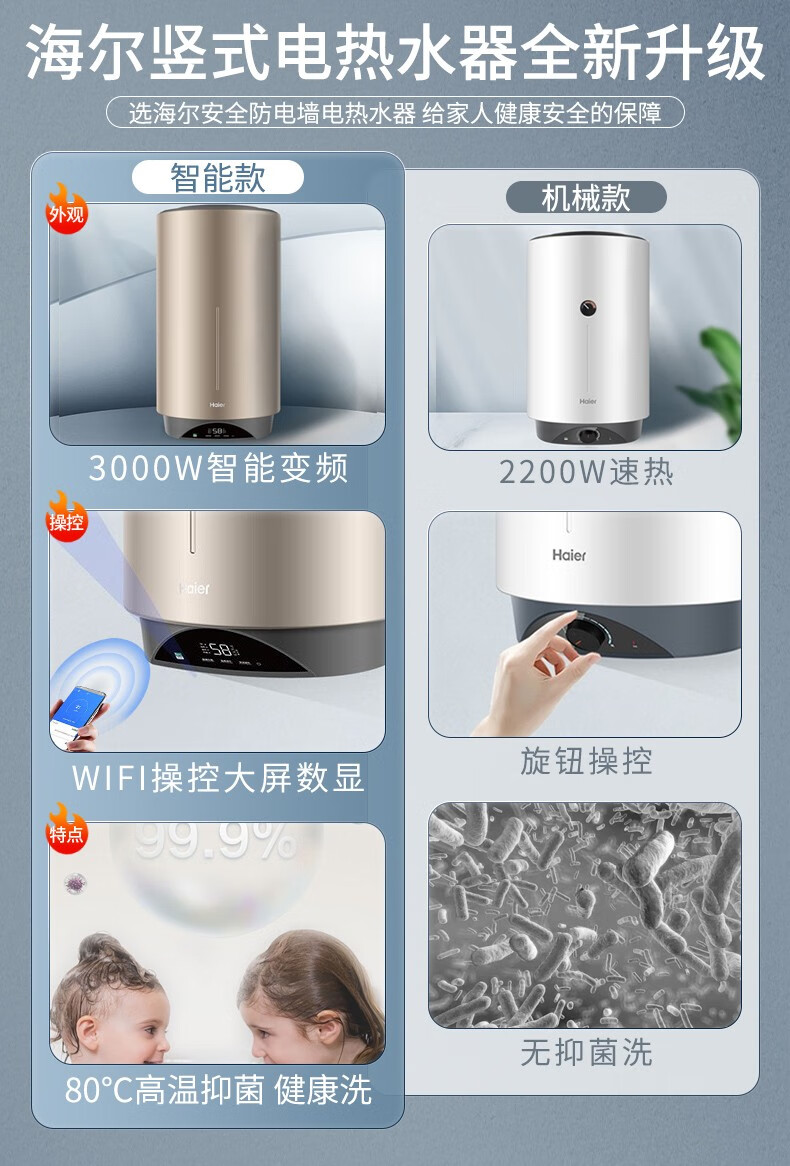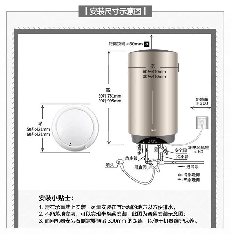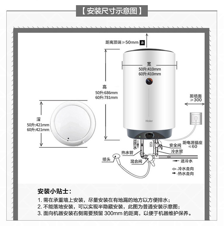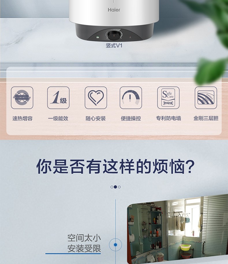 Haier вертикальный вертикальный электрический водонагреватель бытовой вертикальный вертикальный заводской парикмахерская ванна общежитие коммерческий центральный электрический водонагреватель для всего дома накопительный водонагреватель 60л 3000Вт 60л ES60V-V3U1